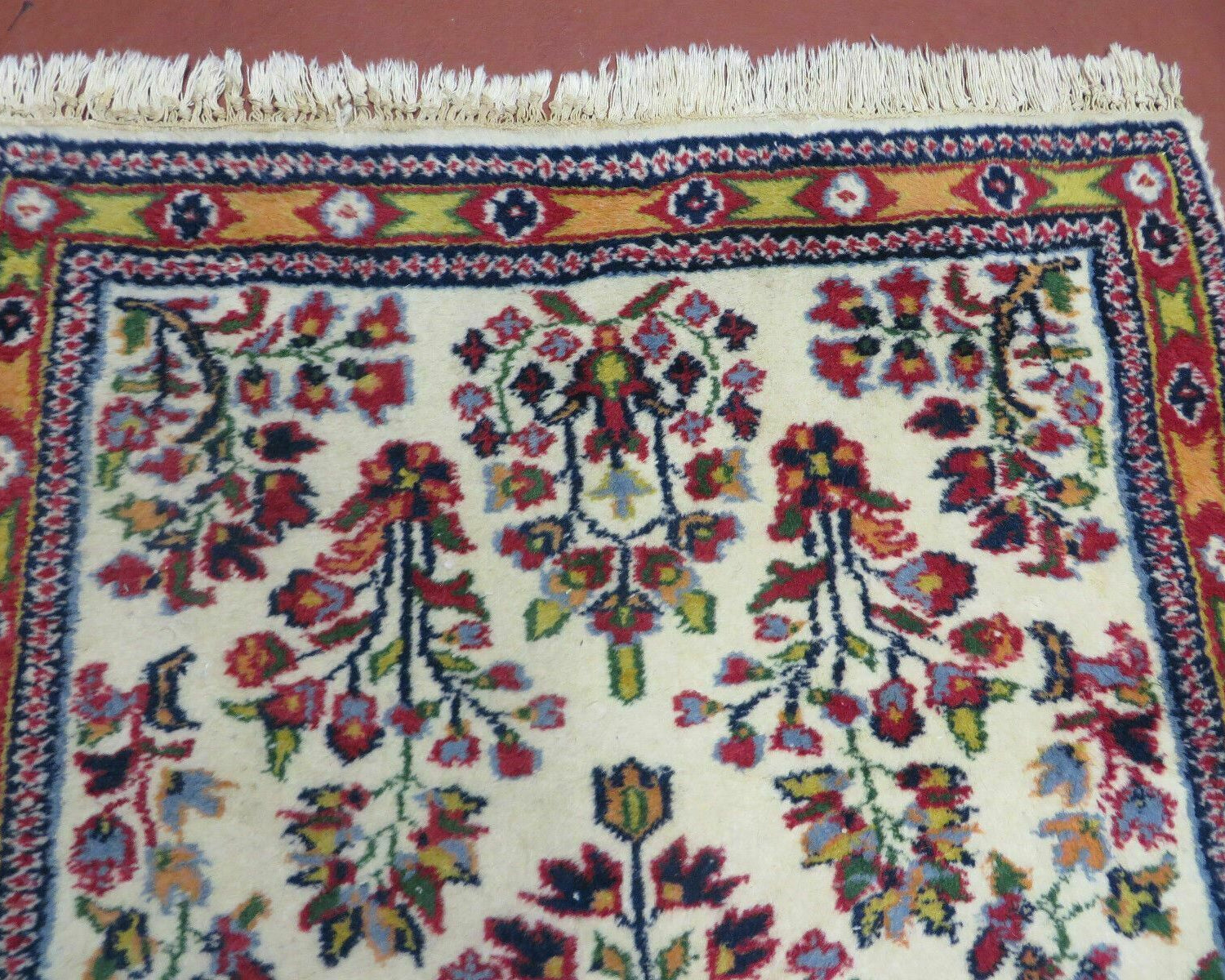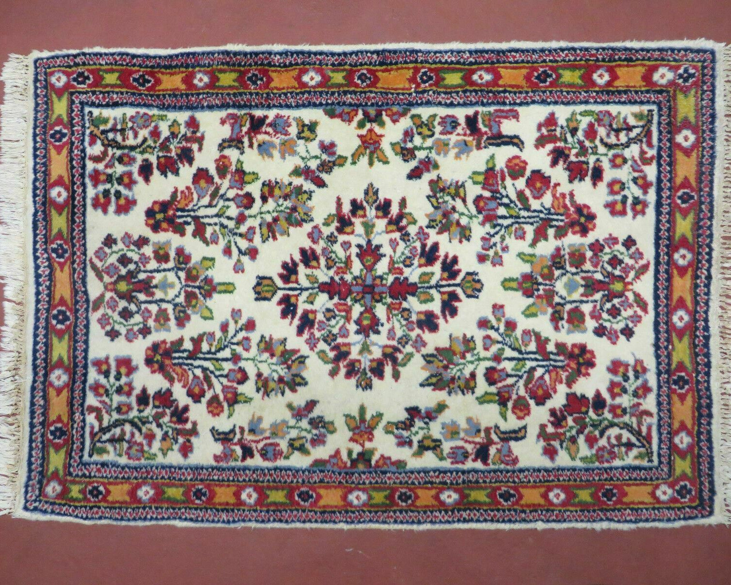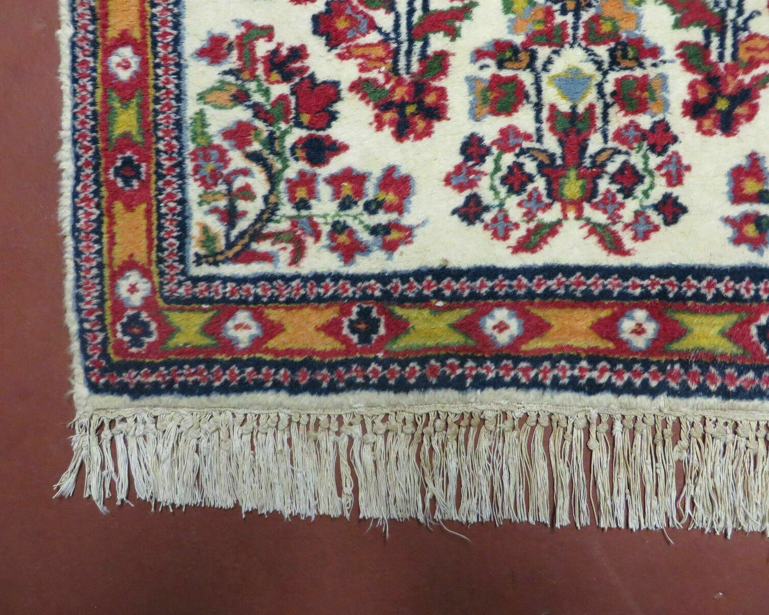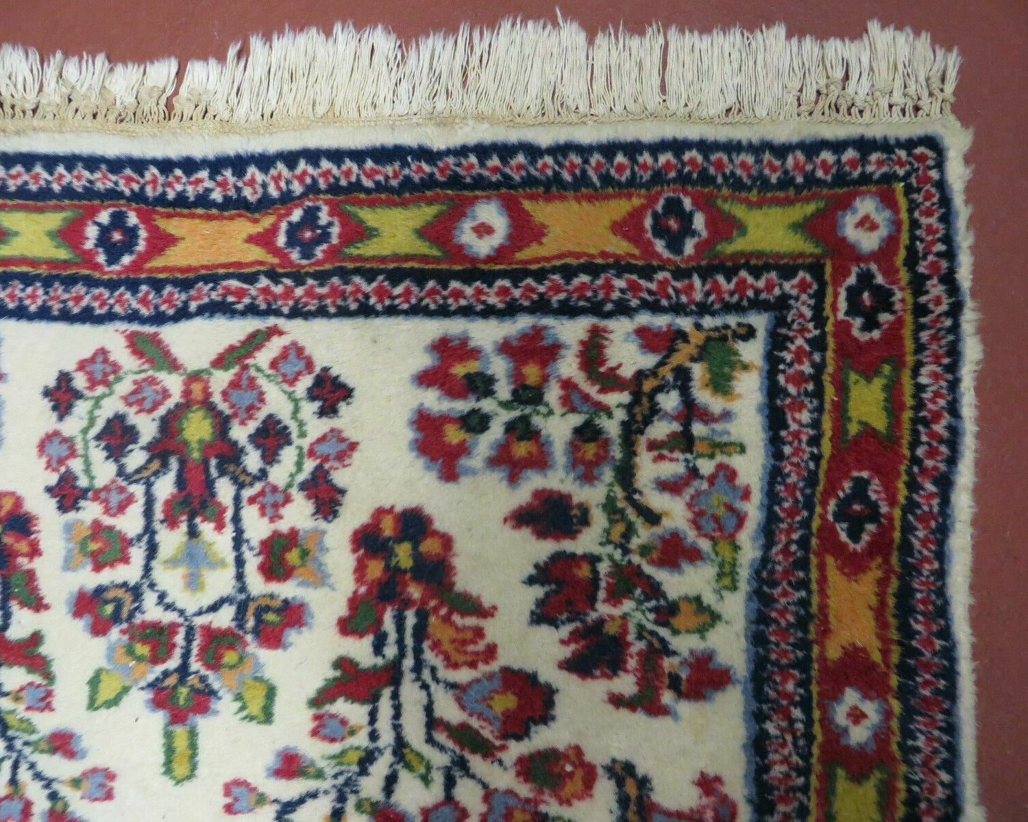 - Colors: Deep reds, blues, and ivory dominate the palette, with natural dyes ensuring the colors remain vibrant over time. The deep, rich hues give these rugs a luxurious appearance.