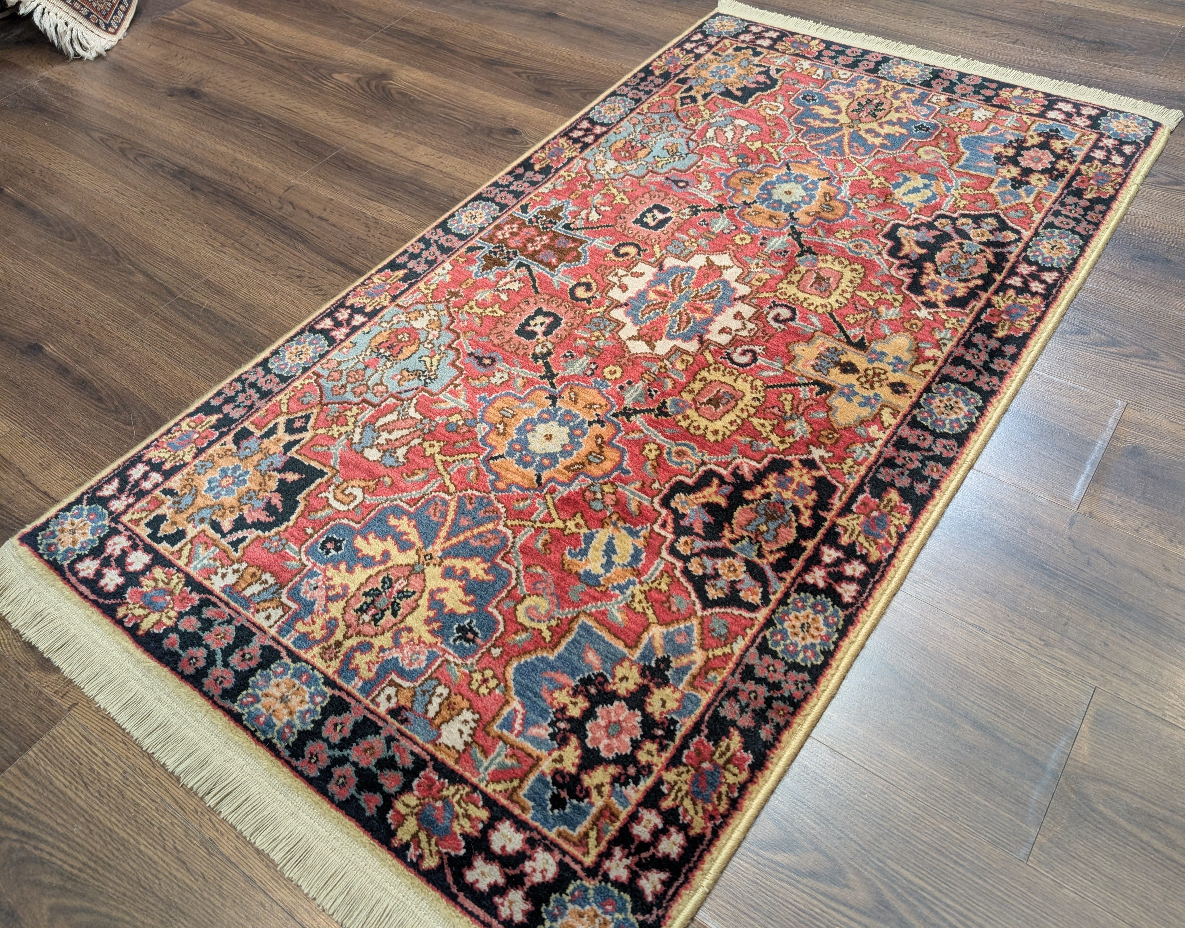 Persian Kashan Rug 3.5 x 5.5, Red and Navy, Fine 225 KPSI