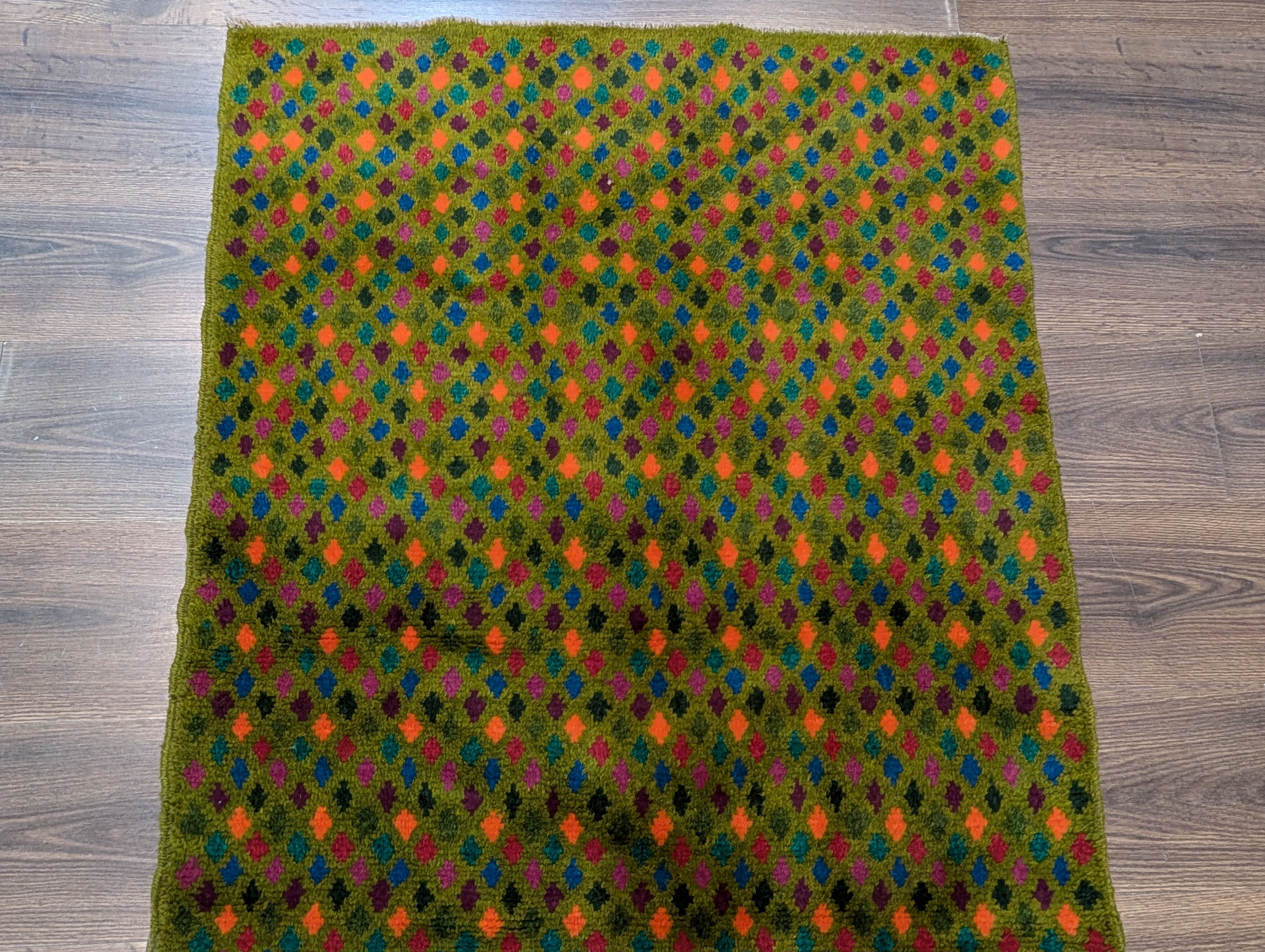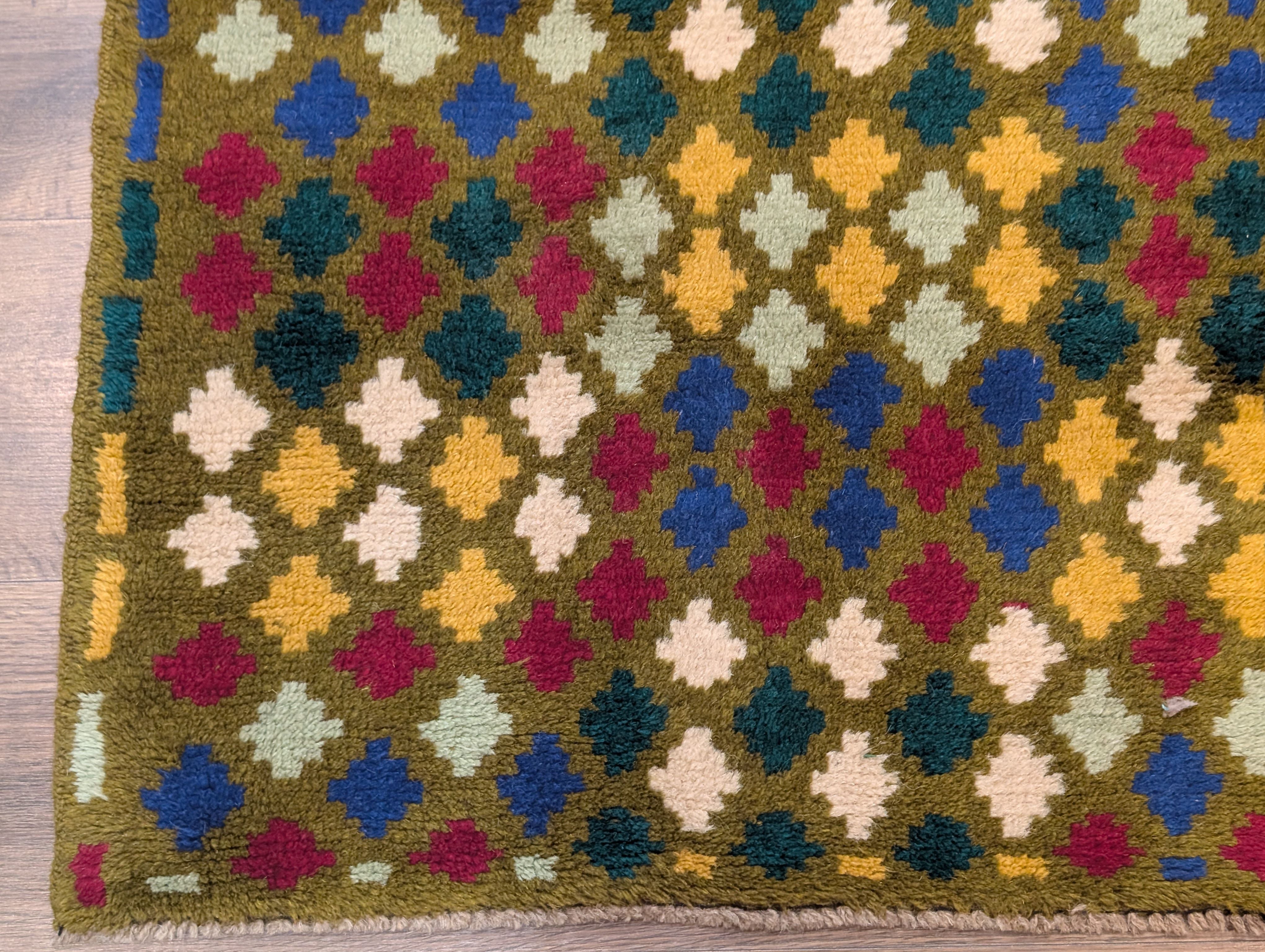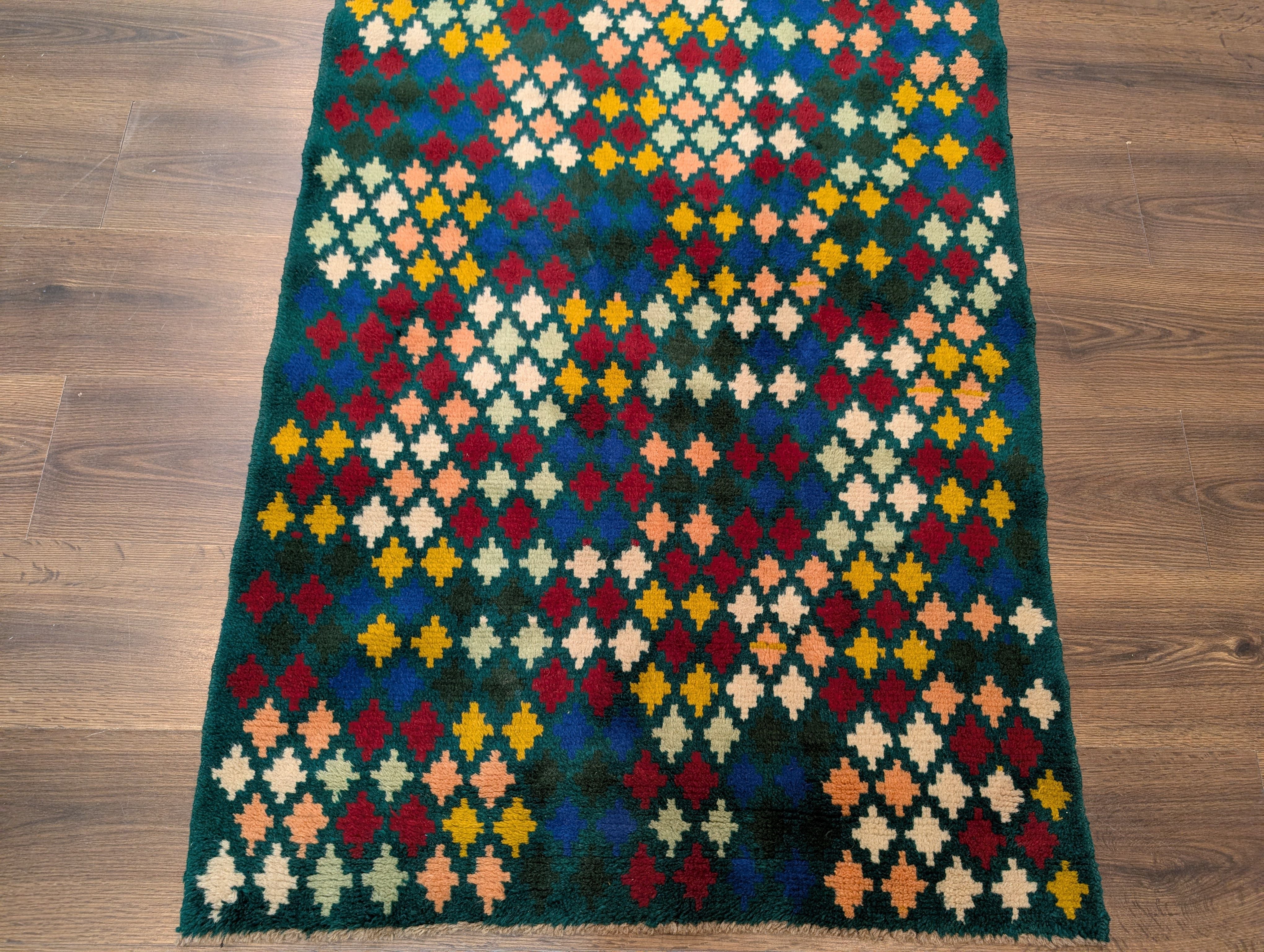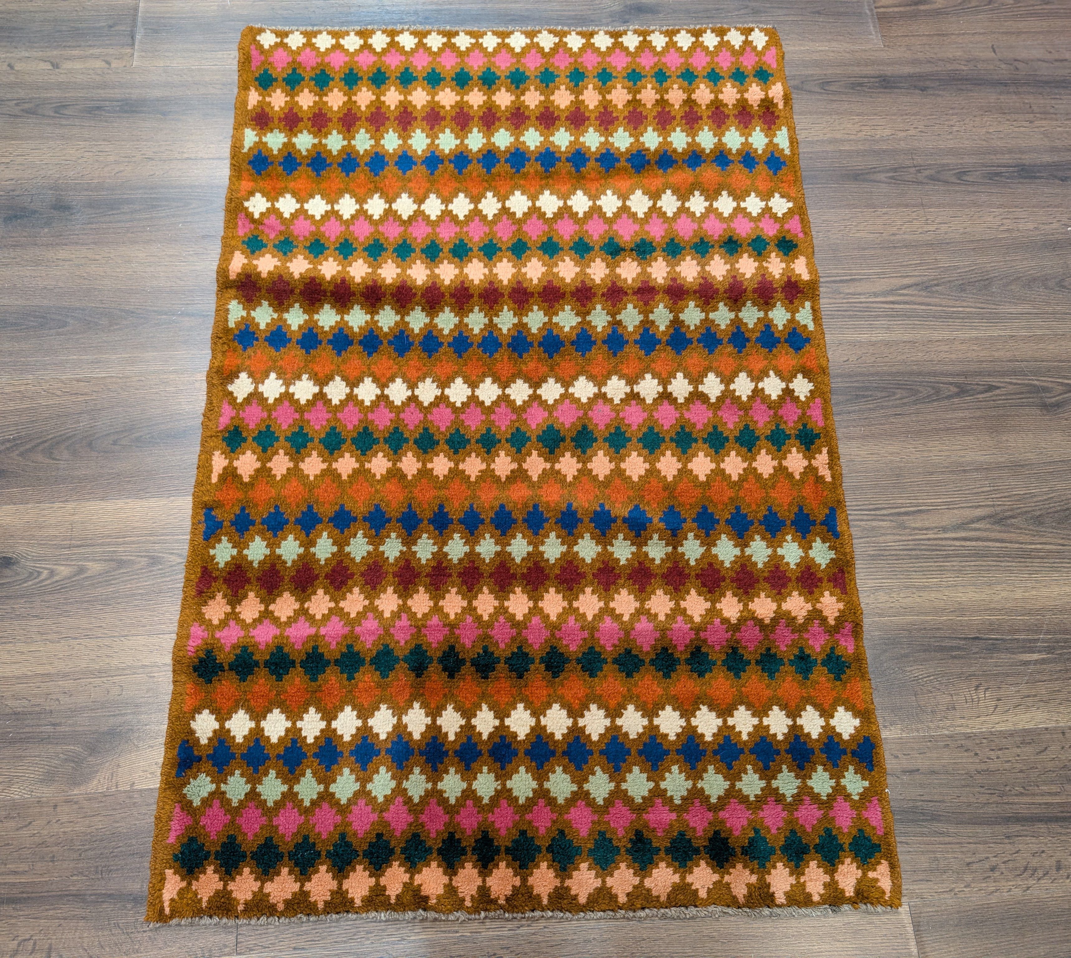 Small Afghan Balouch Rug 3x5, Multicolor, Diamond Pattern, Tribal, Wool