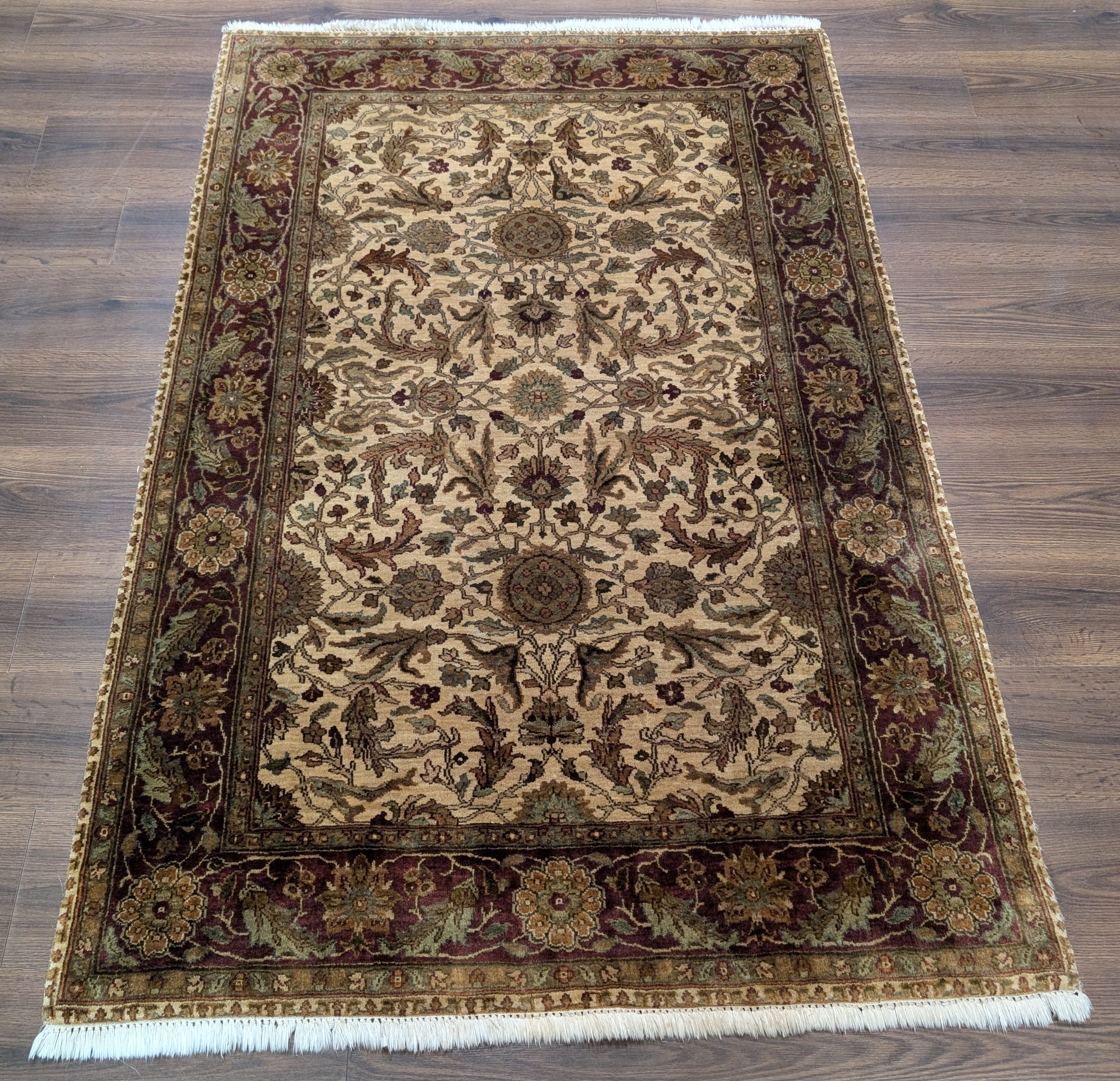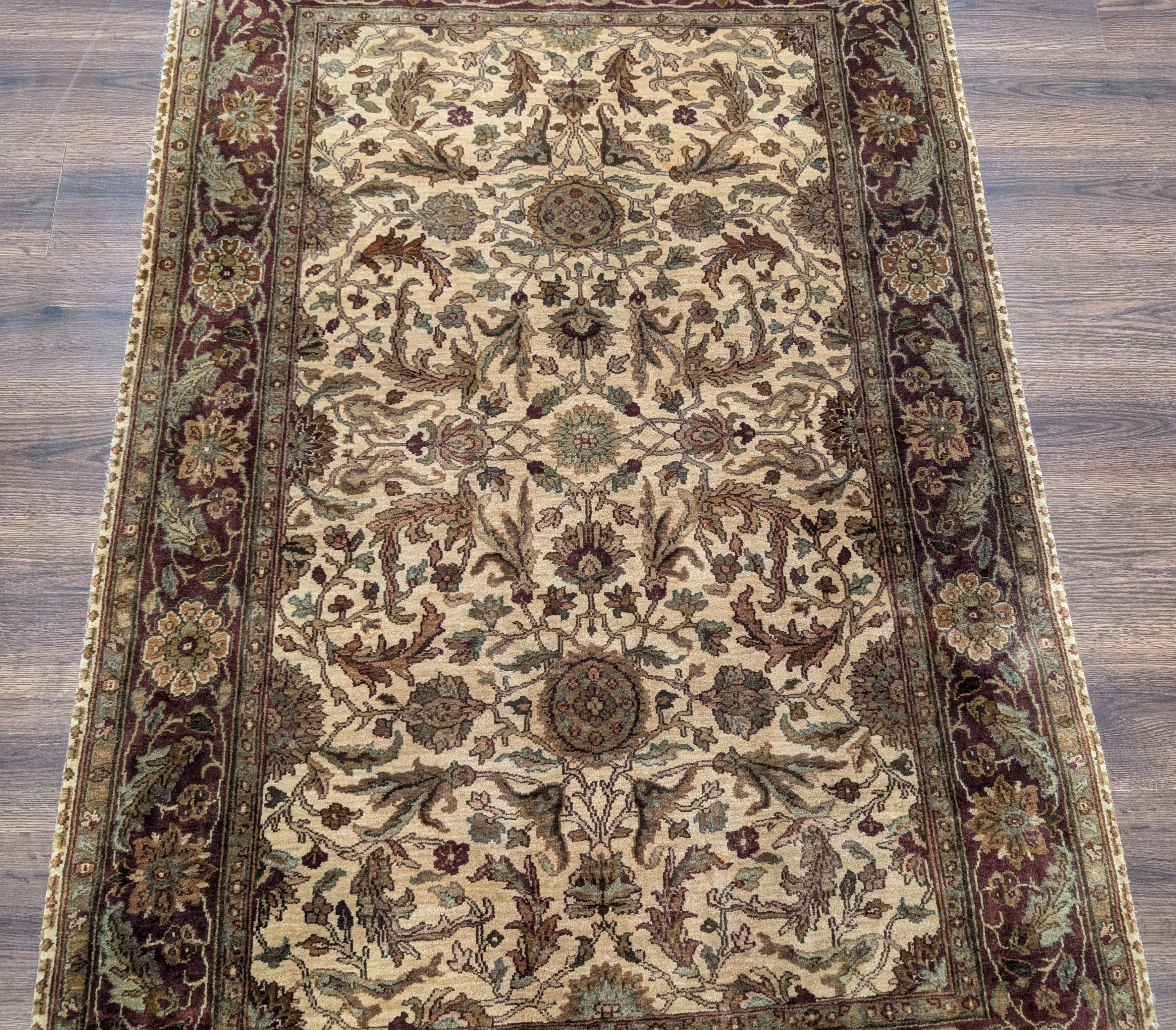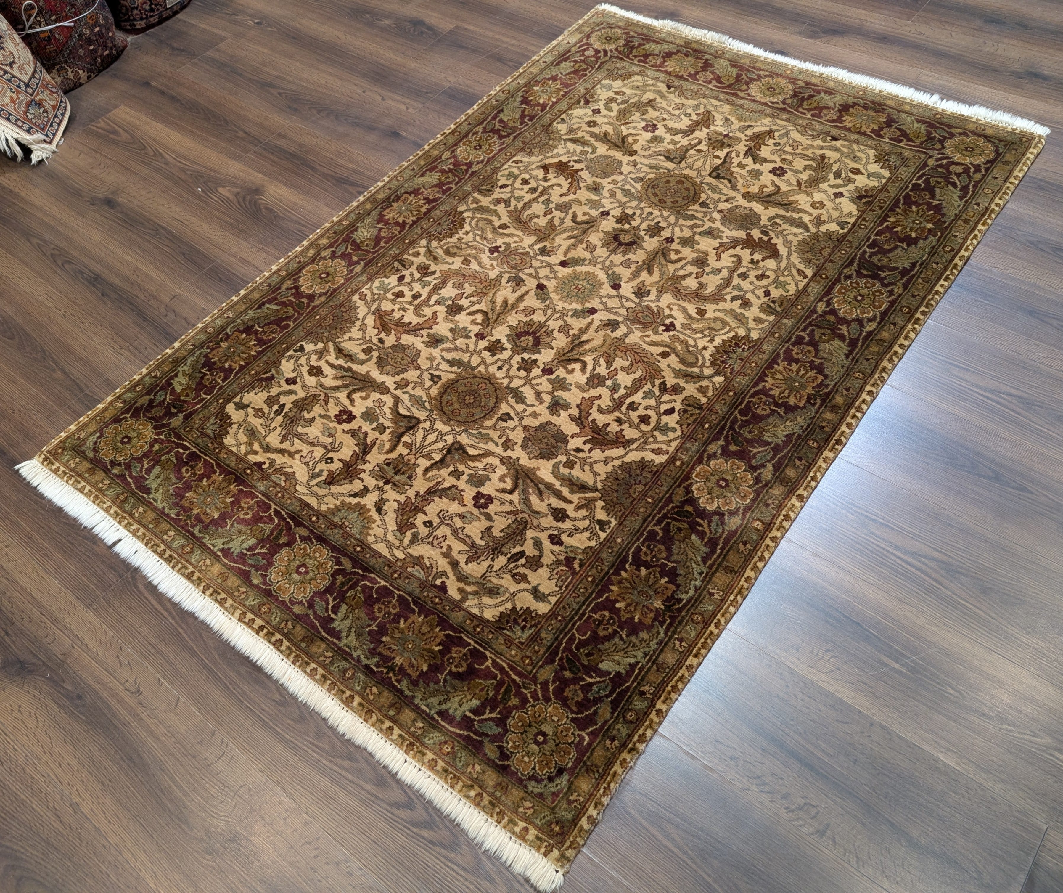 Indo Persian Rug 4x6, Teawash Floral Wool Oriental Carpet