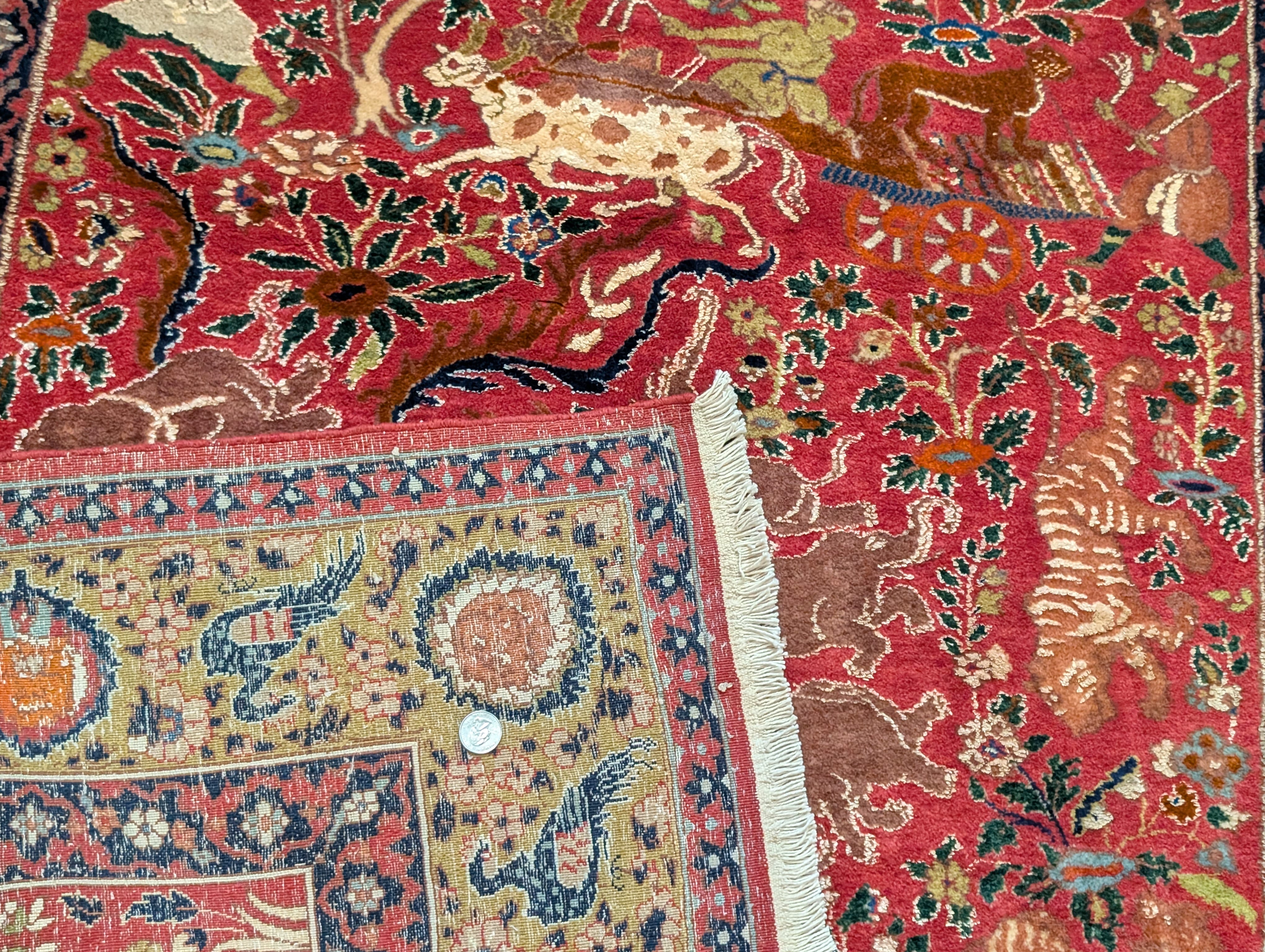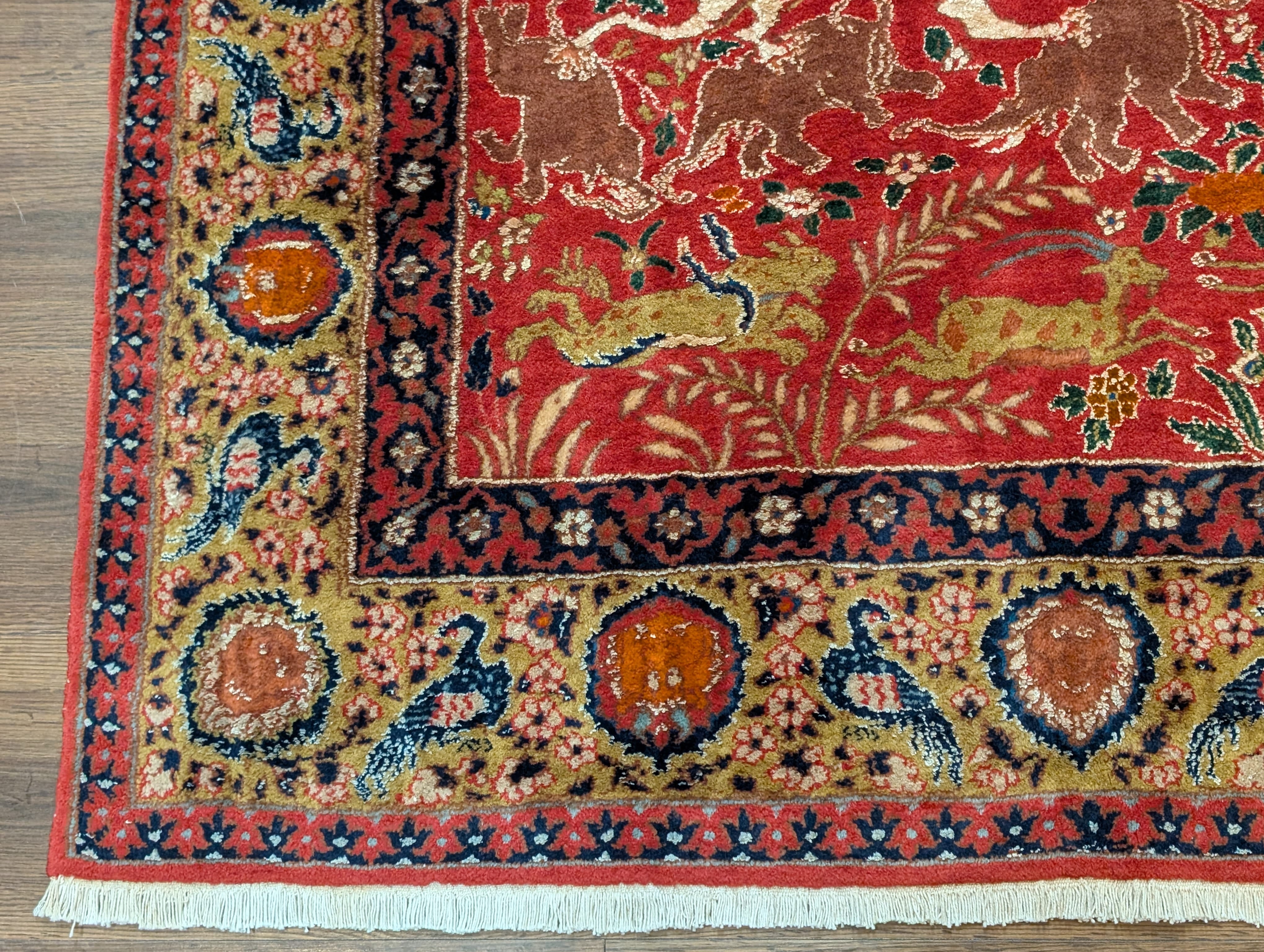 Indian Rug 4x6, Fine 380 KPSI, Hunting Scene, Animal Pictorials, Rare