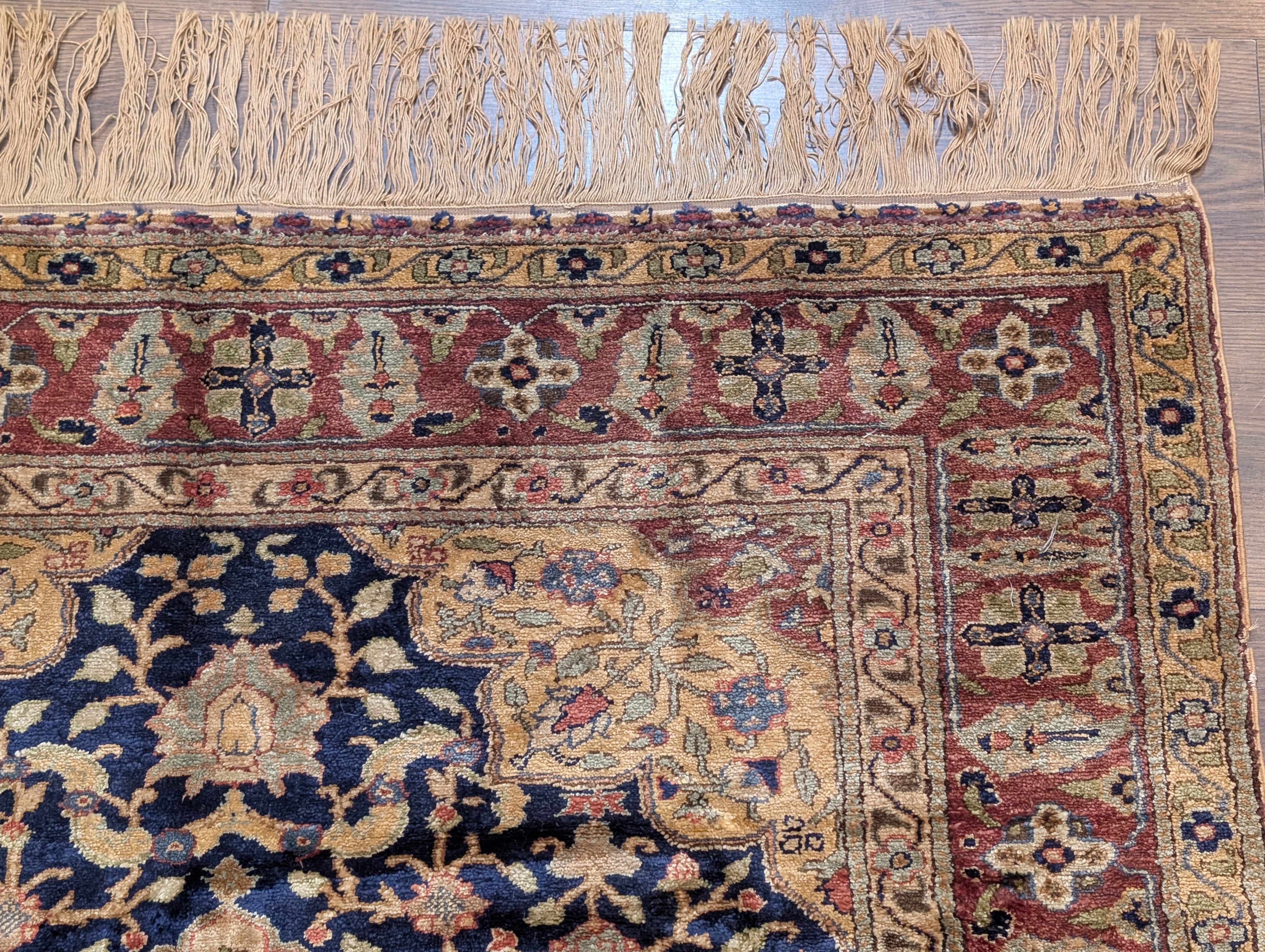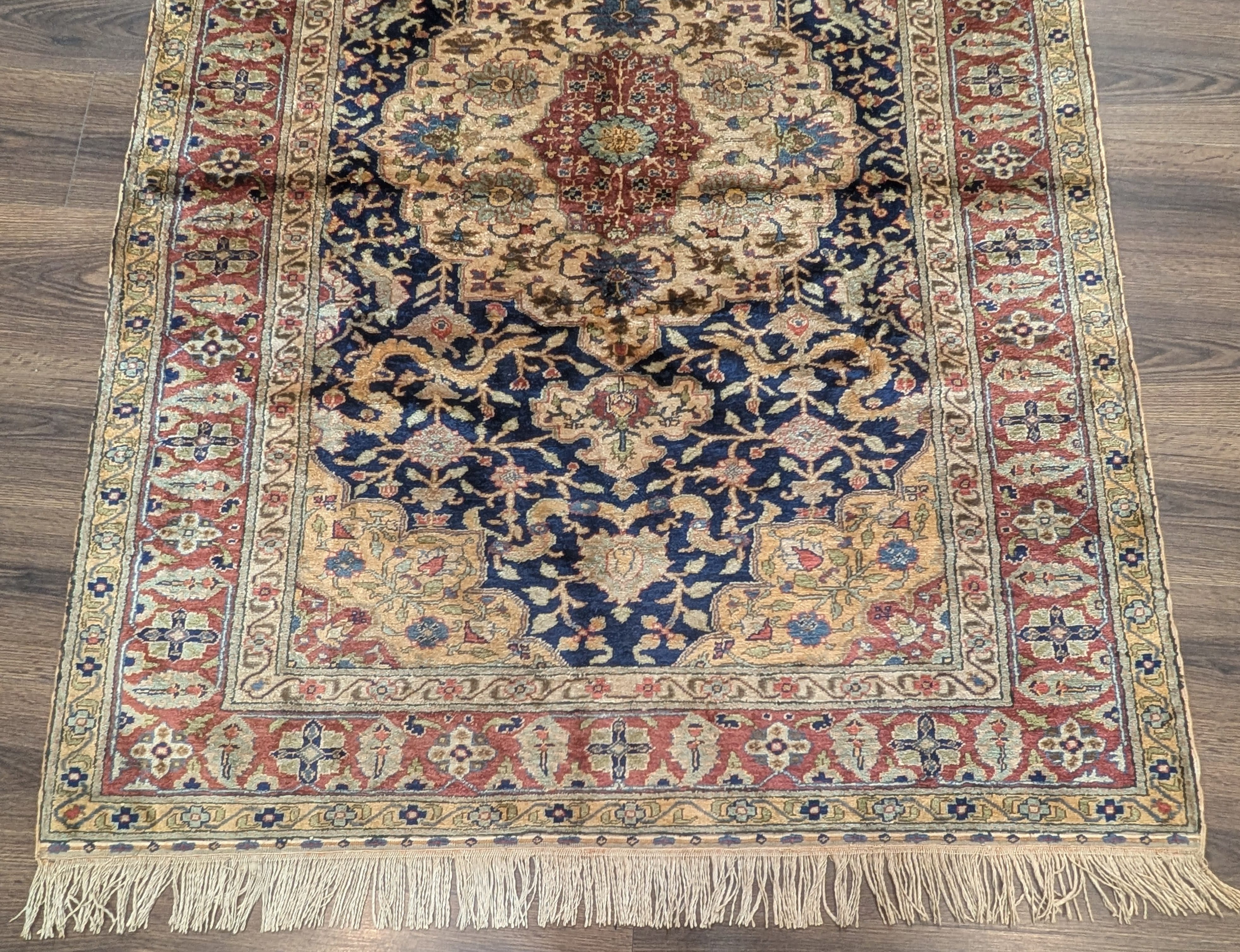 Antique Turkish Silk Rug 4x6, Navy Blue