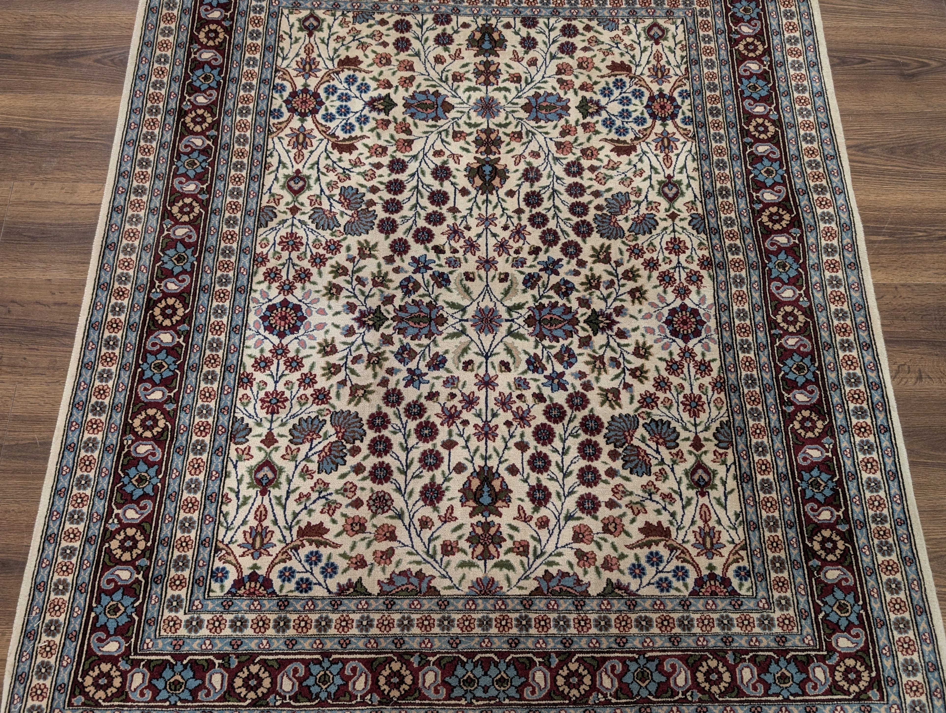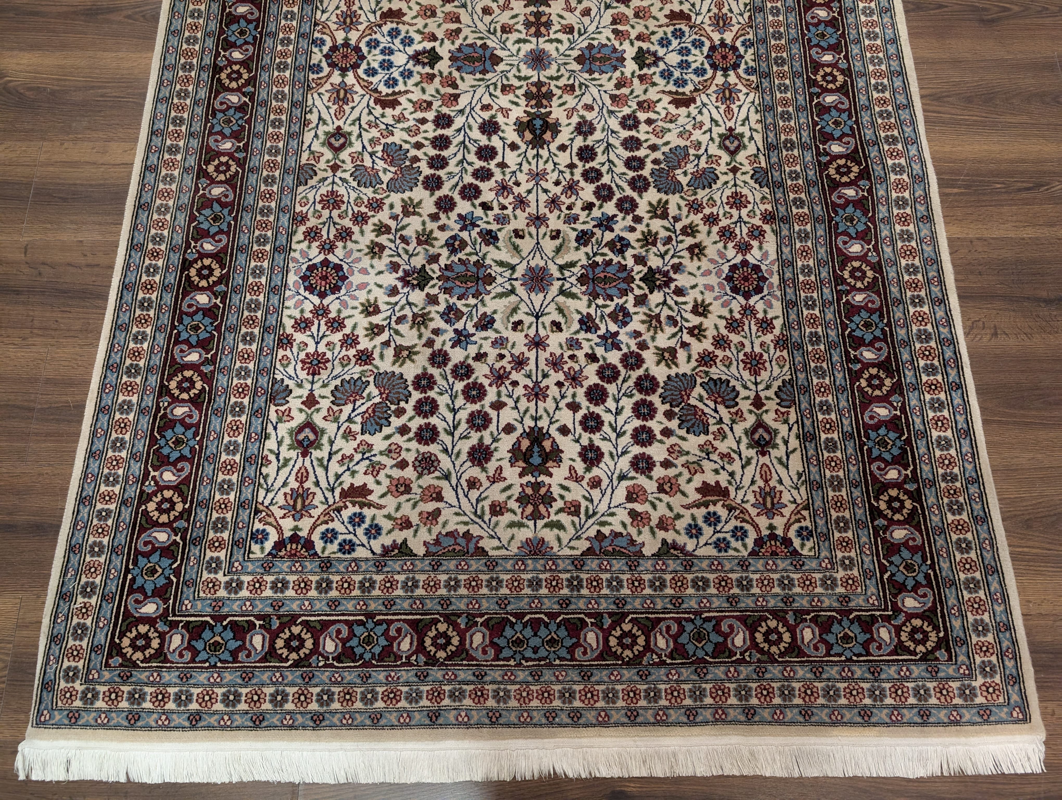 Antique Persian Rug 4x7, Kashan Manchester Wool, Floral, Fine 225 KPSI