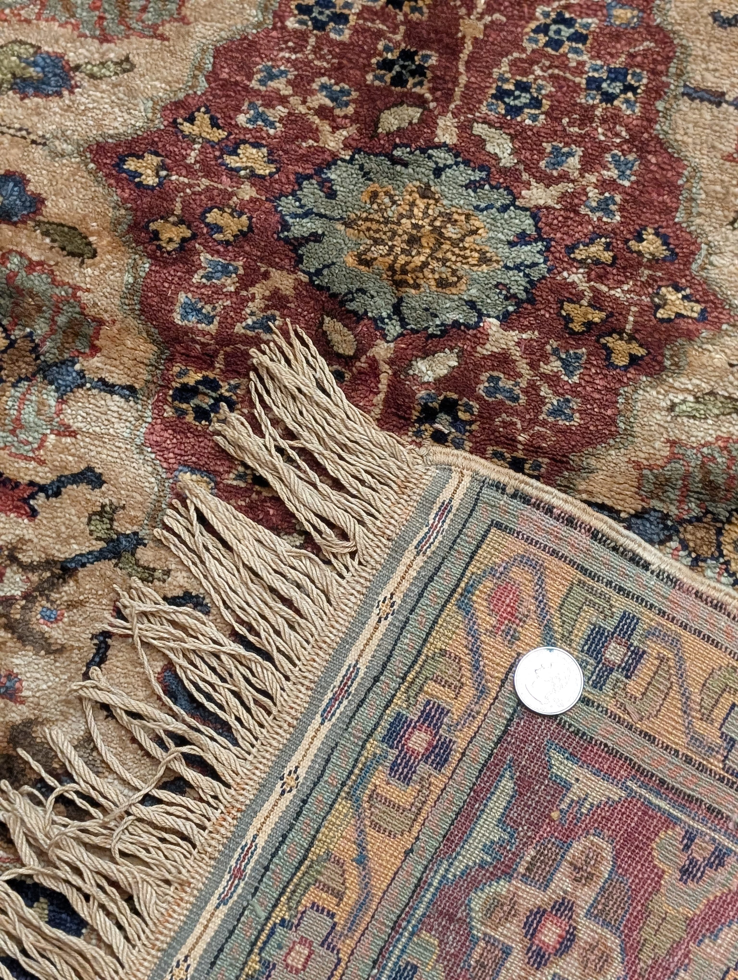 Silk Persian Qum Rug 3.9 x 5.6, Animal Pictorials, Fine 380 KPSI