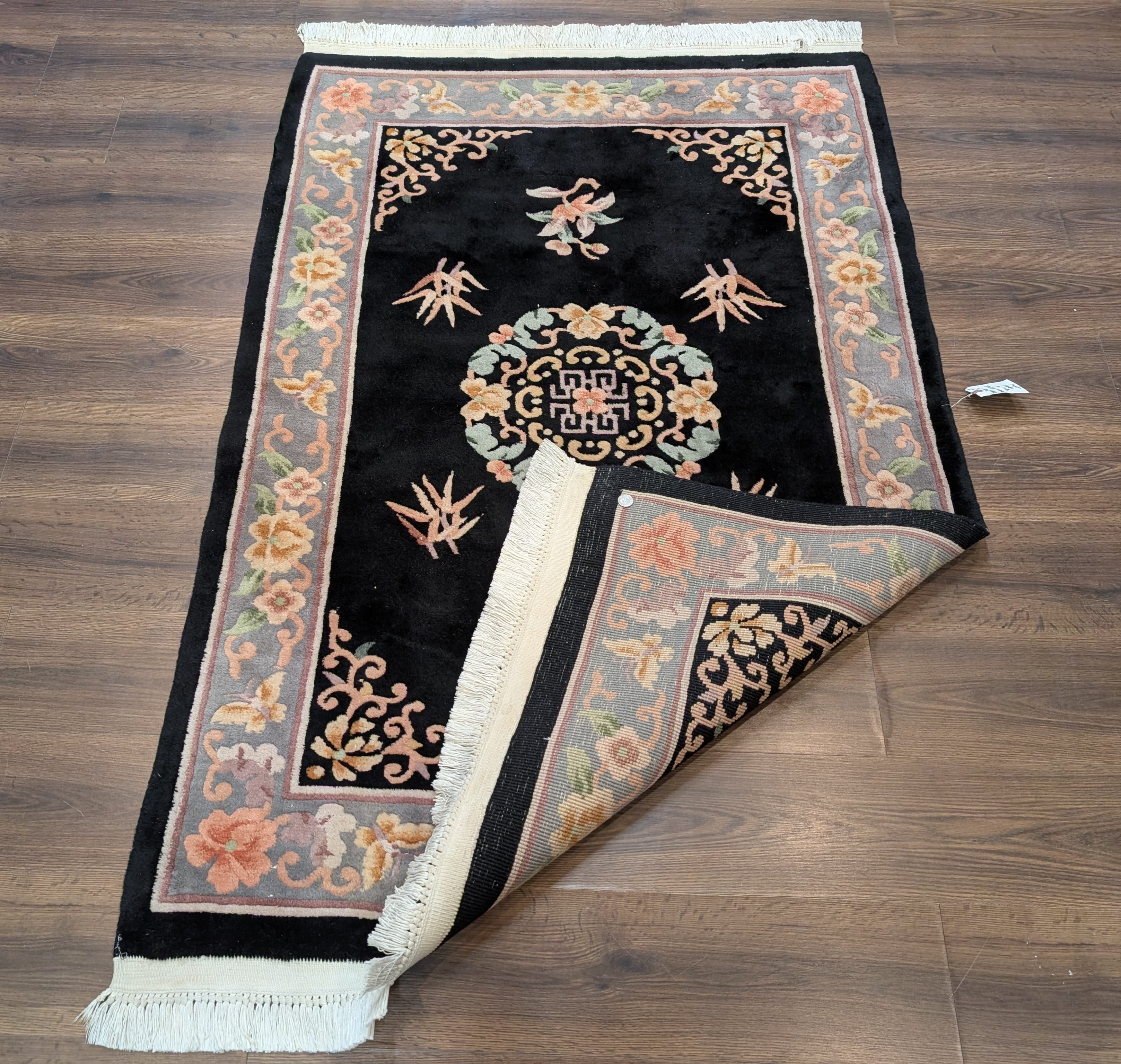 Chinese Wool Rug 4x6, Black, Chinese 90 Line Carpet, Vintage