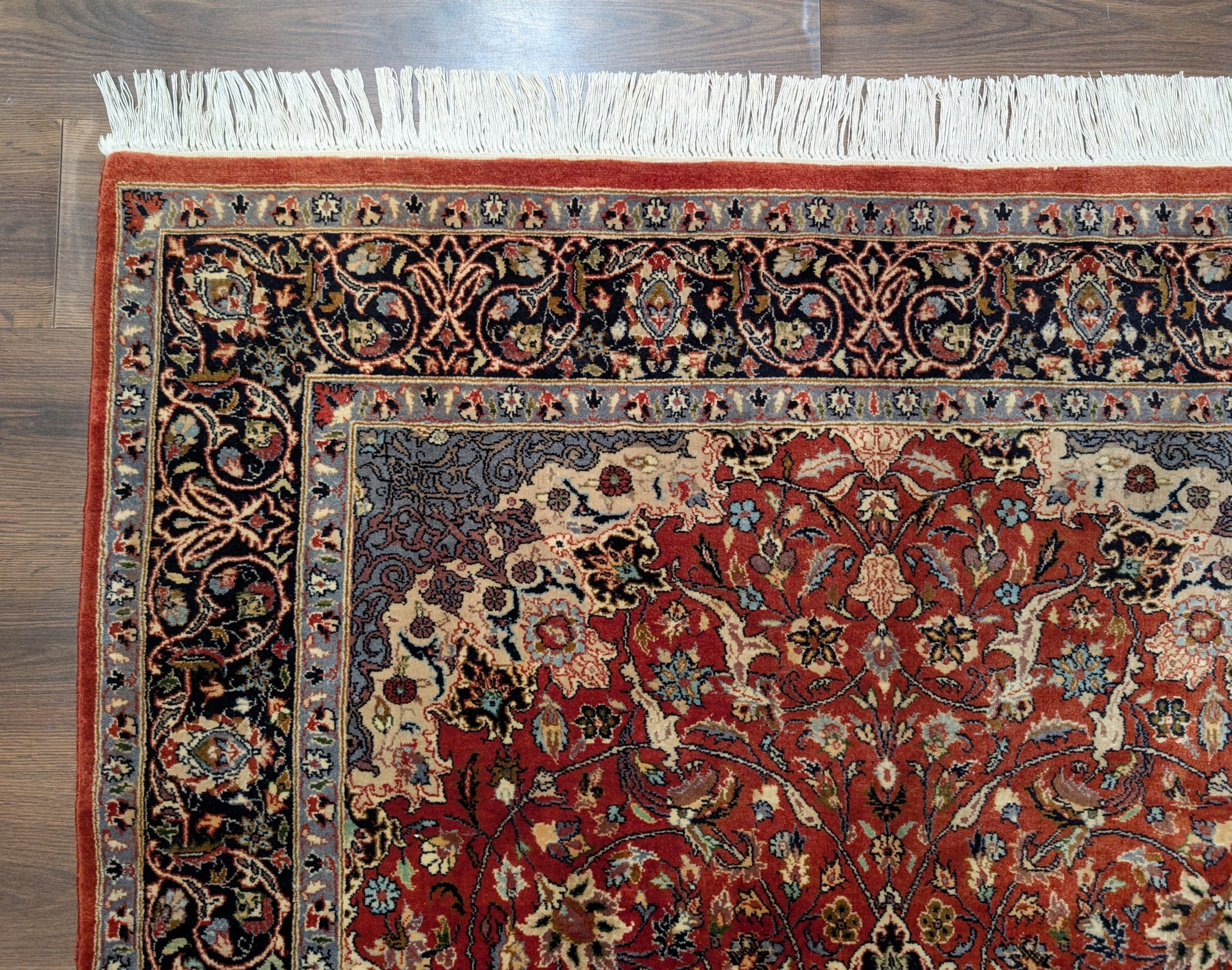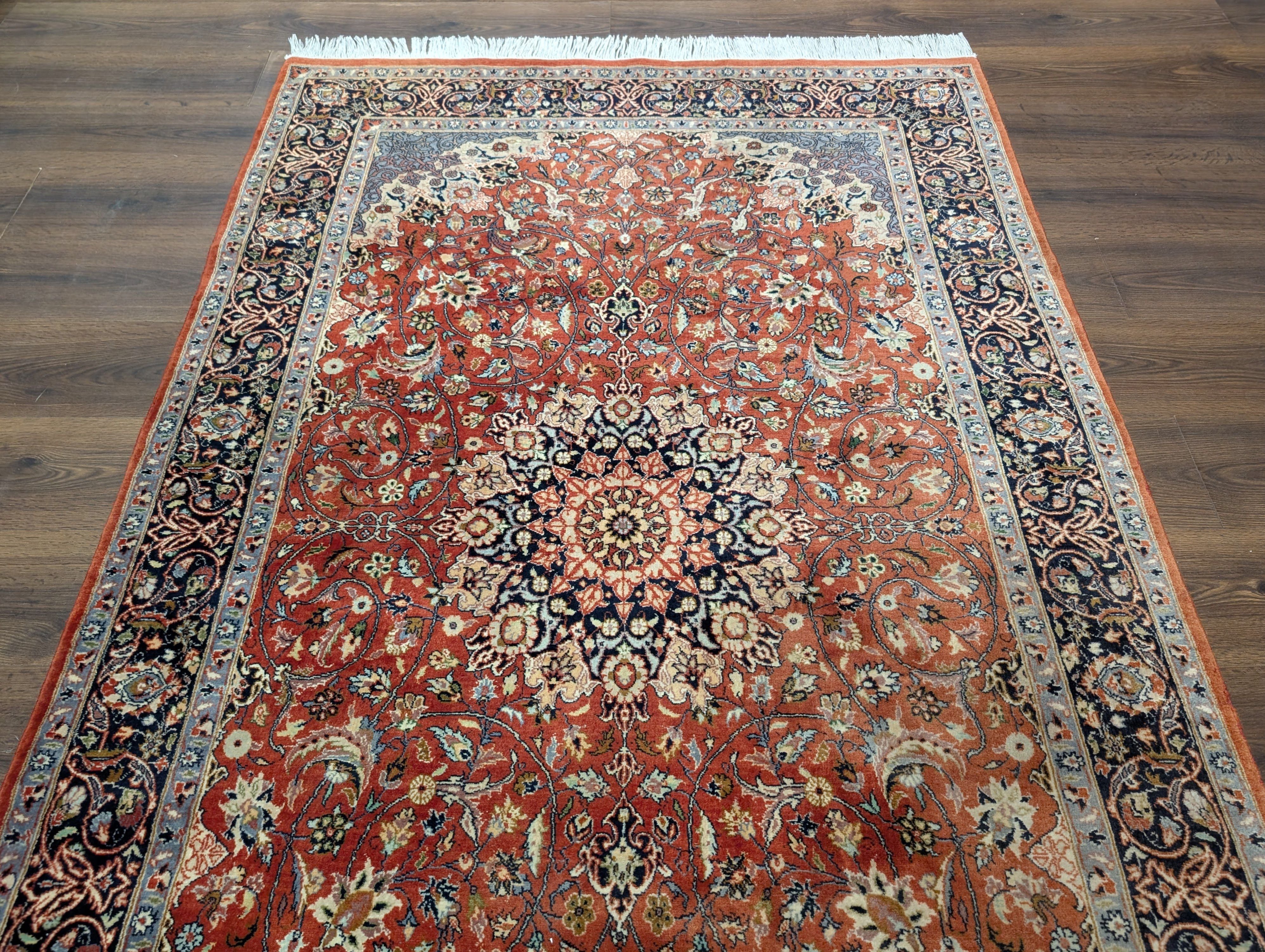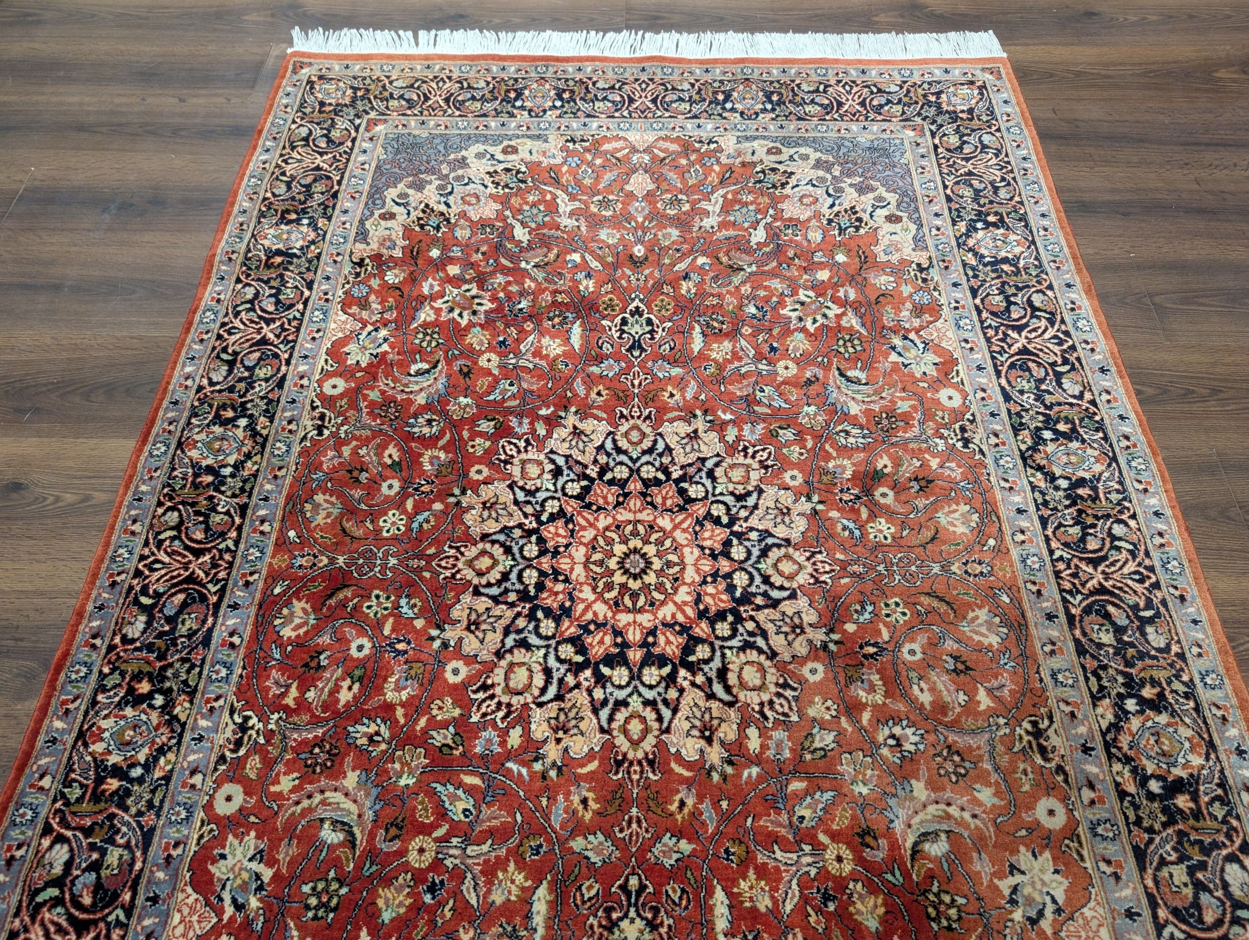 Persian Kashan Rug 5x7, Red and Navy, Wool, Traditional