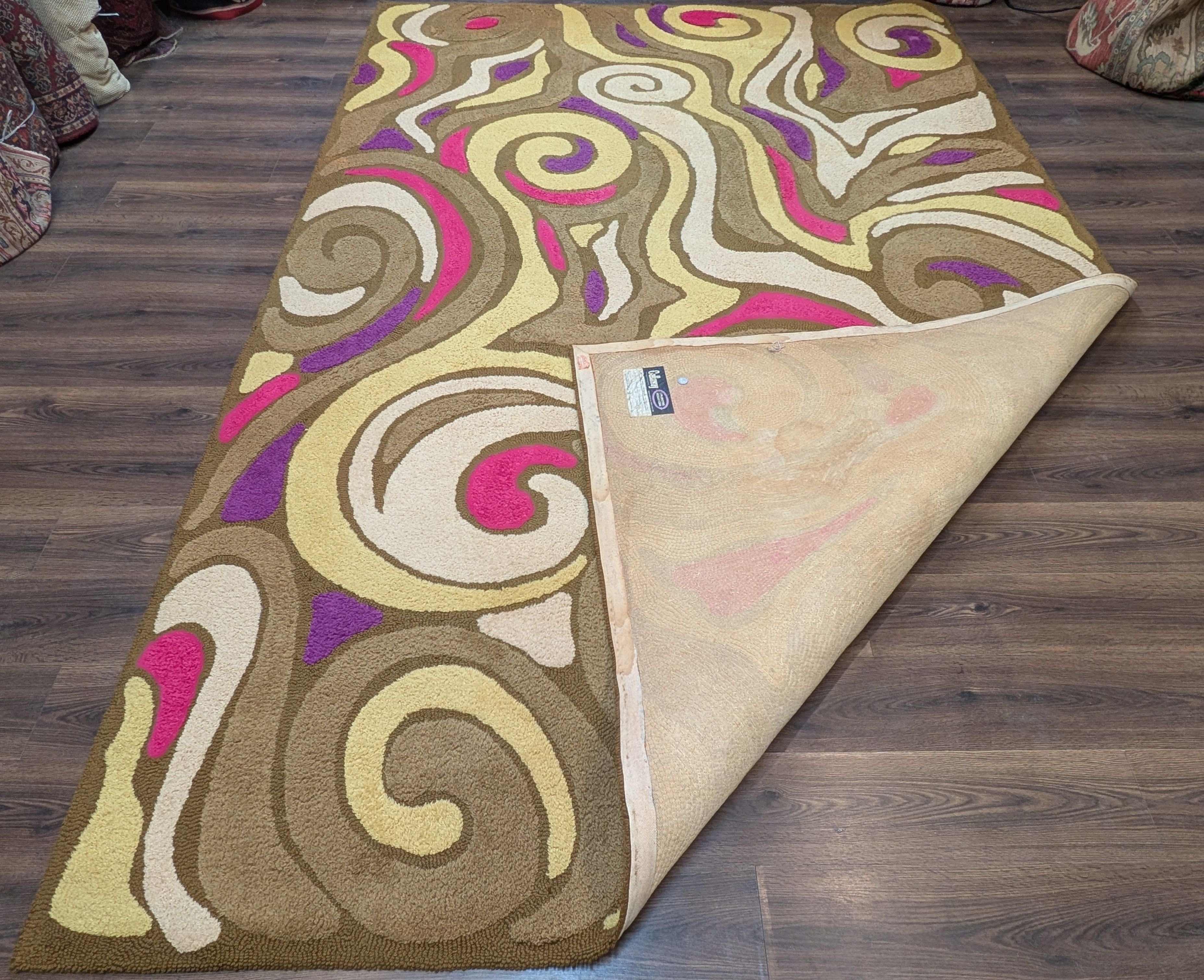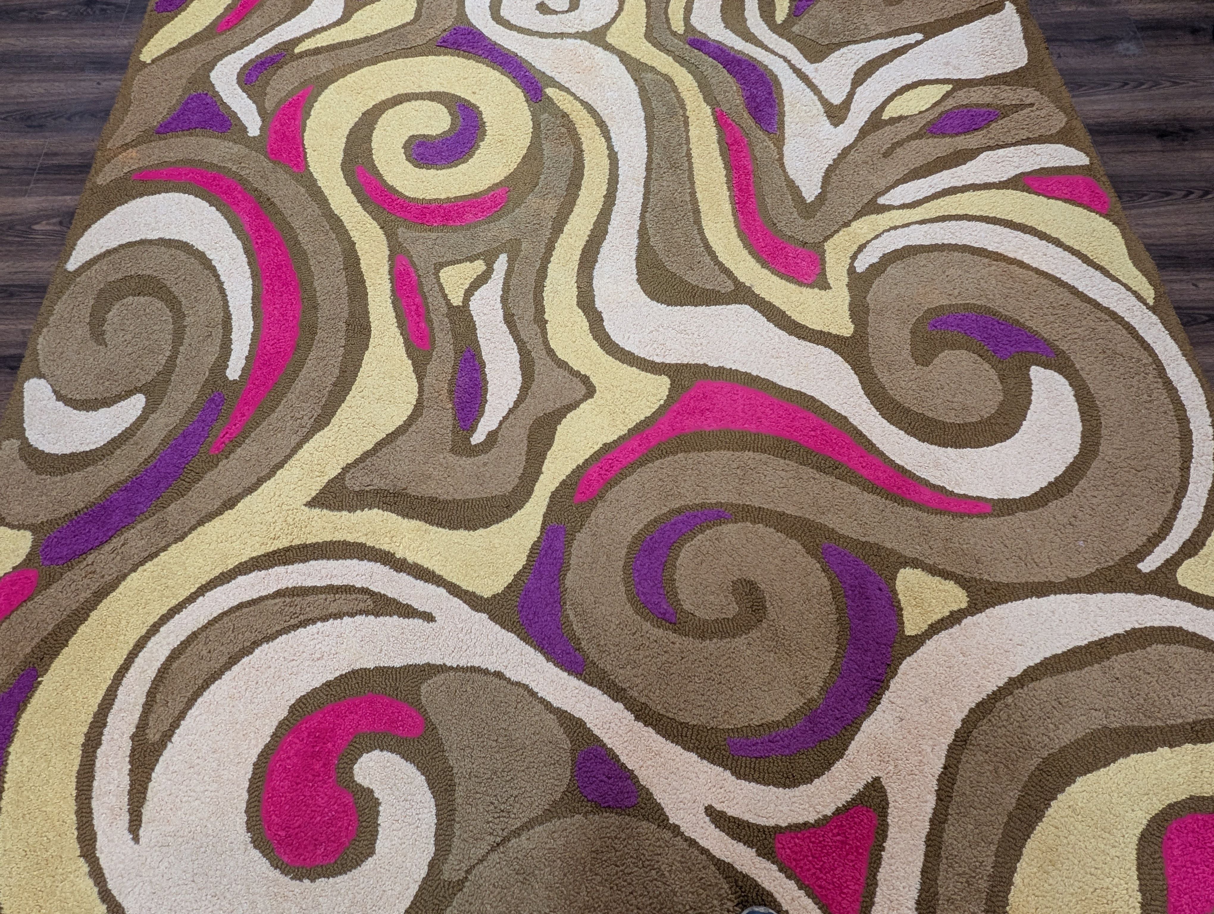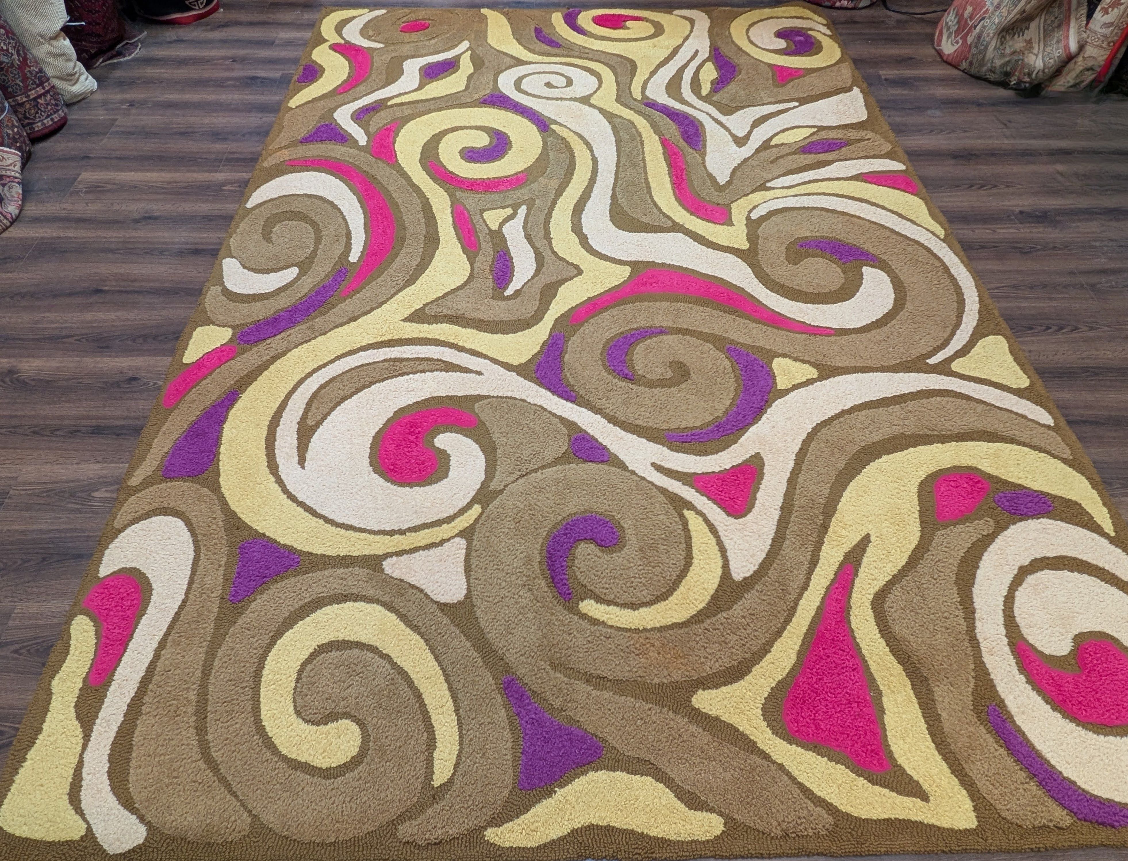 Abstract Rug 8x12, Mid Century Vintage Wool Japanese Carpet, Multicolor, Rare