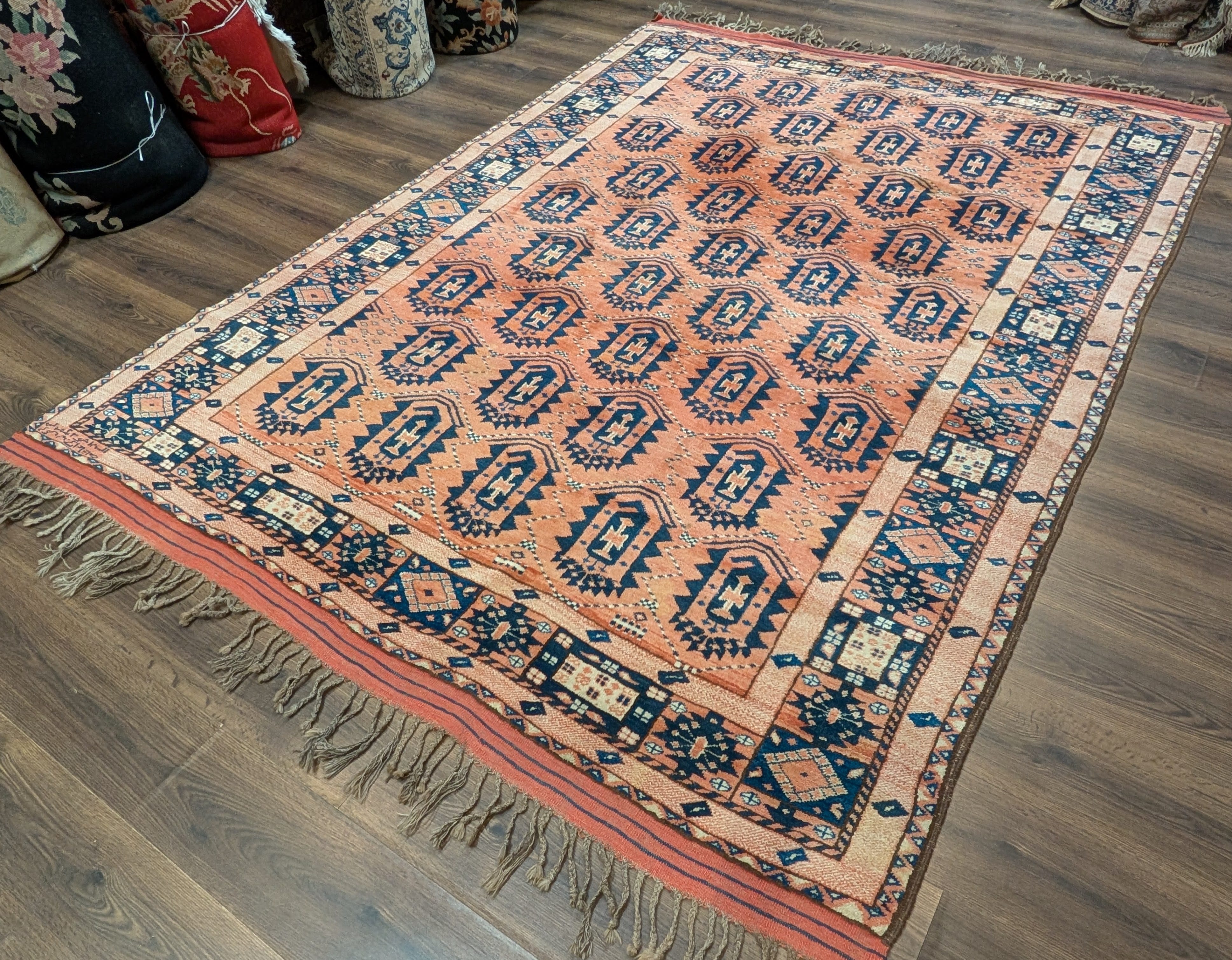 Indo Persian Rug 8x10, Salmon Pink and Cream, Allover Pattern, Wool