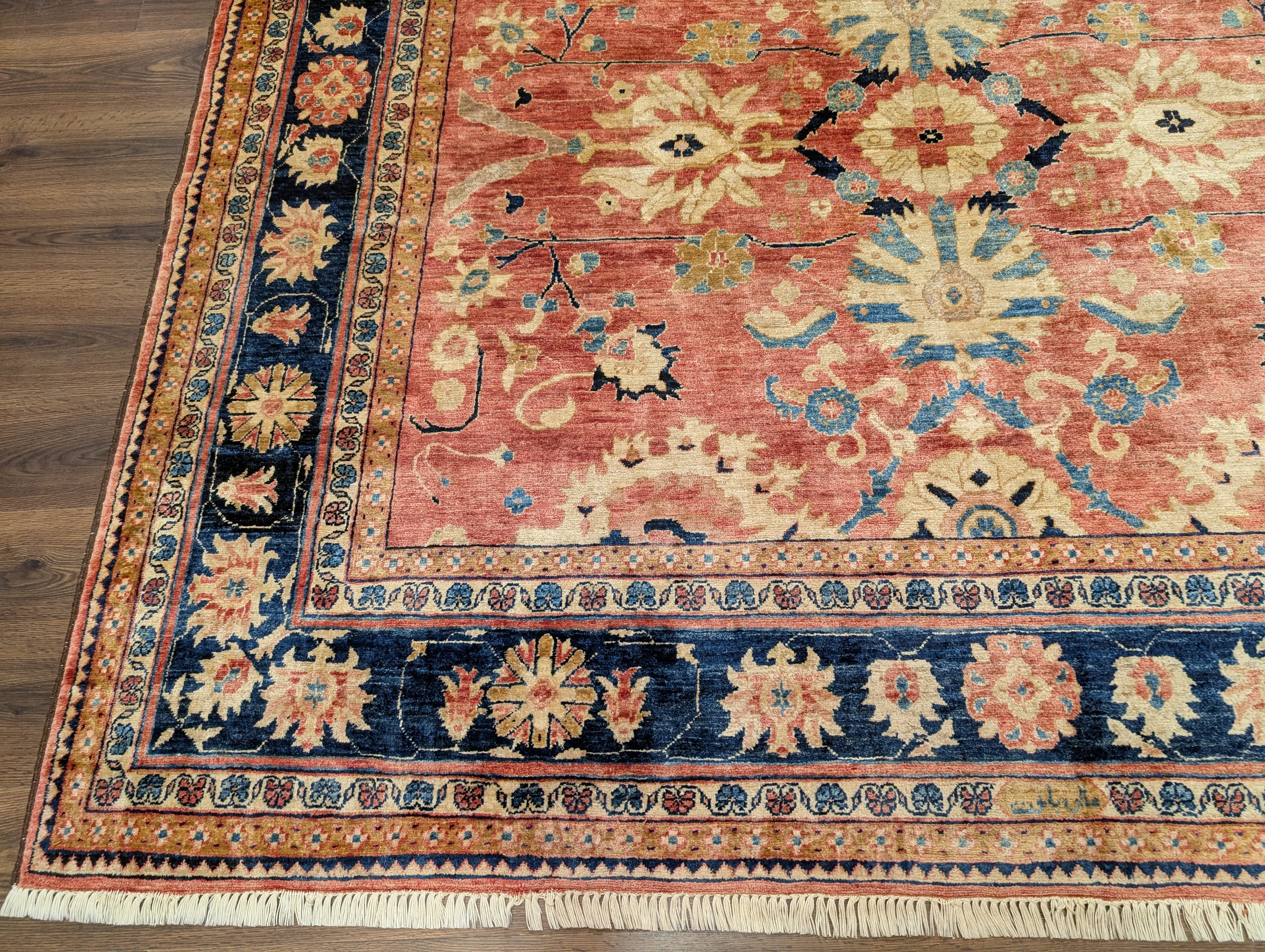 Indian Agra Rug 9x11, Navy Blue and Brick Red, Fine 200 KPSI, Wide Border