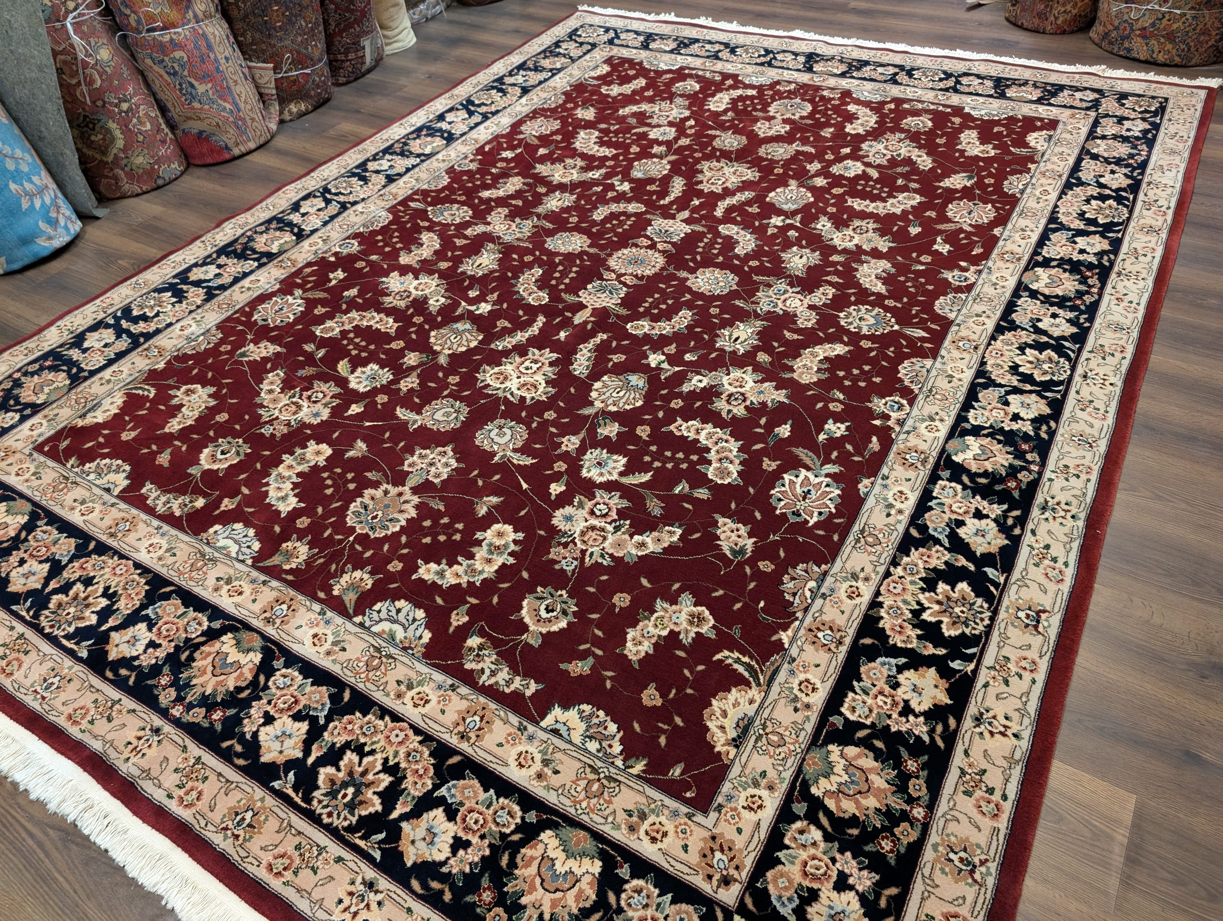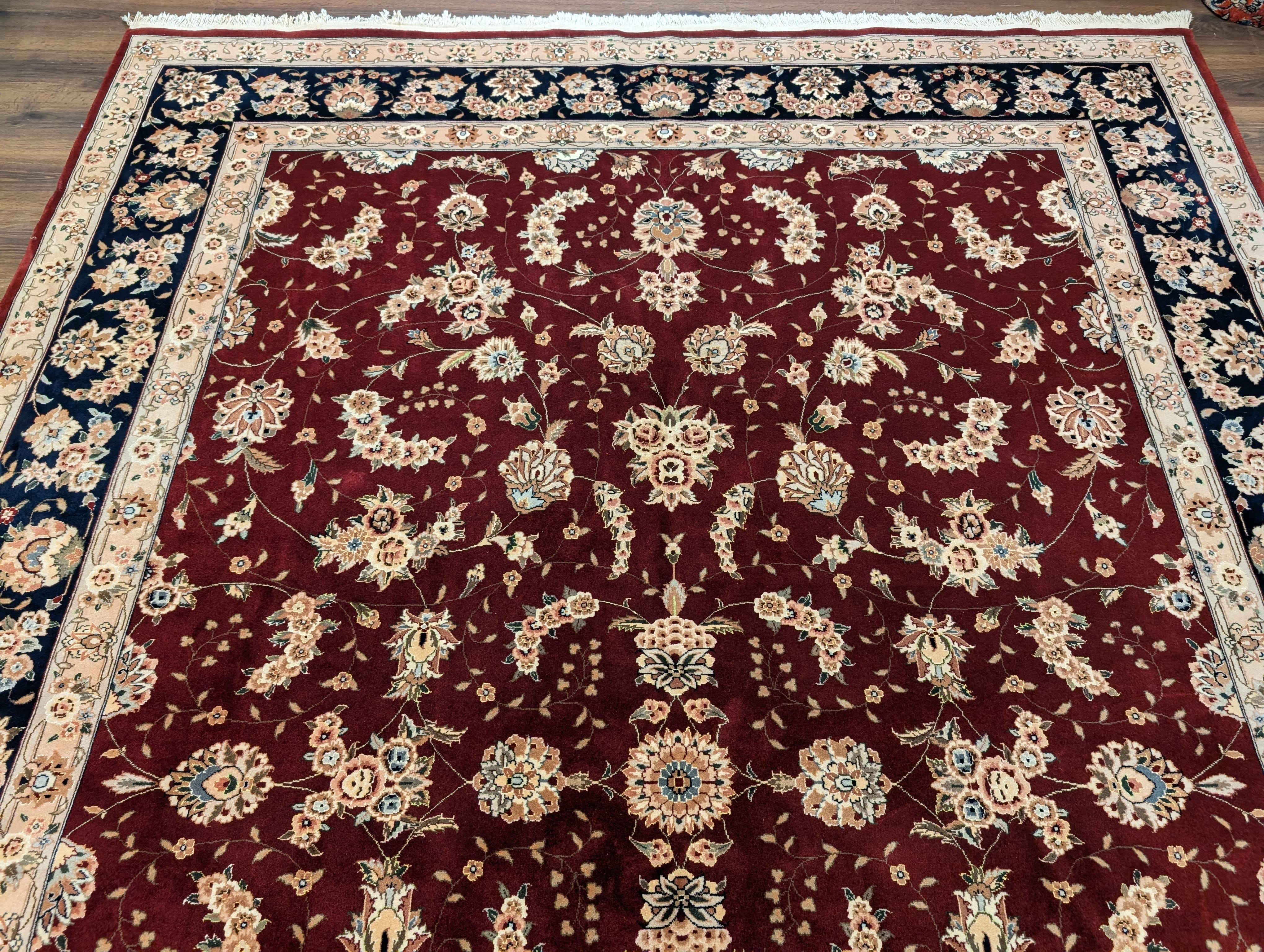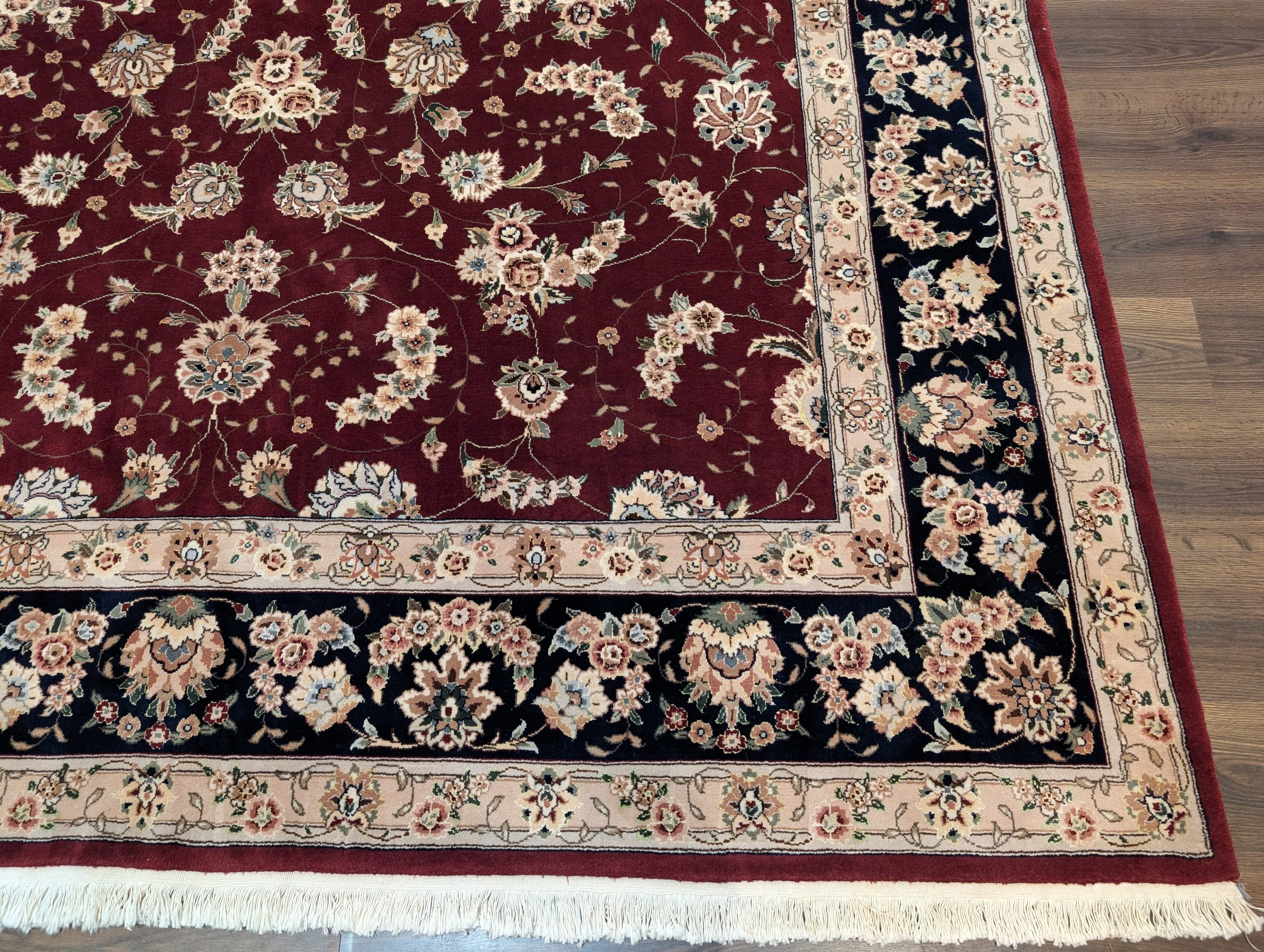 Sino Persian Rug 9x12, Burgundy and Navy Blue, Allover Pattern, Fine 290 KPSI