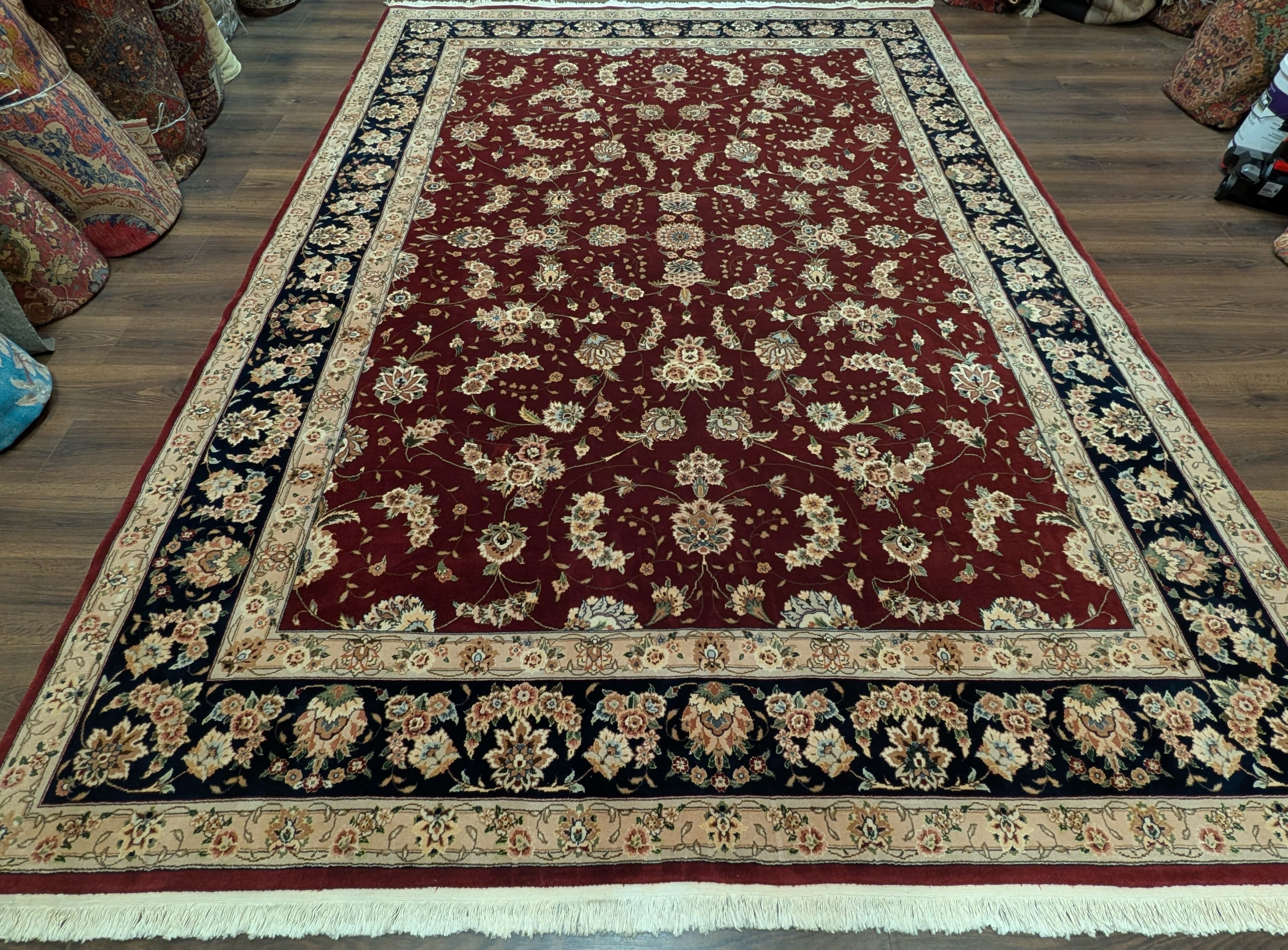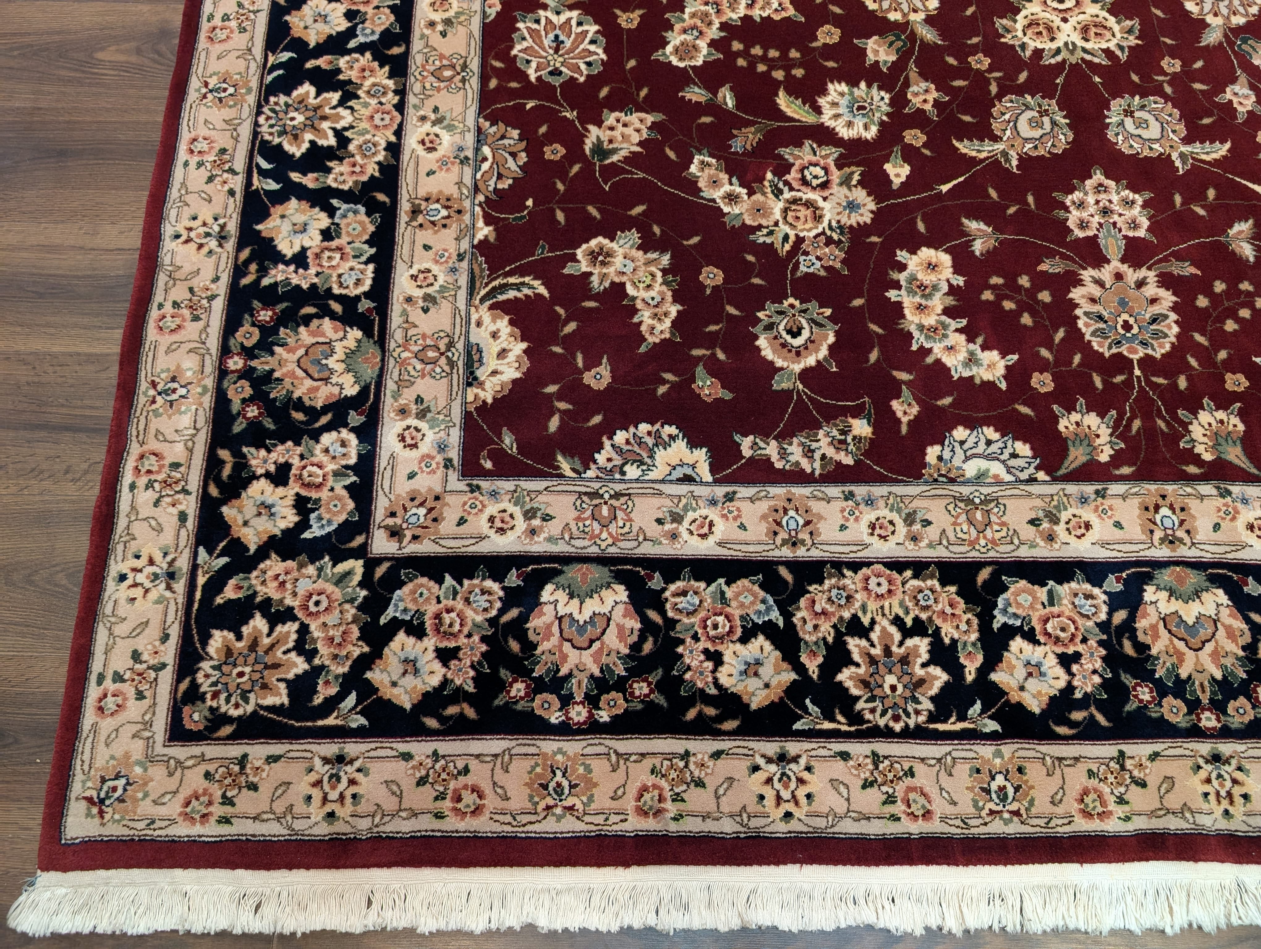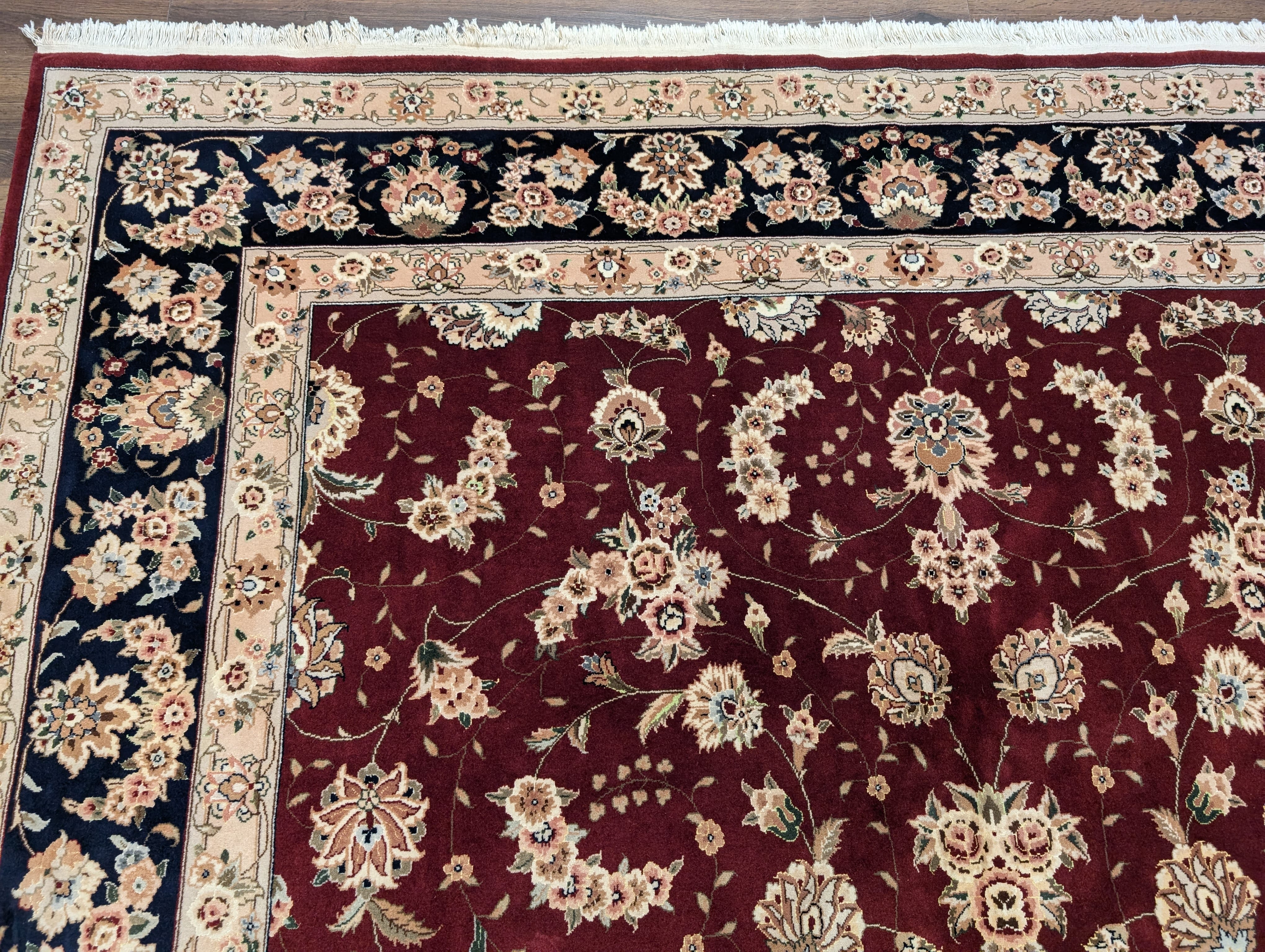 Sino Persian Rug 9x12, Burgundy and Navy Blue, Allover Pattern, Fine 290 KPSI