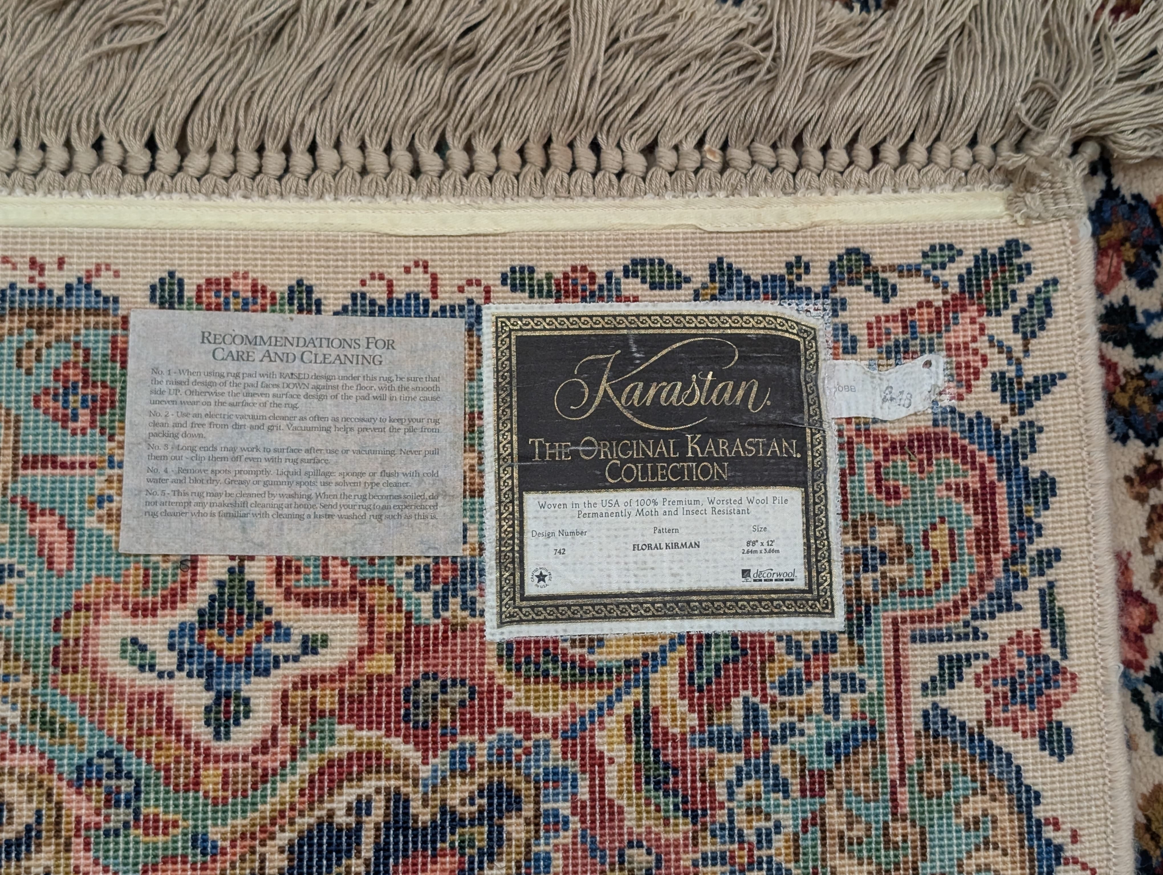 Karastan Rug Floral Kirman #742, 8.8 x 12 Karastan Carpet, Vintage, Wool