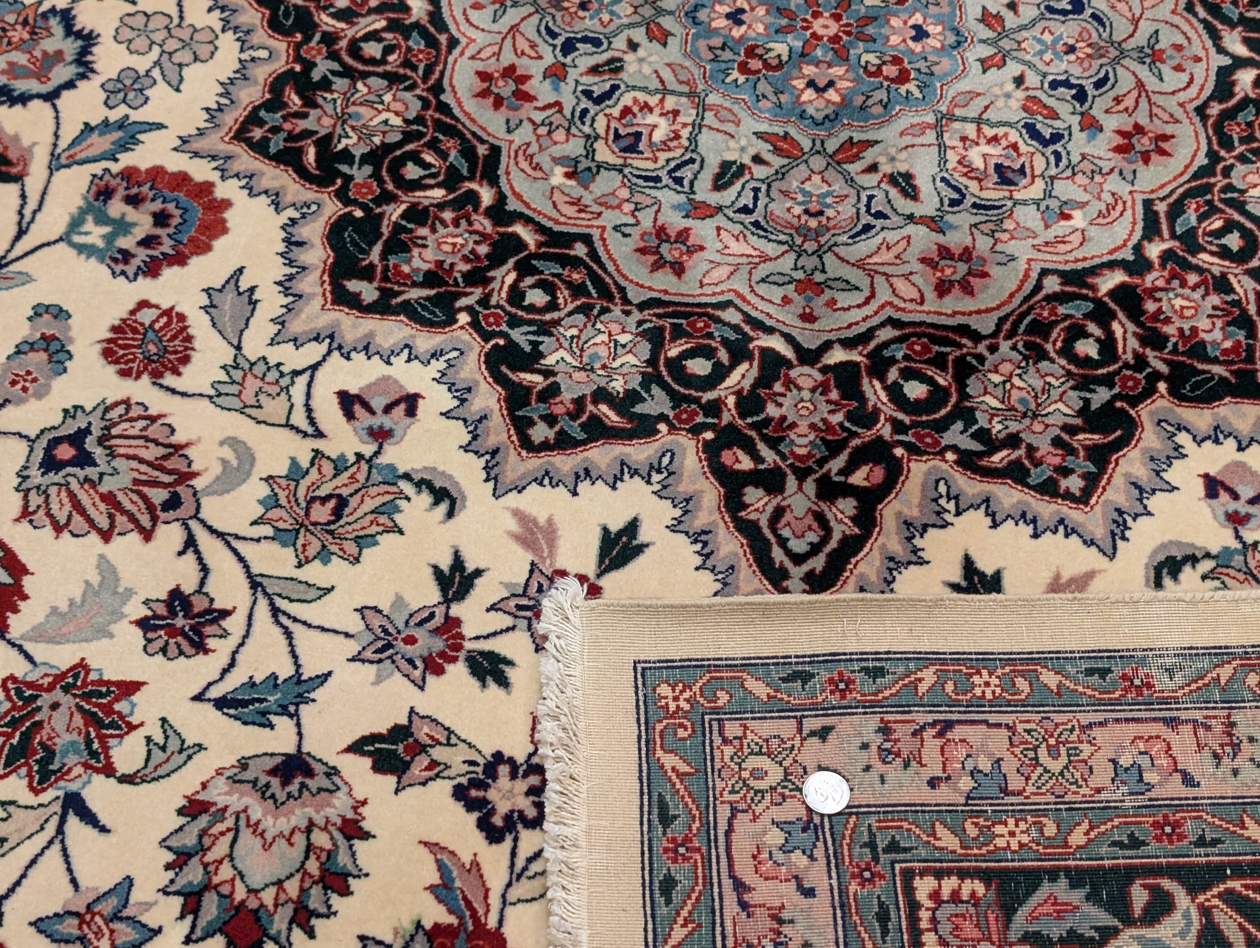 Sino Persian Rug 9x12, Ivory-Cream-Beige and Navy Blue, Floral Medallion