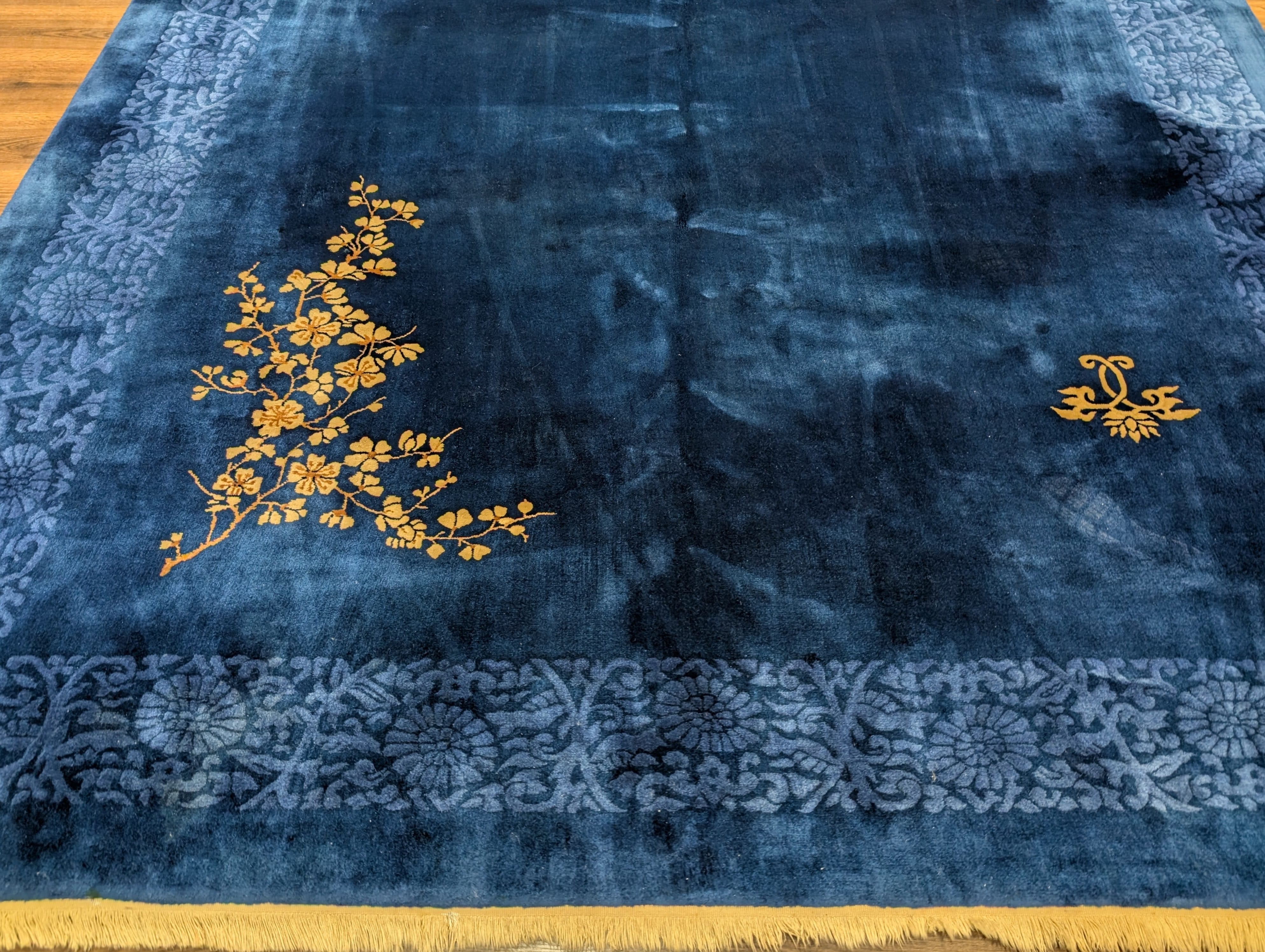 Blue Chinese Art Deco Rug 9x12, Nichols Carpet, Chinese Wool Rug