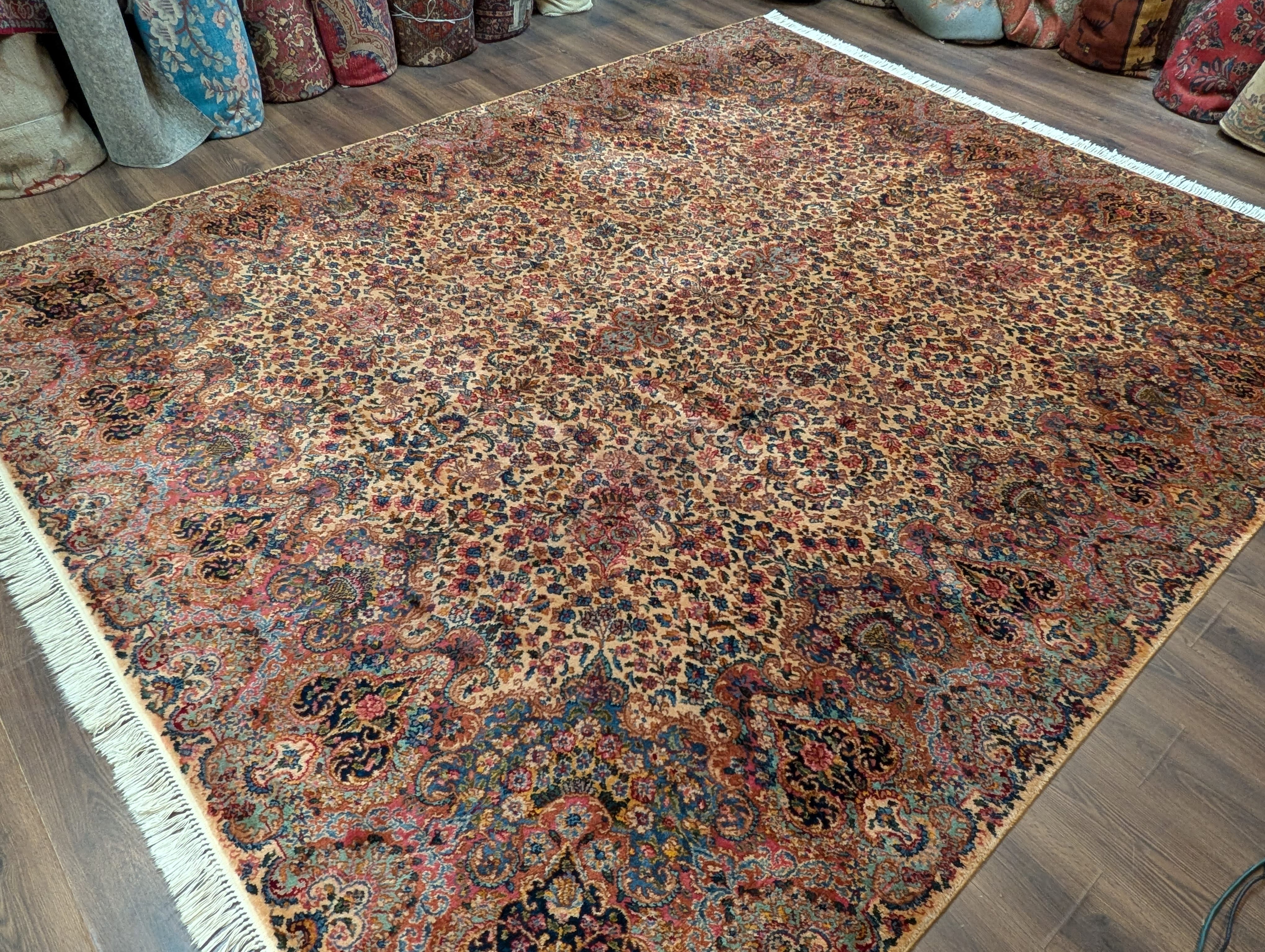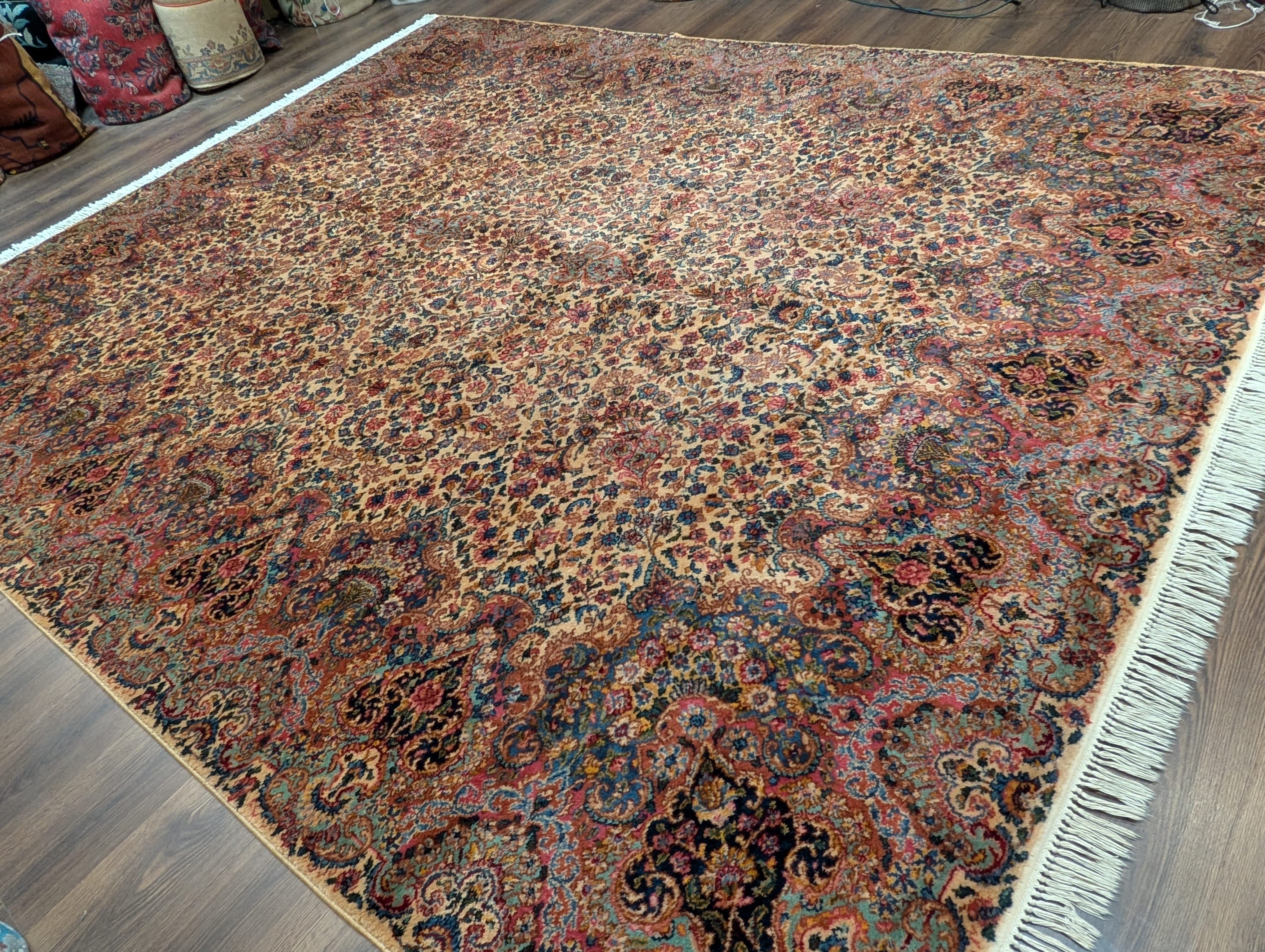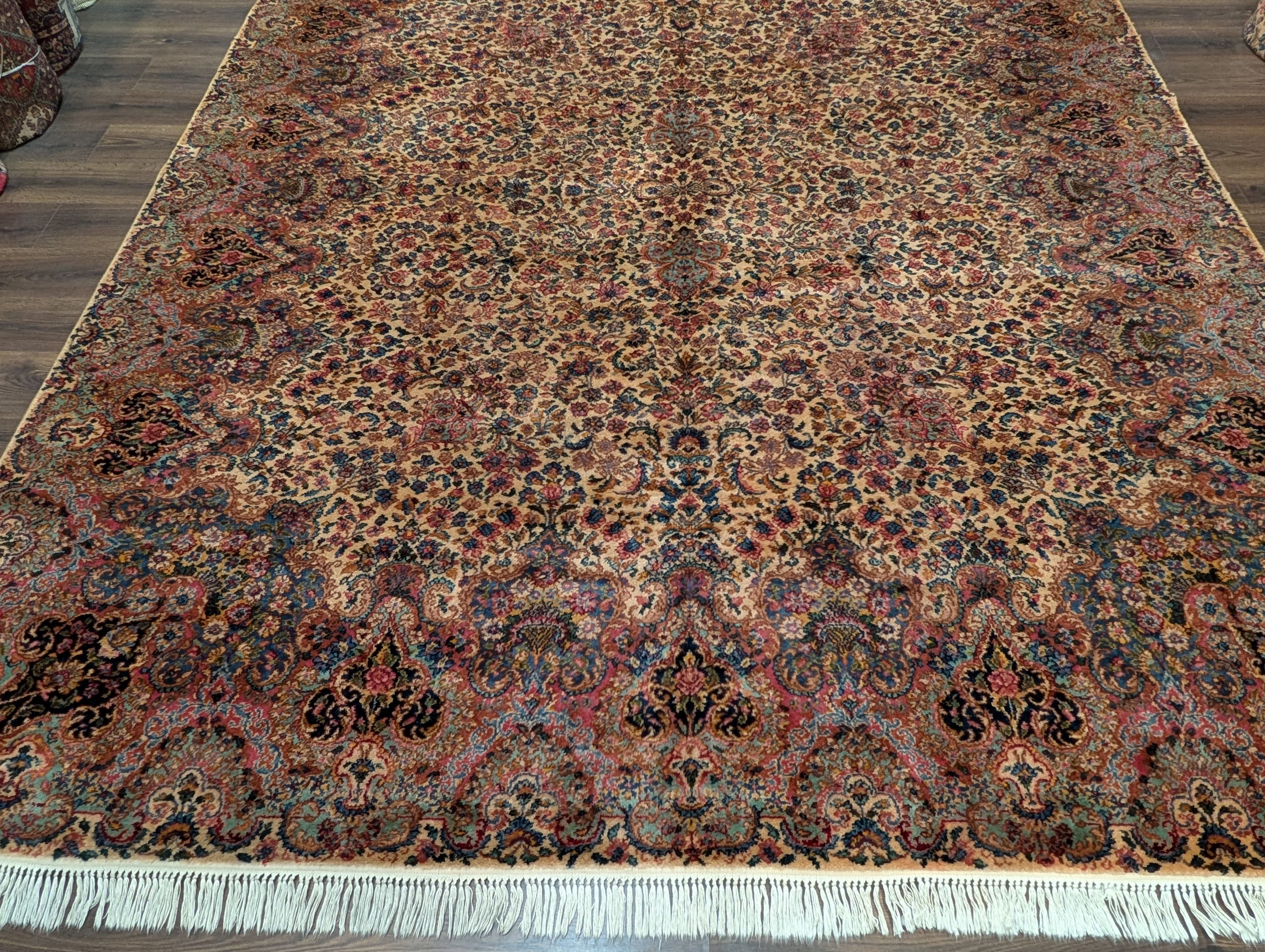 Antique Karastan Kirman Rug 10x12, Ivory Floral Kirman #759, Wool