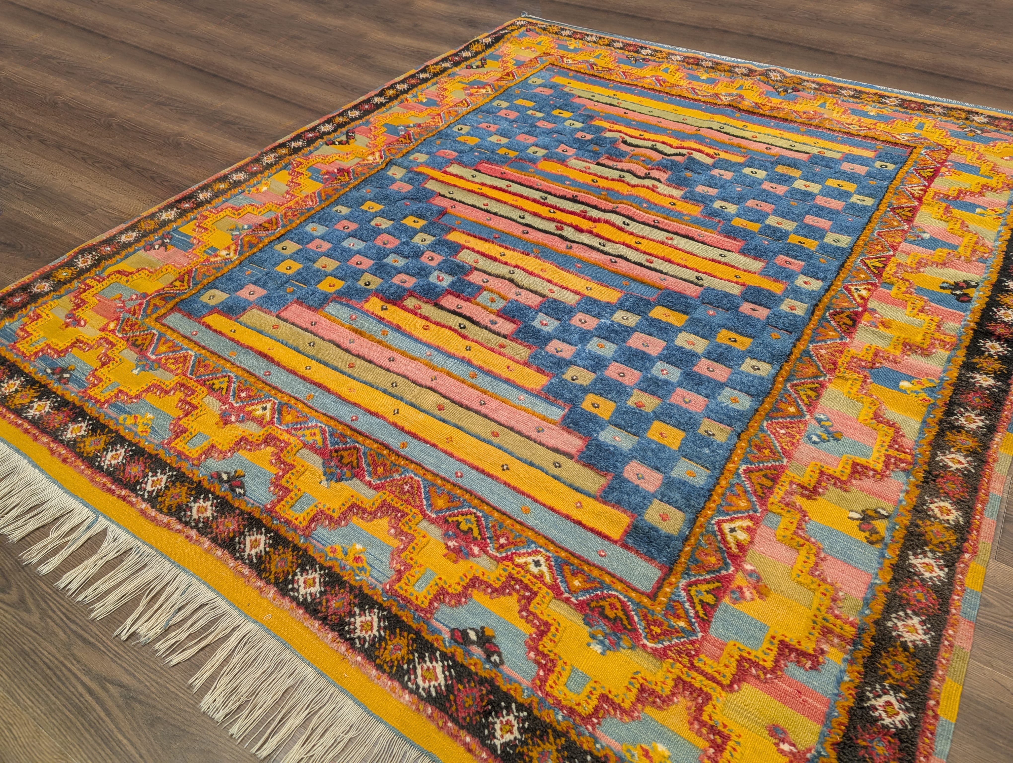 Moroccan Rug 7x8, Vibrant Colors, Geometric, Tribal, Wool, Unique