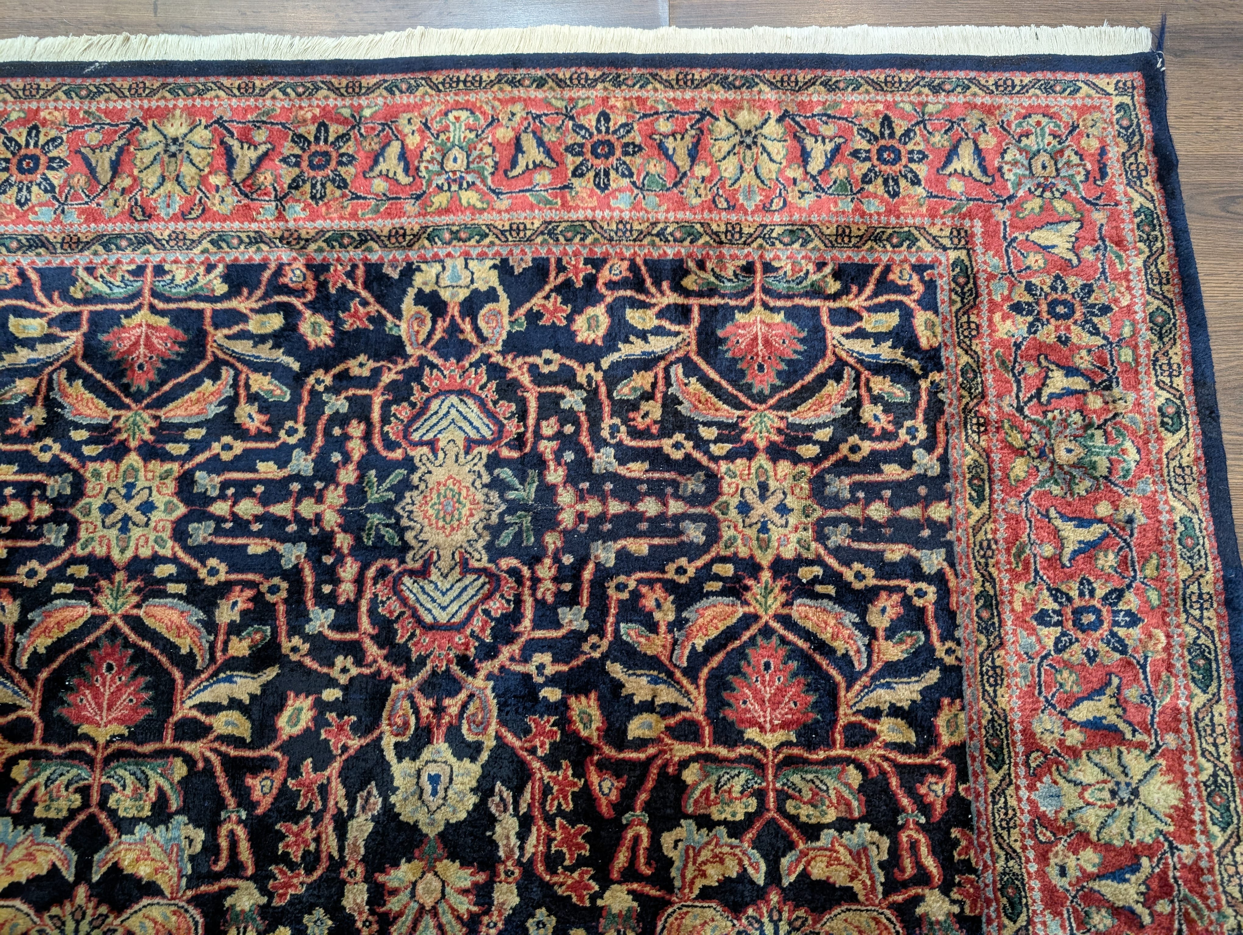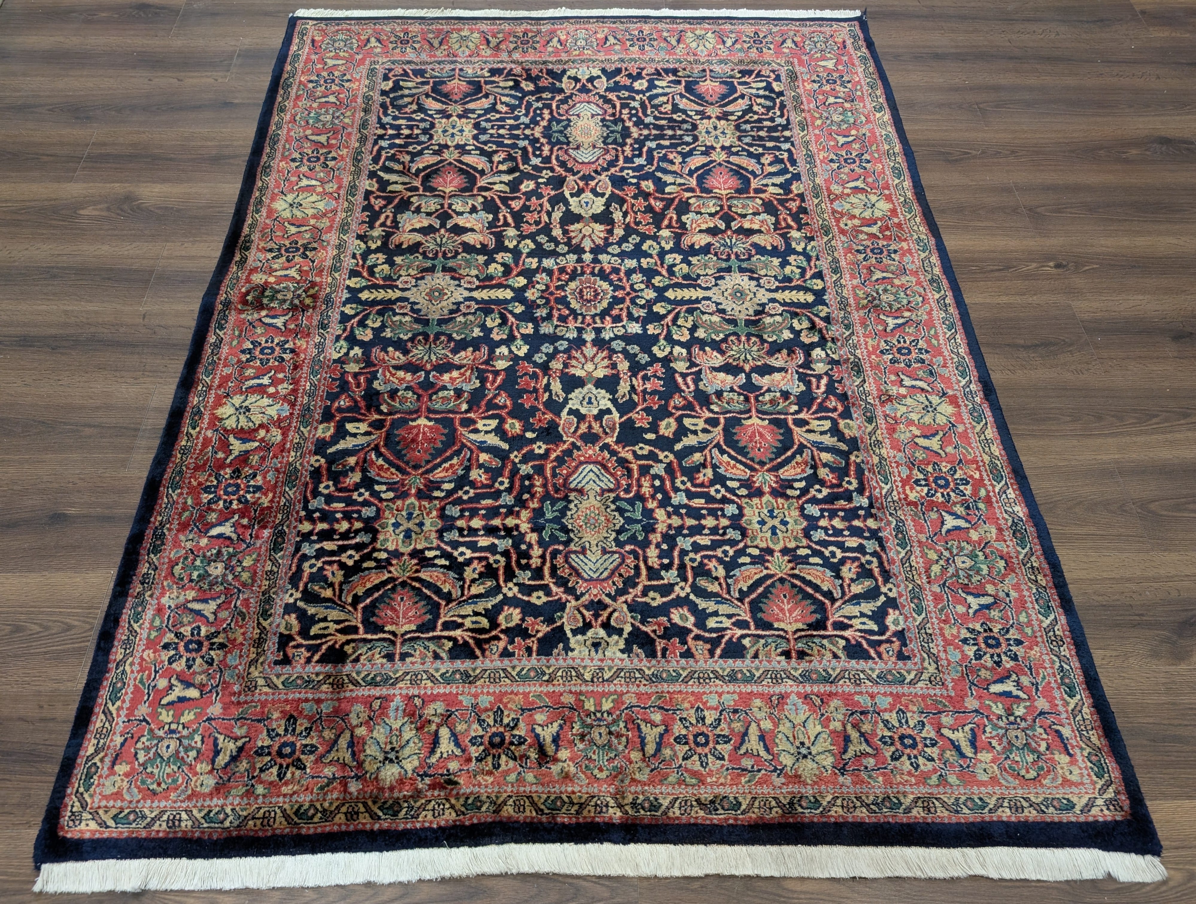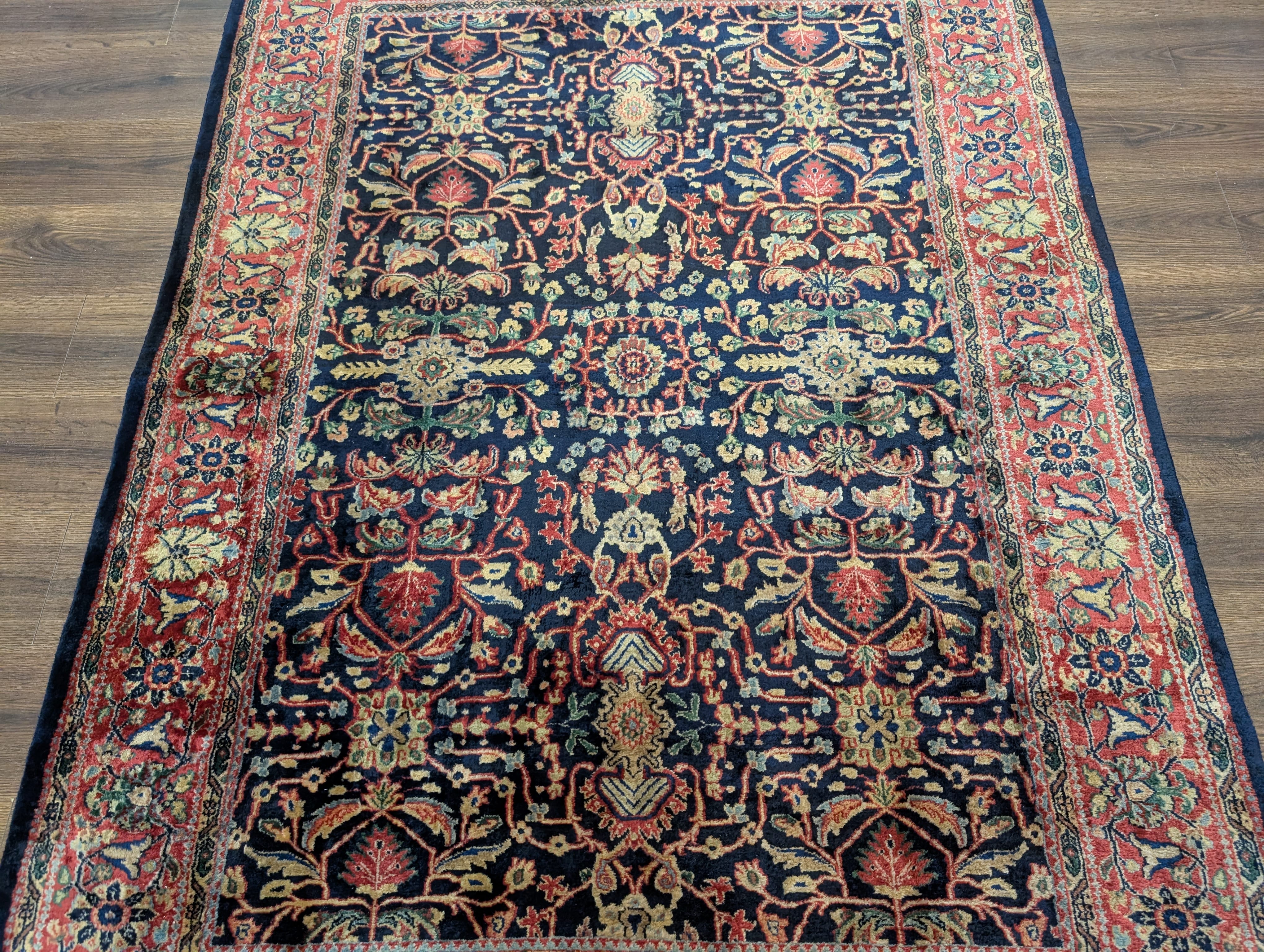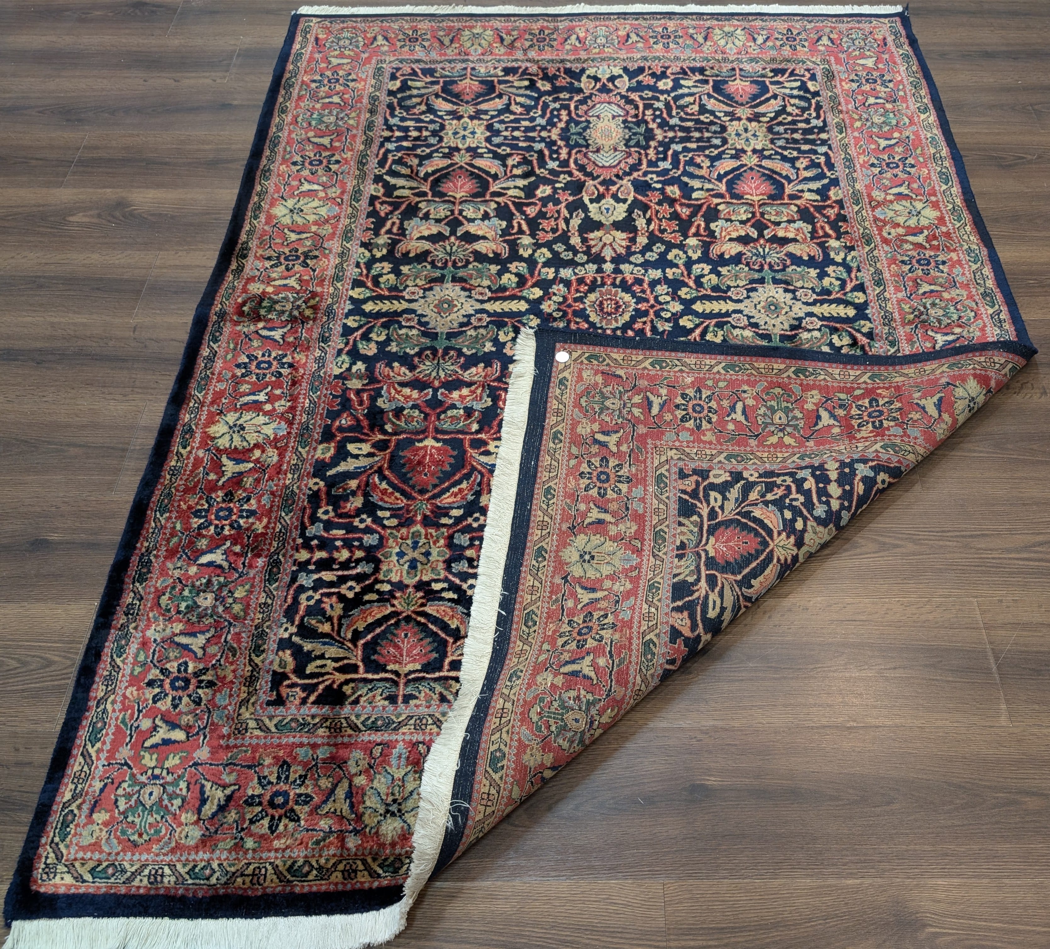 Antique Persian Sarouk Rug 4x6, Navy Blue