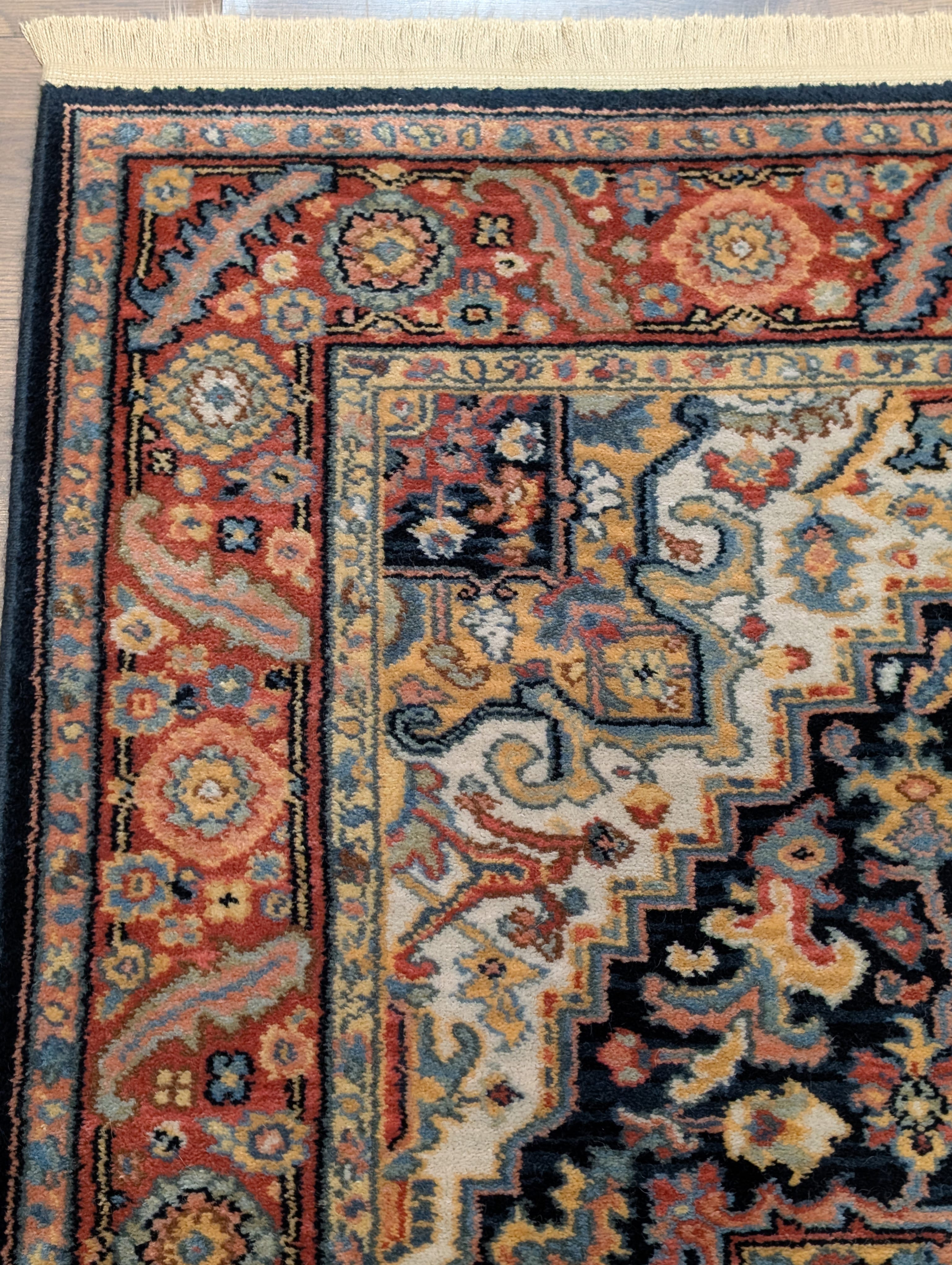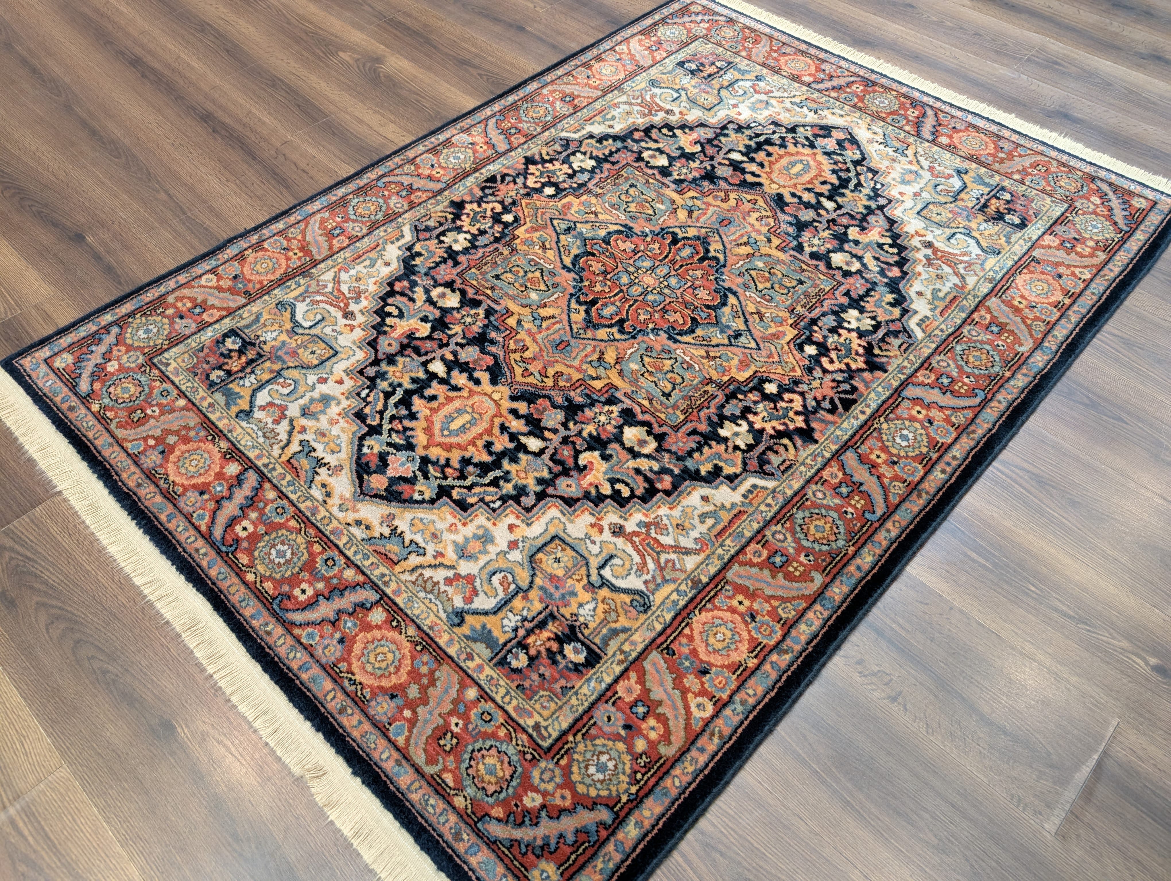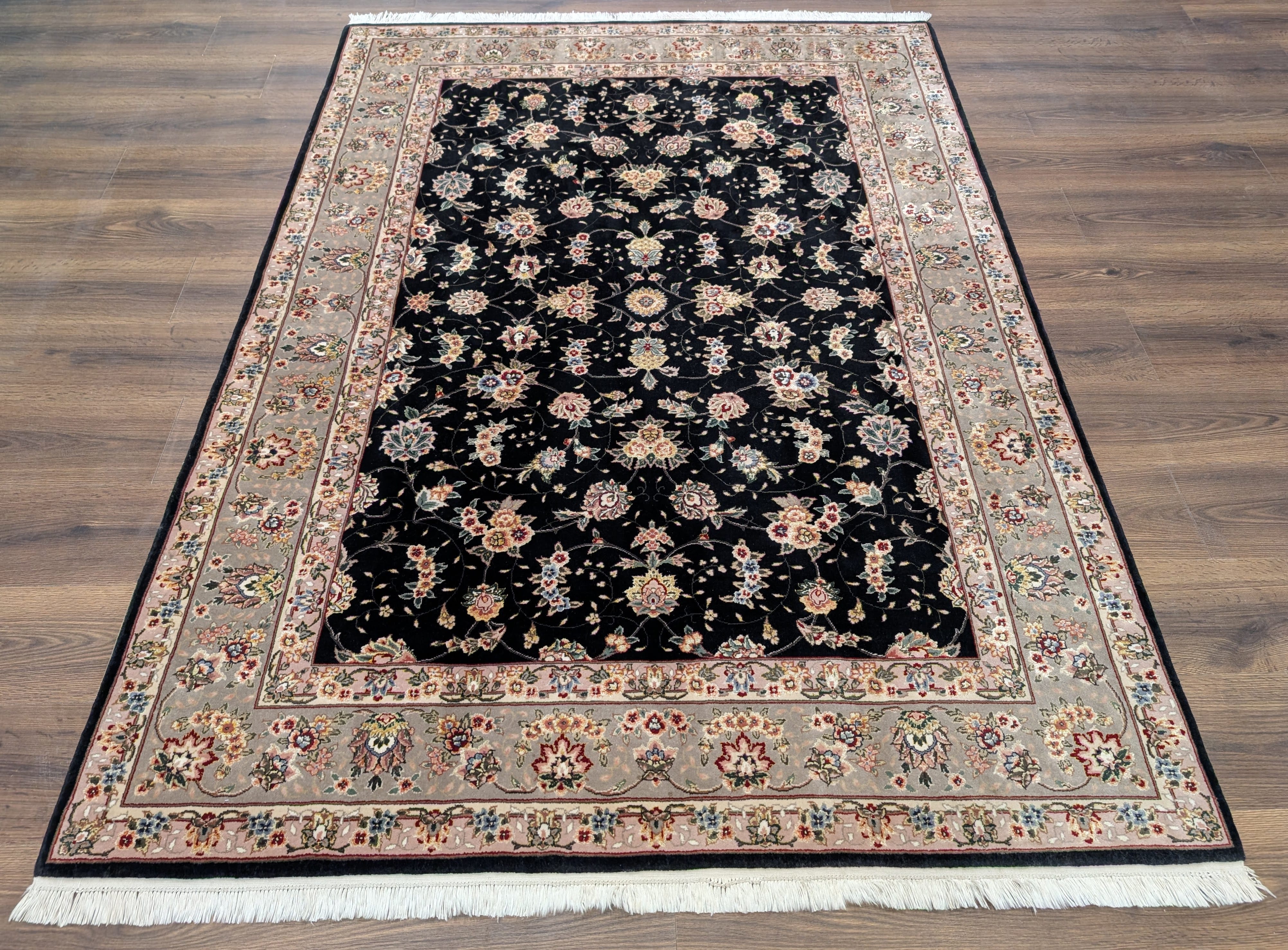Indo Persian Rug 6x9, Navy Blue, Floral, Fine 290 KPSI
