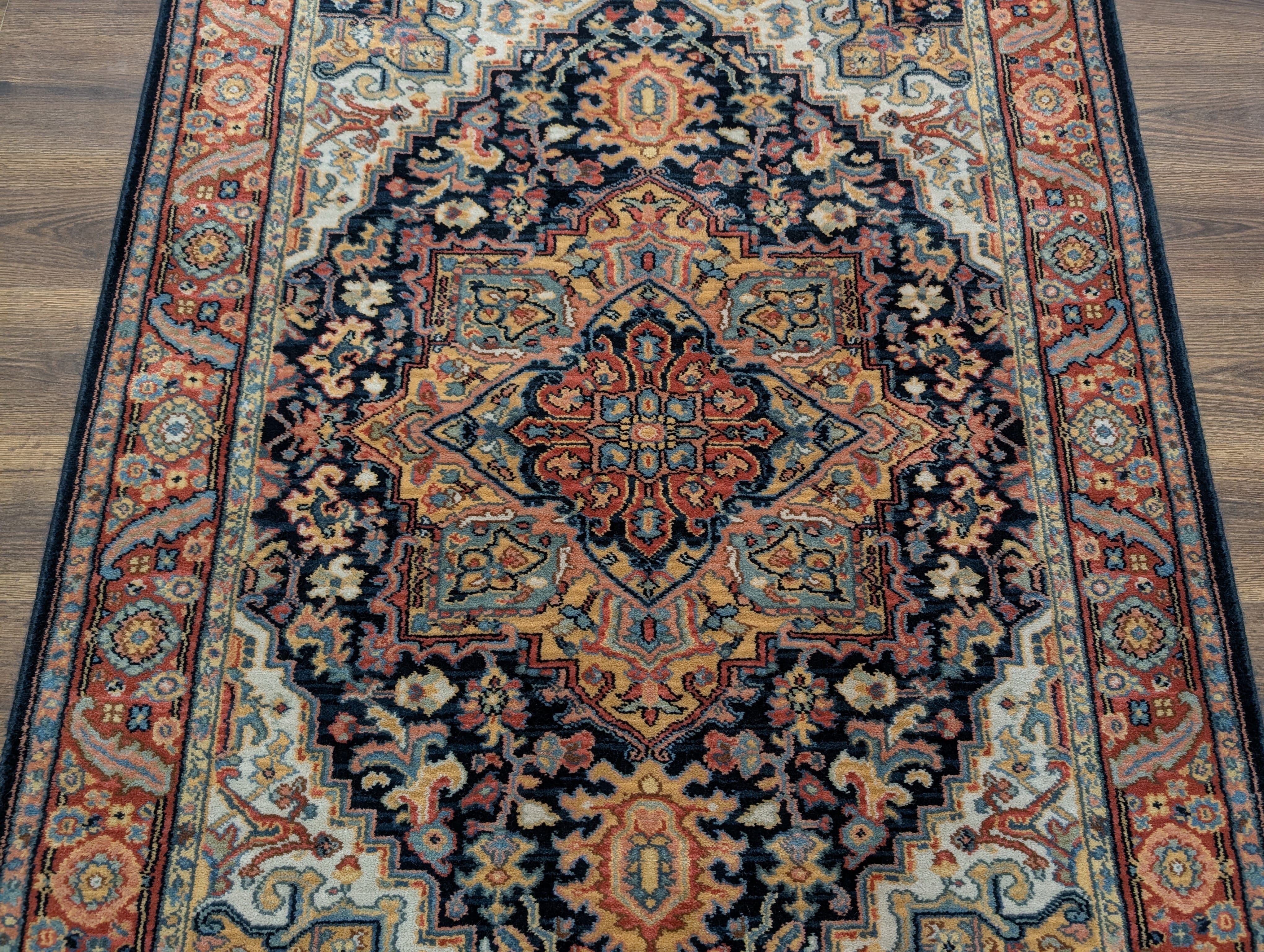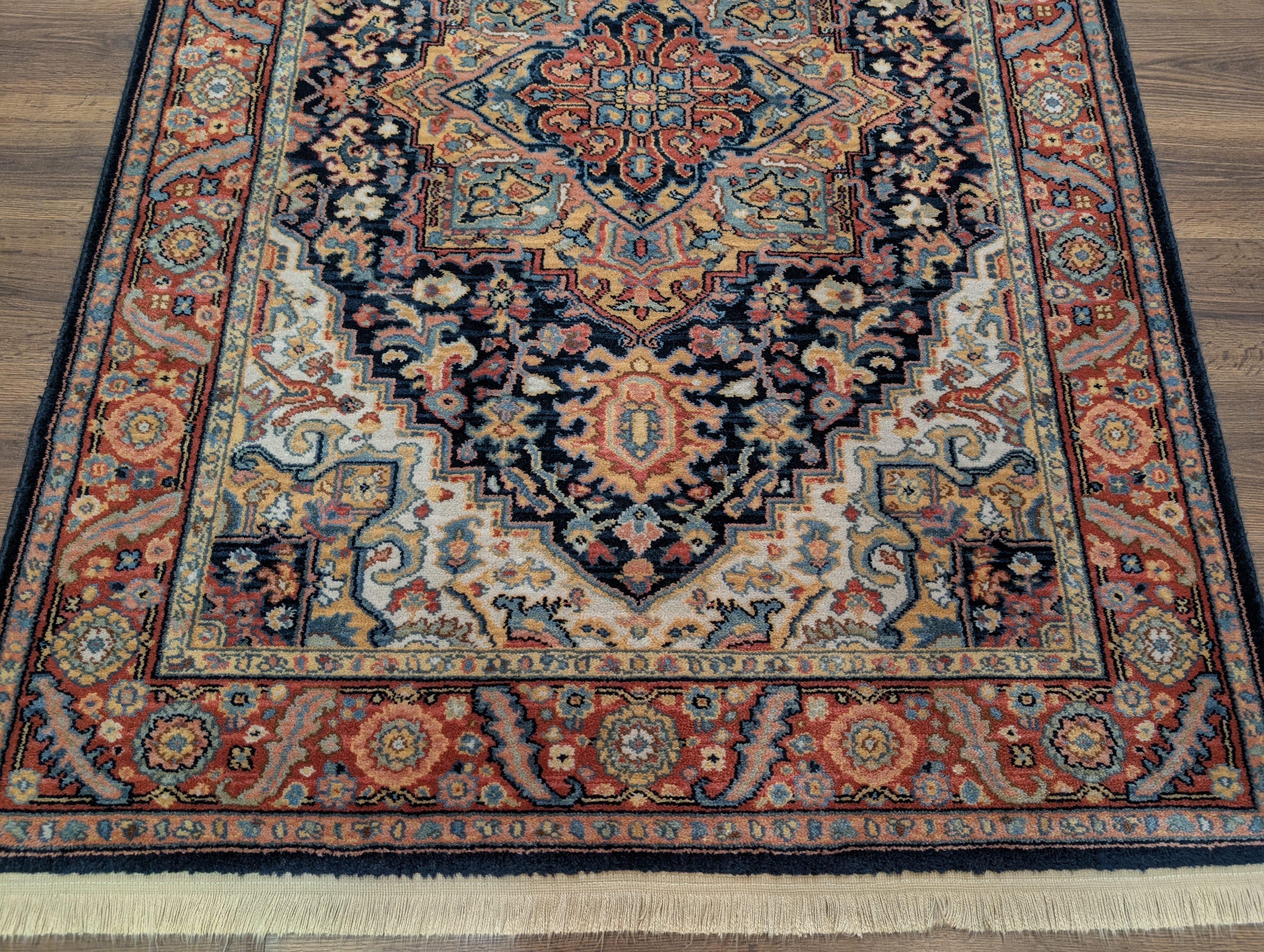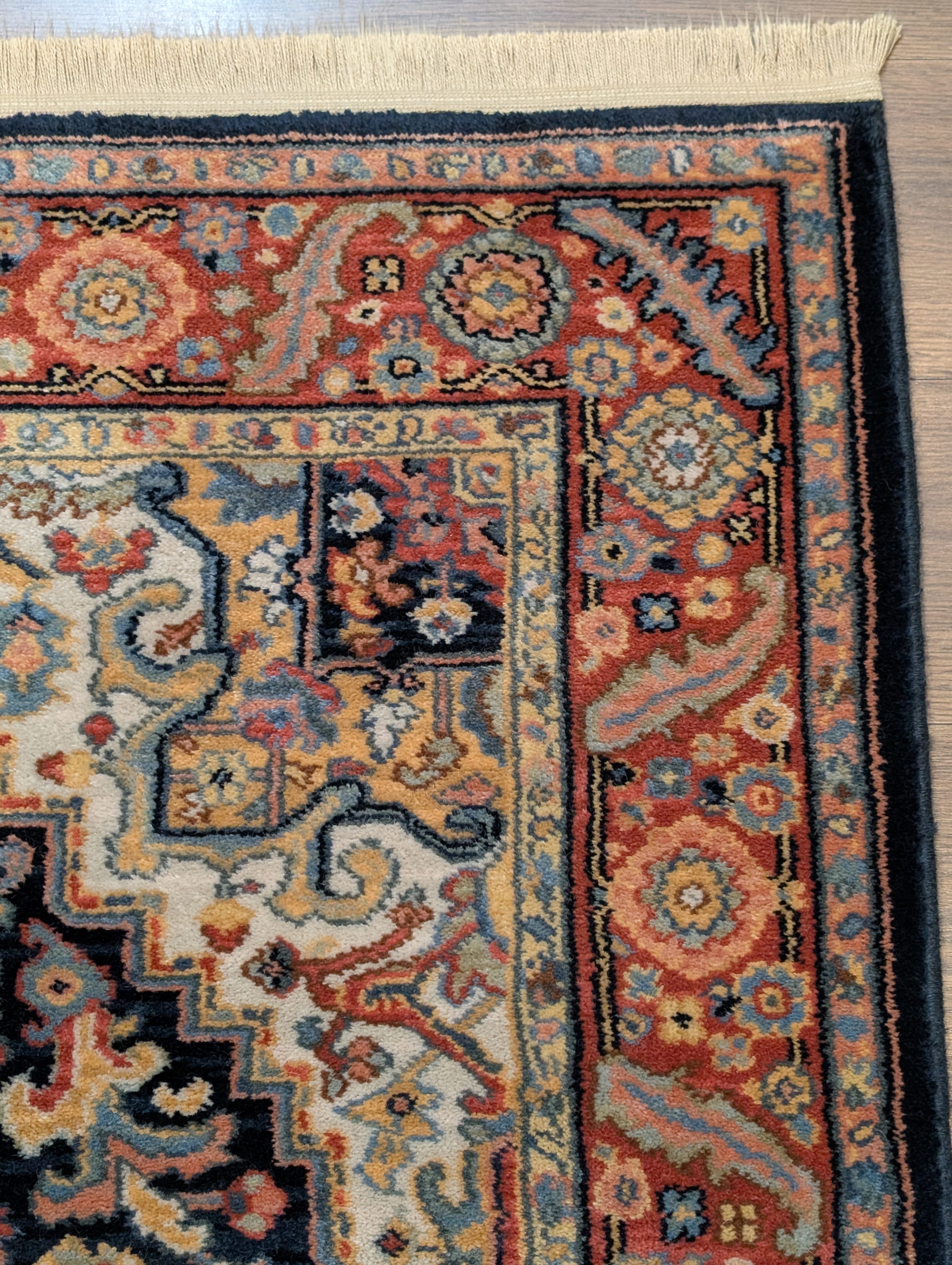 Persian Malayer Rug 4x7, Navy Blue, Geometric Medallion, Wool