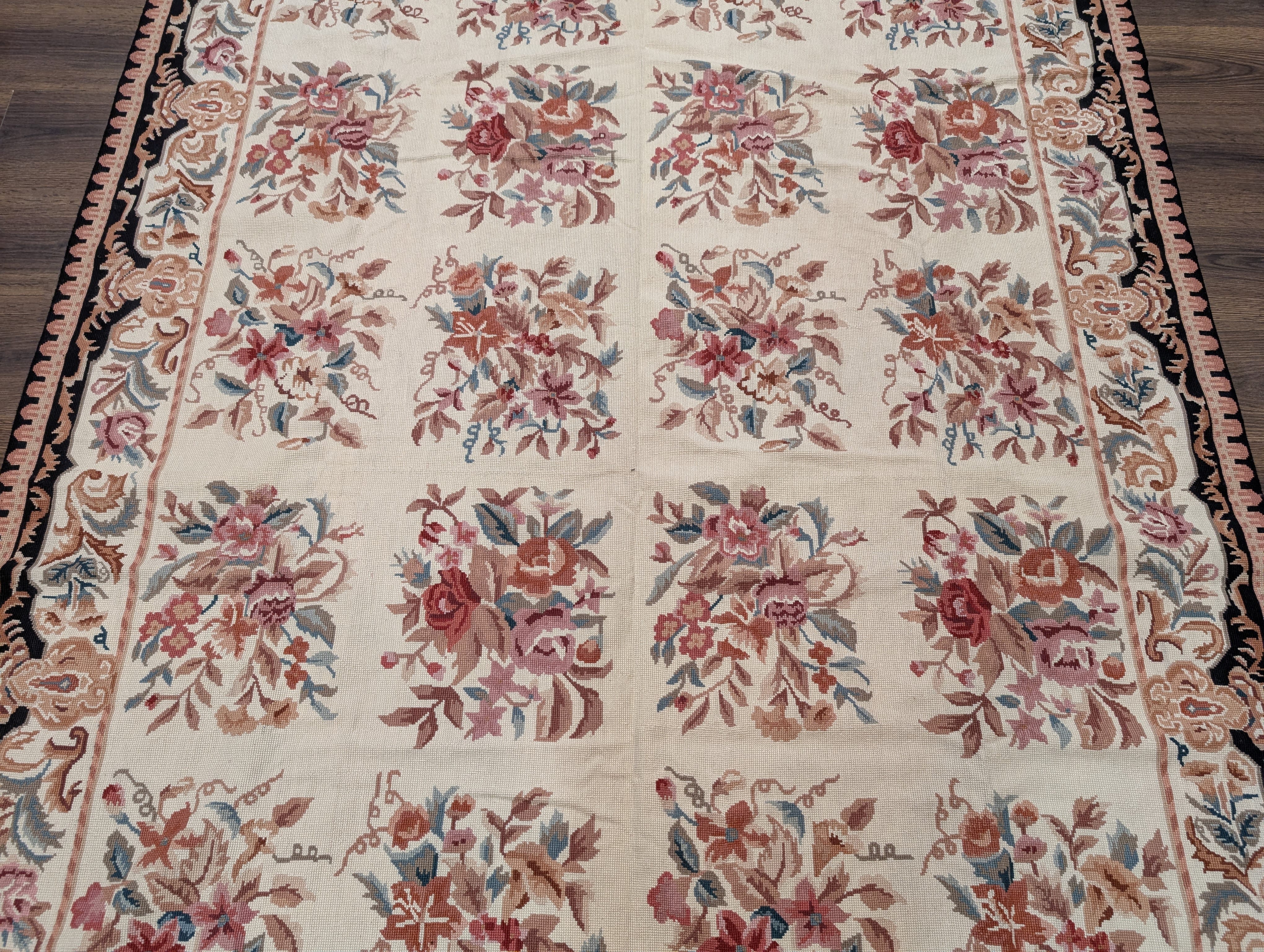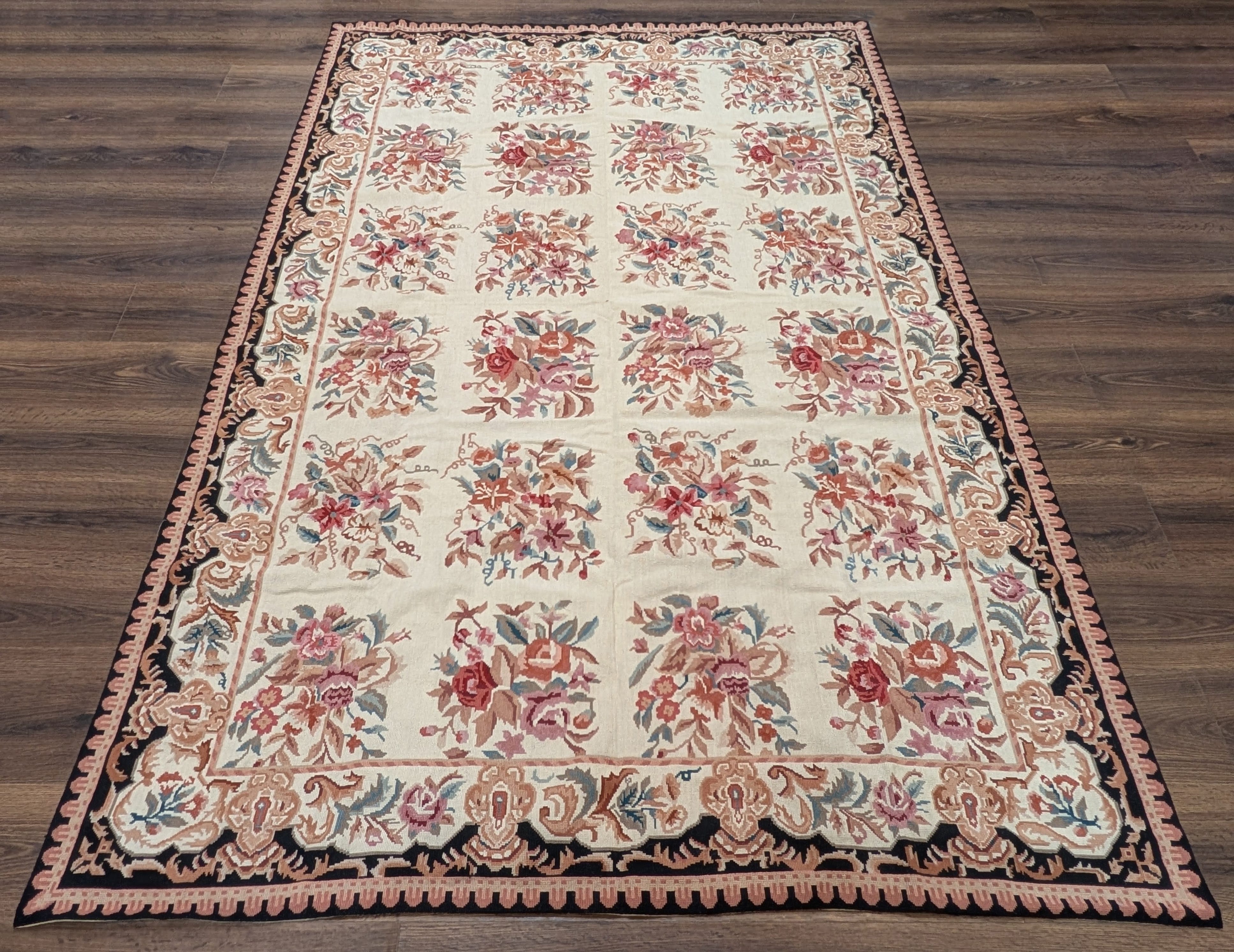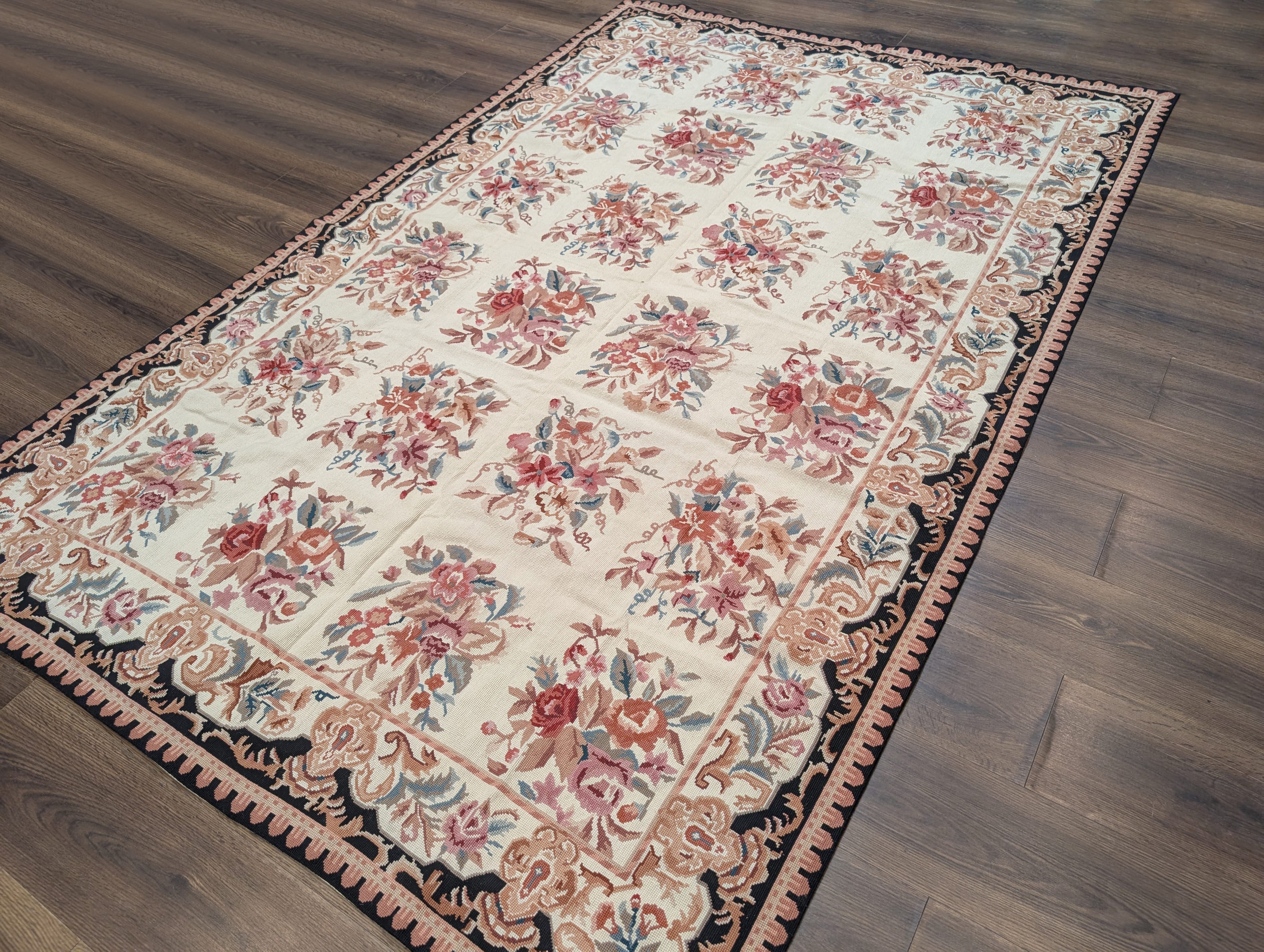 Aubusson Needlepoint Rug 6x9, Elegant European Design Carpet, New