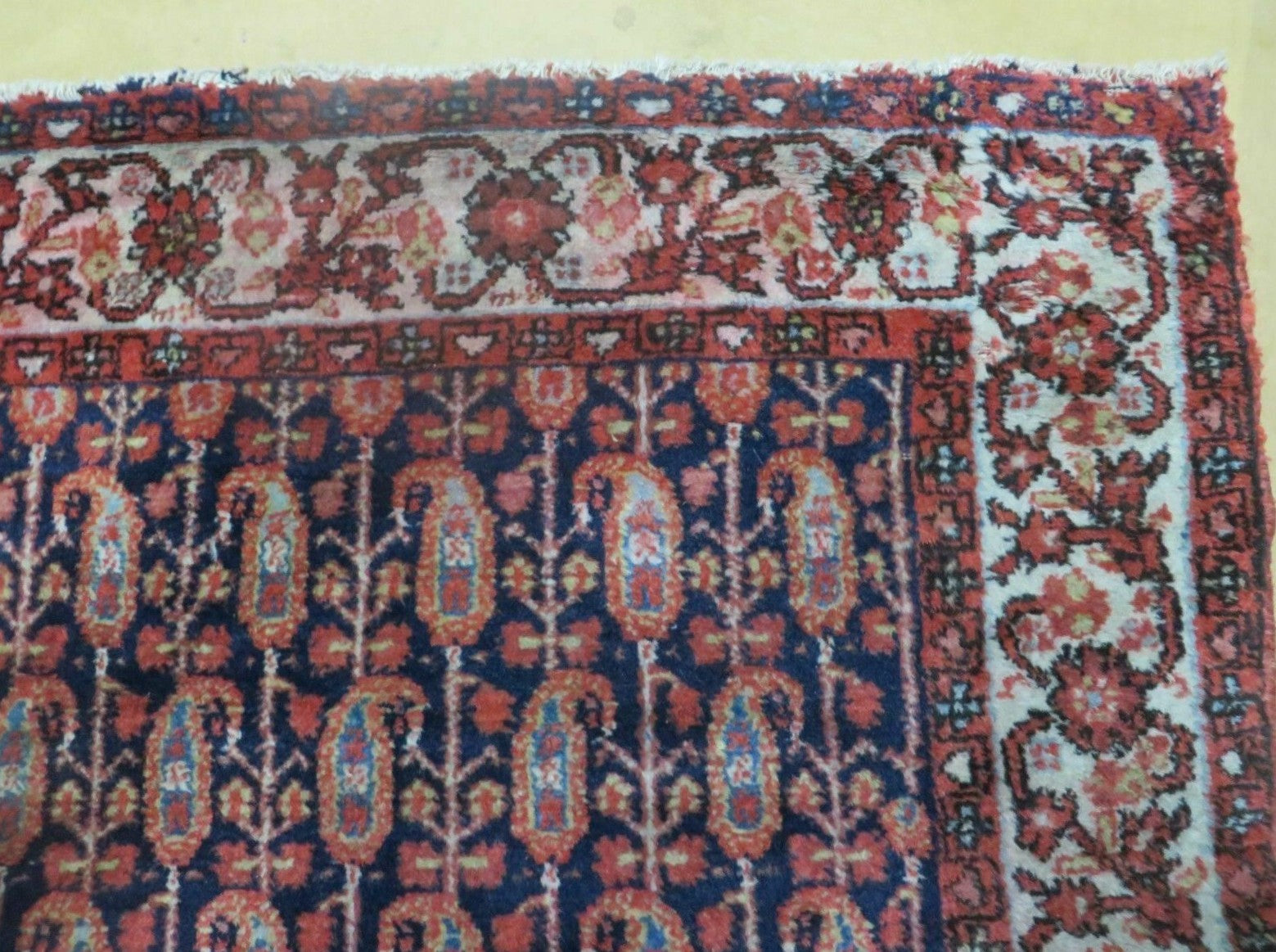 Navy Blue Persian Hamadan Rug 4x6, Allover Repeated Boteh Paisley Design, Wool