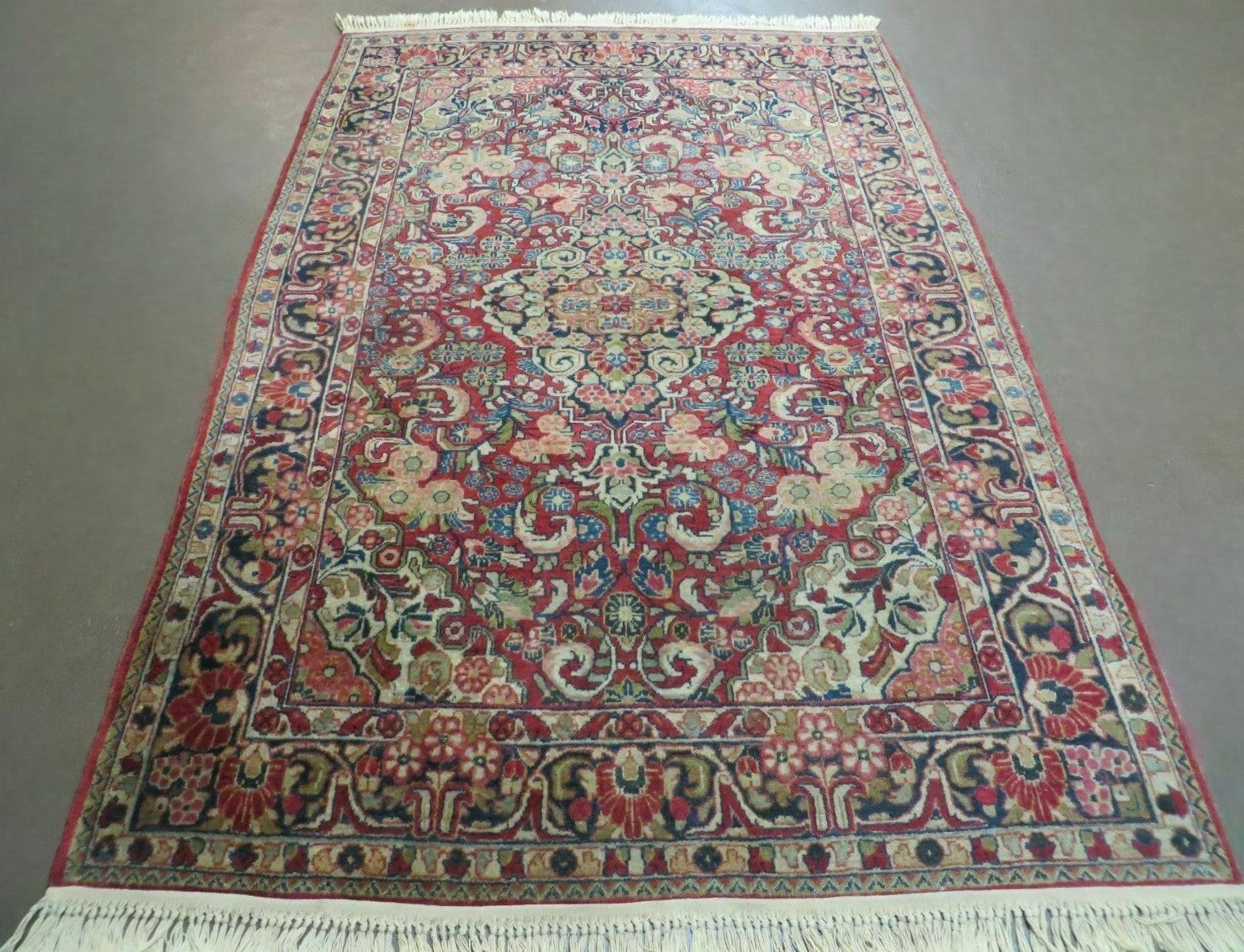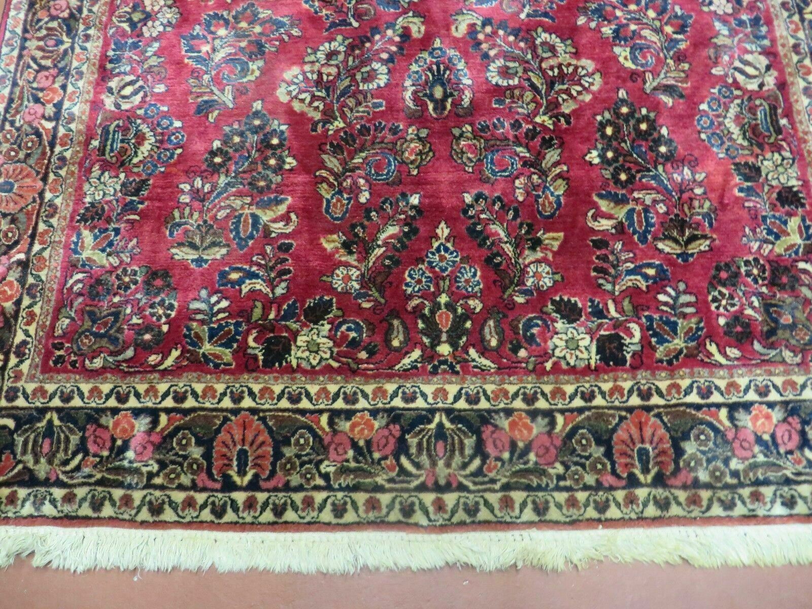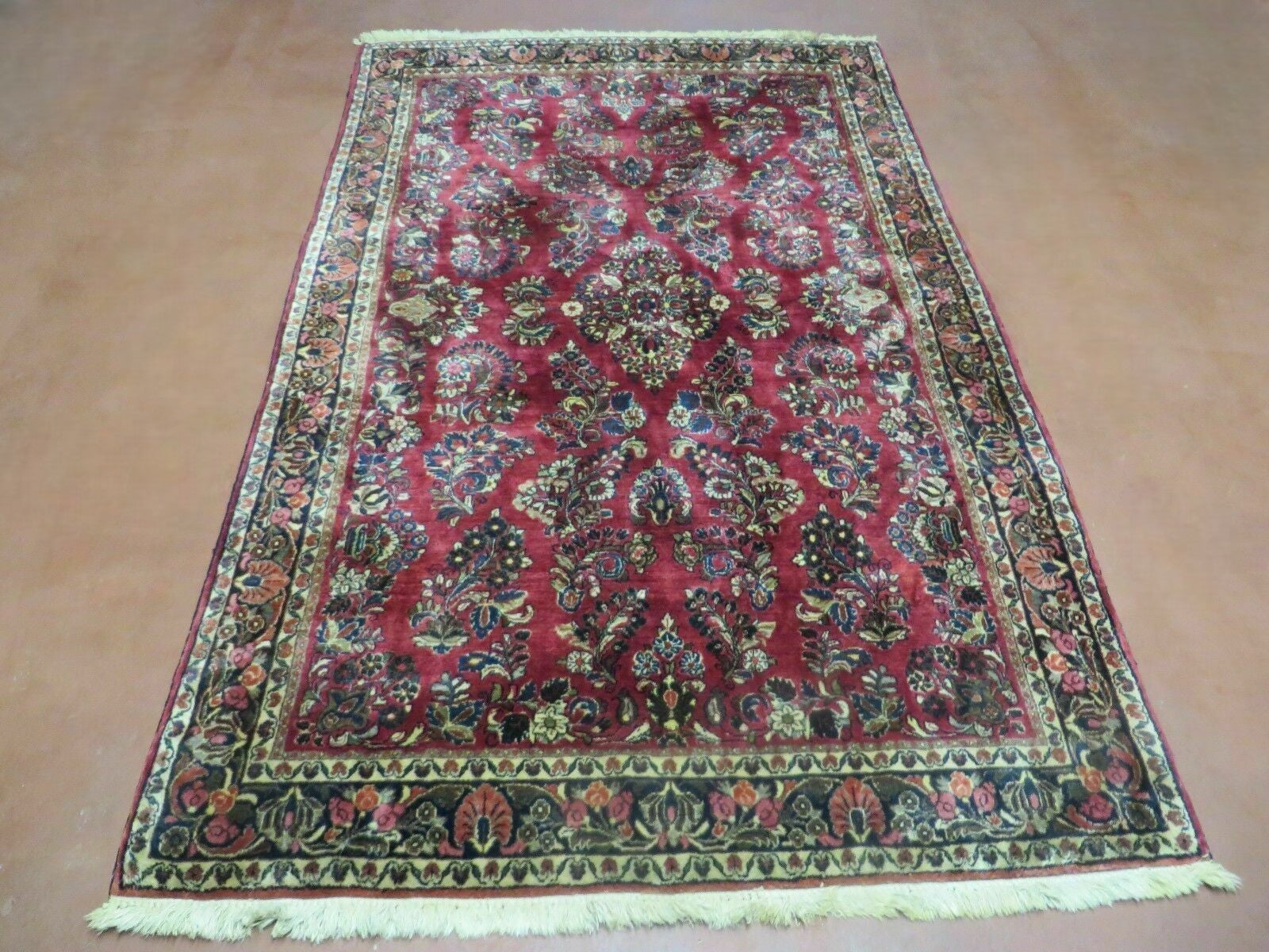 Antique Persian Sarouk Rug 4x7, Red, Floral