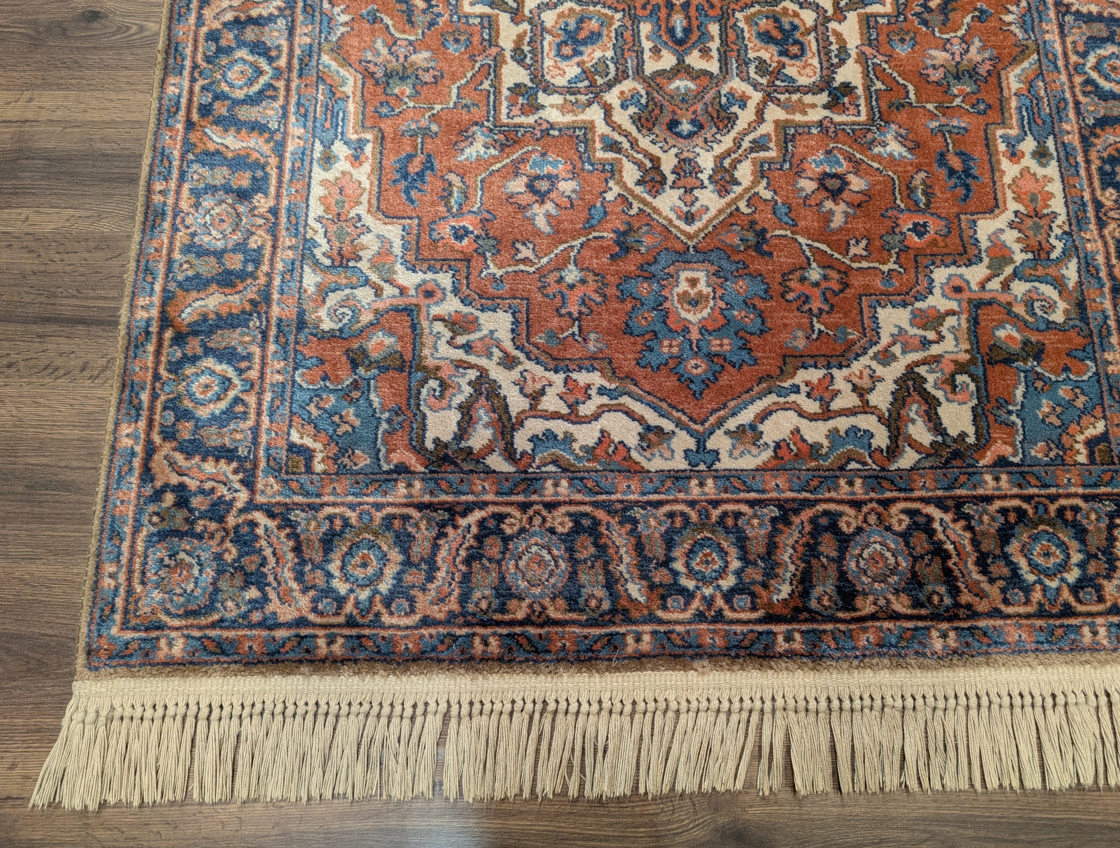 Persian Kashan Rug 4x7, Red and Navy Blue