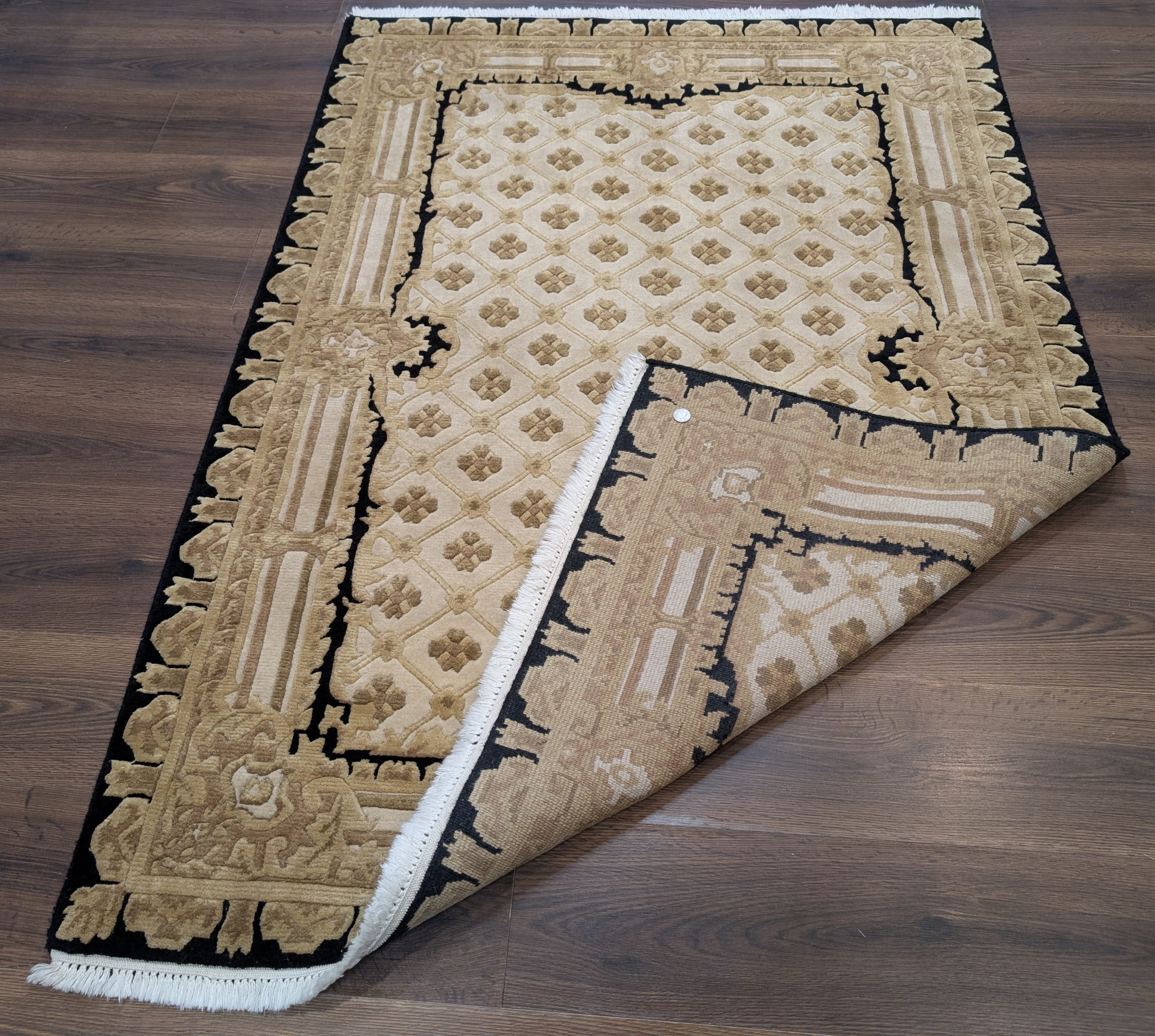 Tibetan Rug 4x6, Beige, Wool, Hand Knotted, Thick Pile