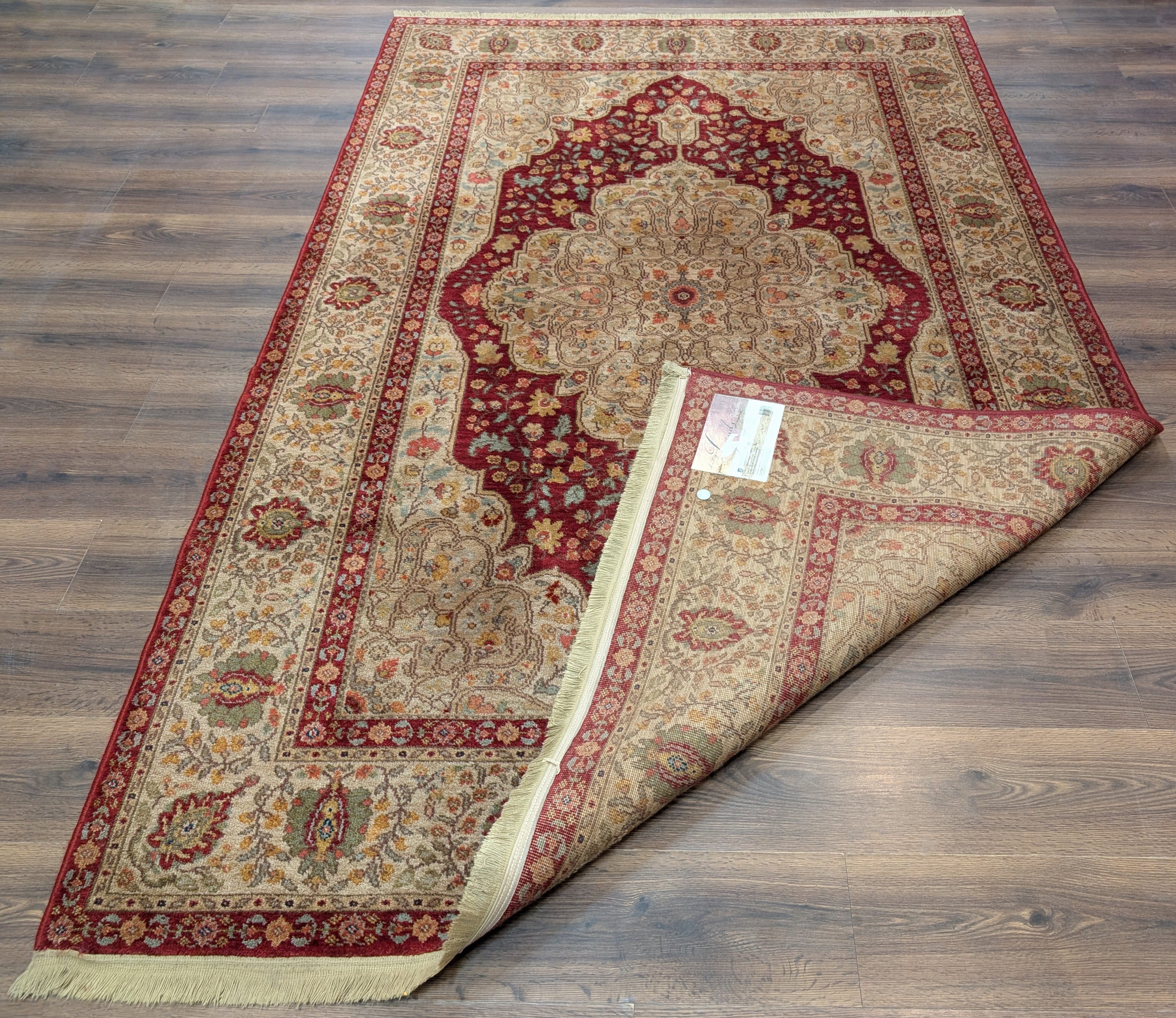 Maroon Sino Persian Rug 6x9, Fine 210 KPSI, Allover Pattern, Wool & Silk