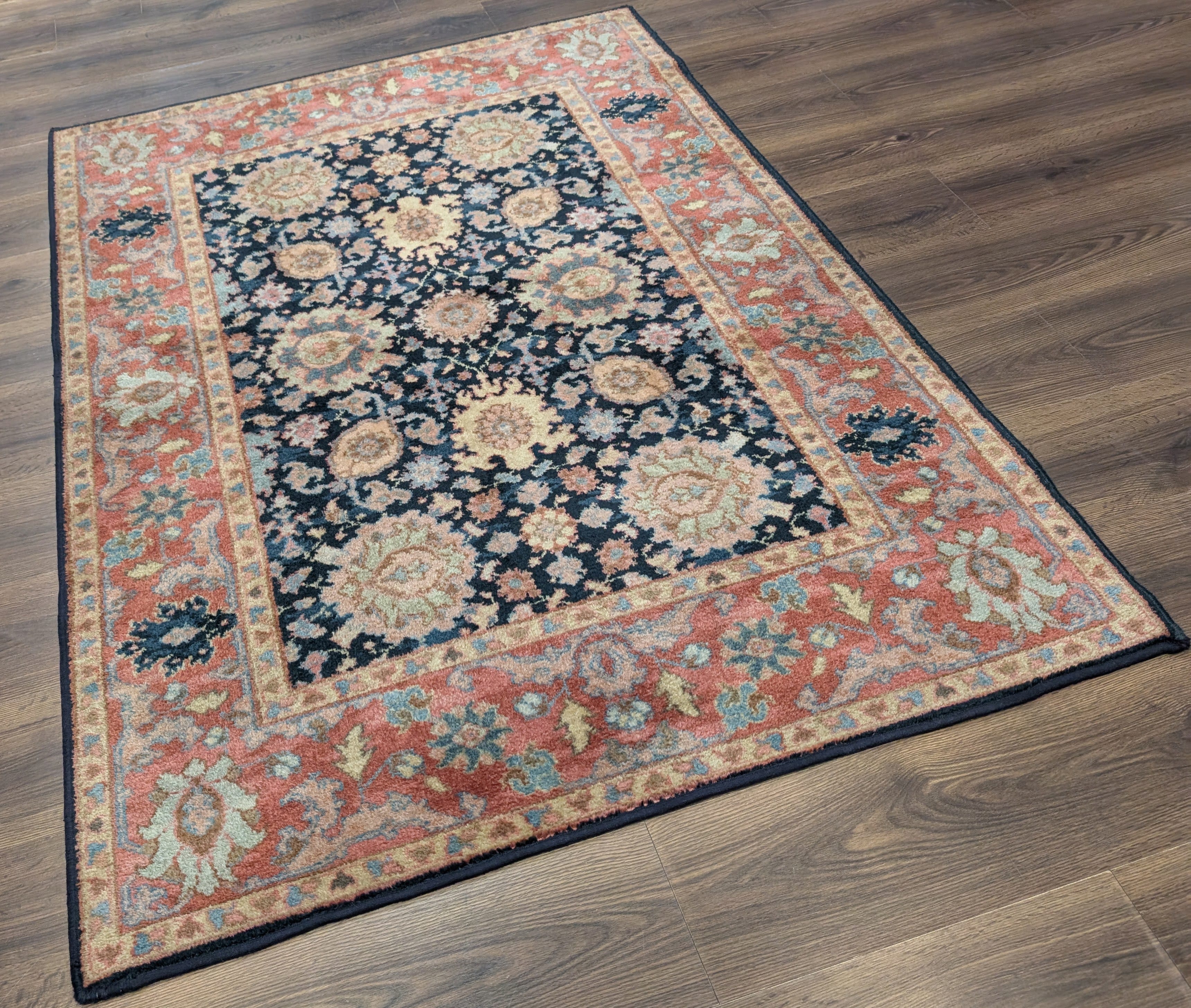 Navy Blue Indo Persian Sarouk Rug 5x7, Allover Pattern
