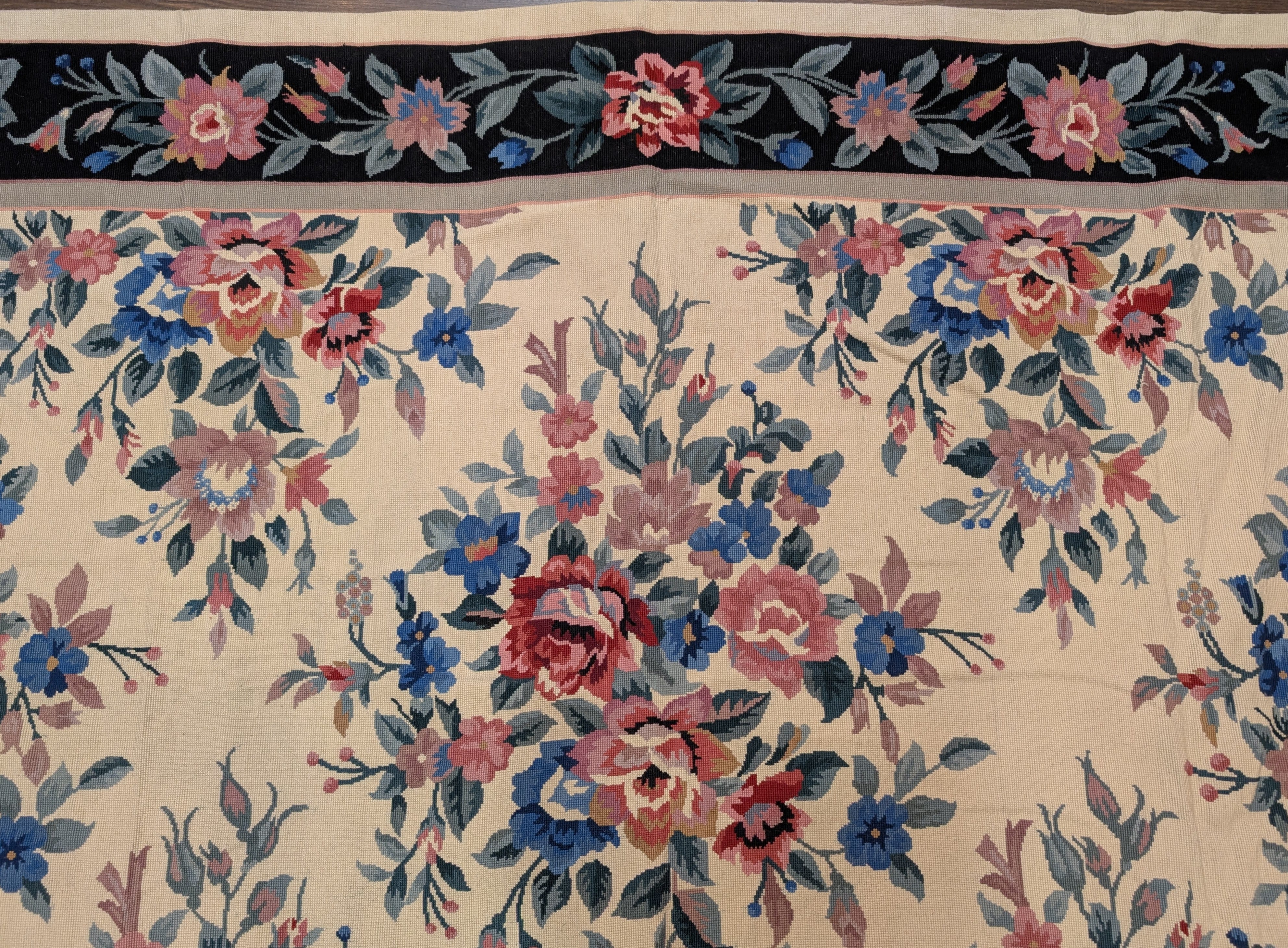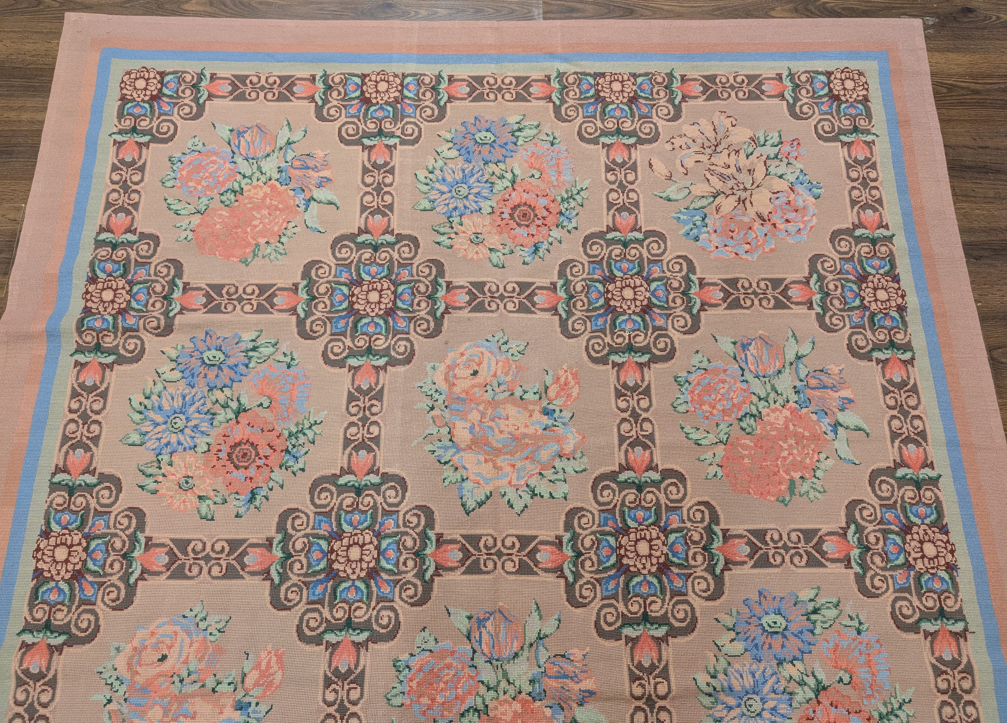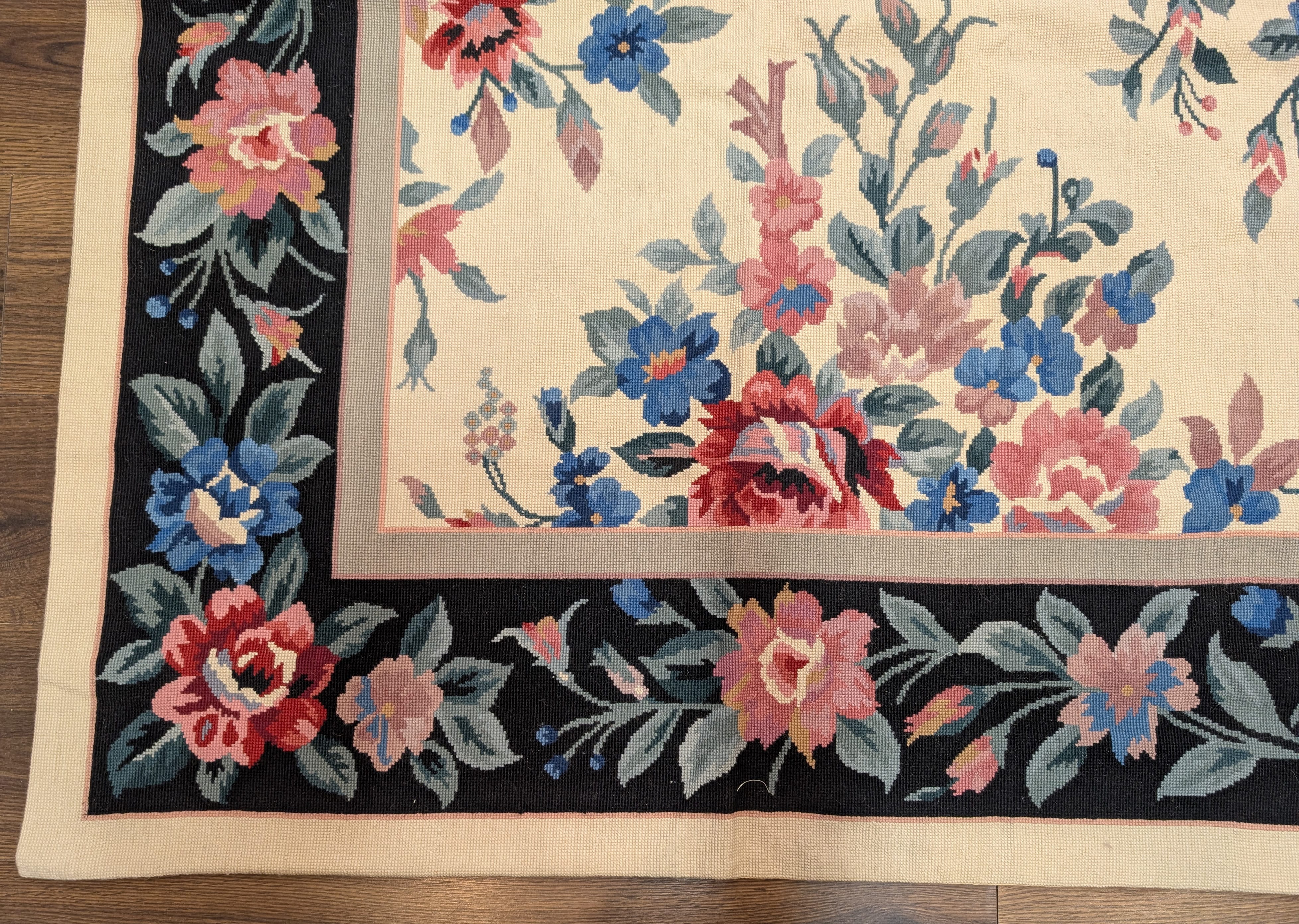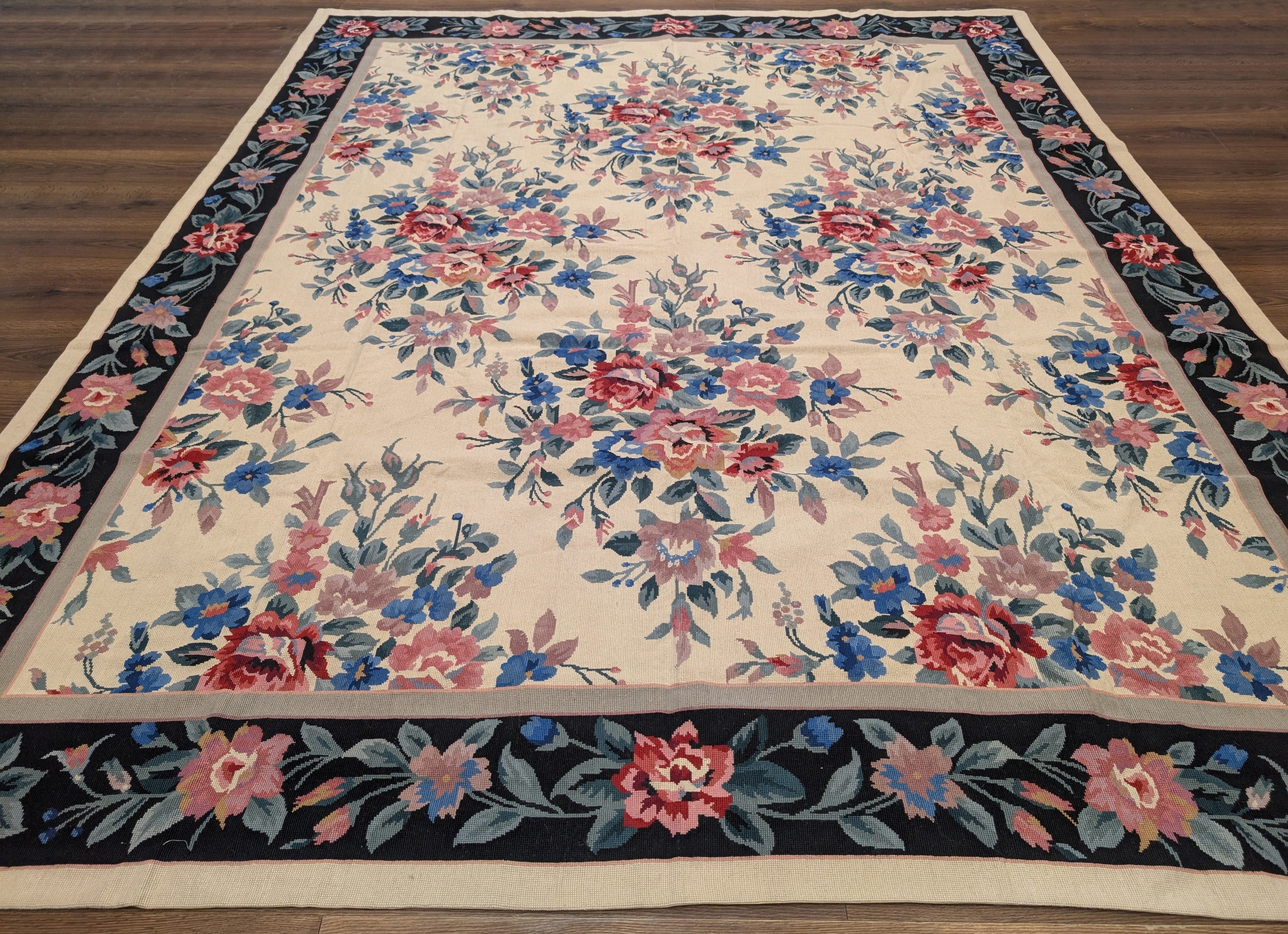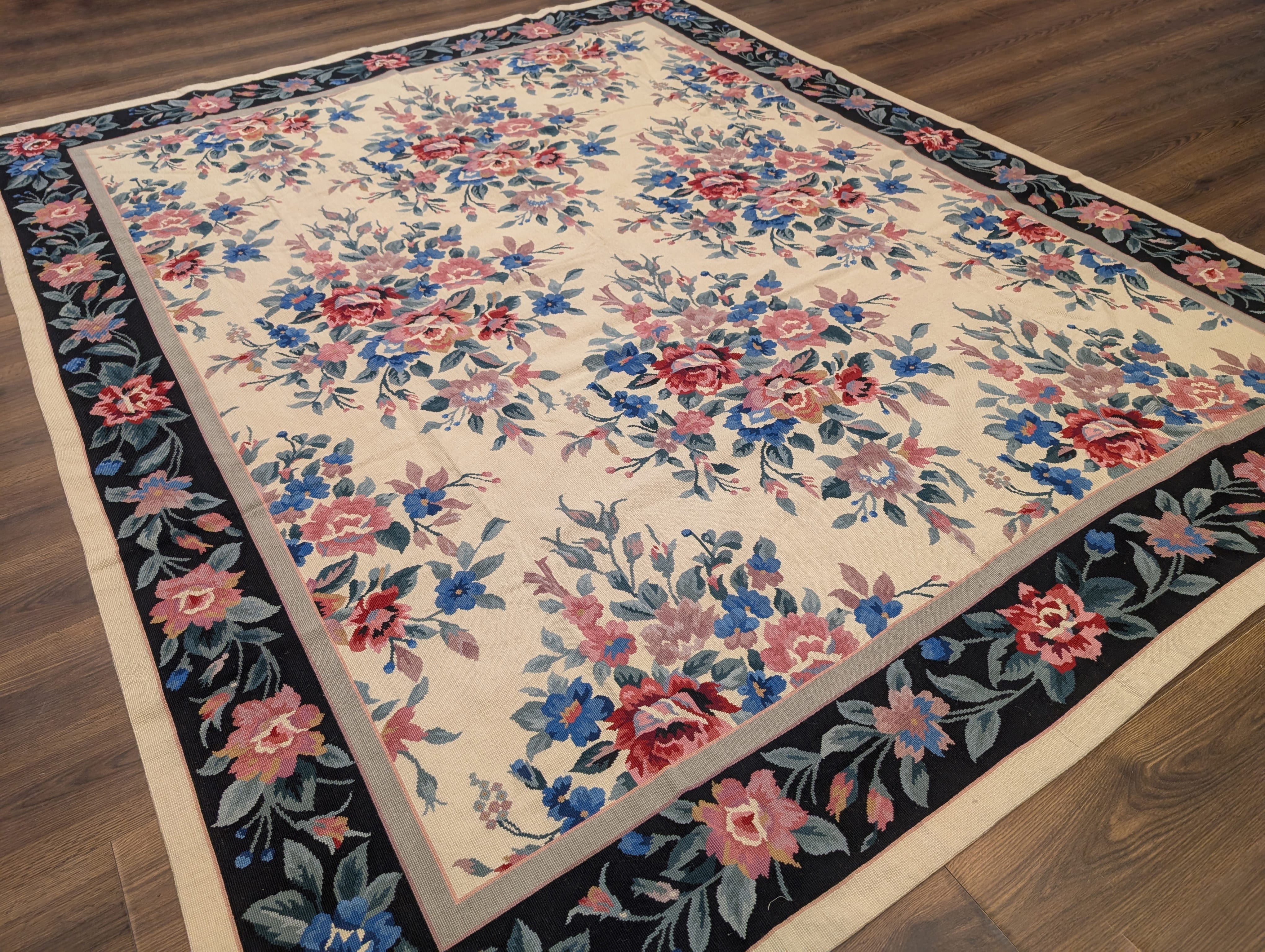 Needlepoint Rug 10x14, English European Floral Panel Design