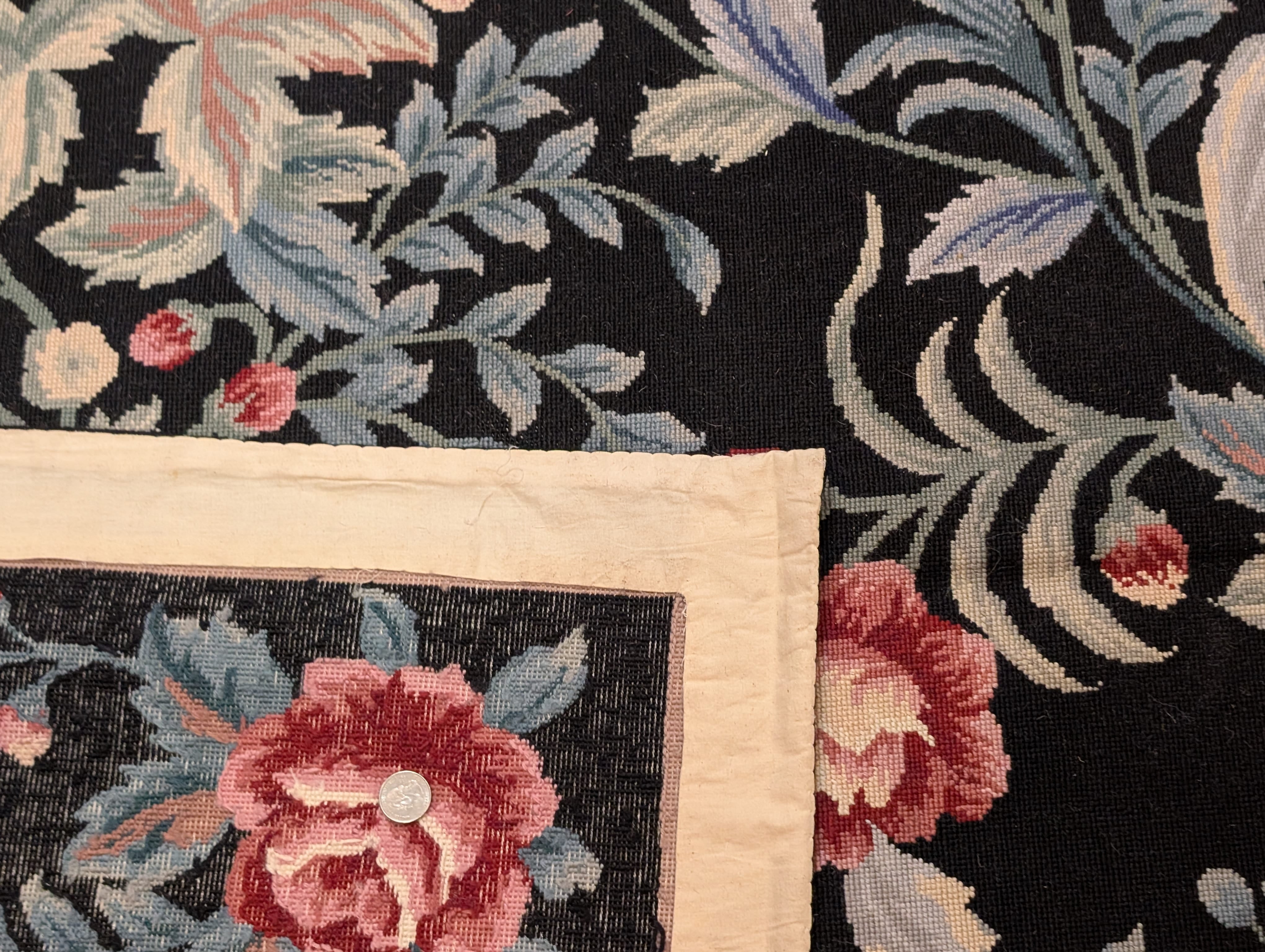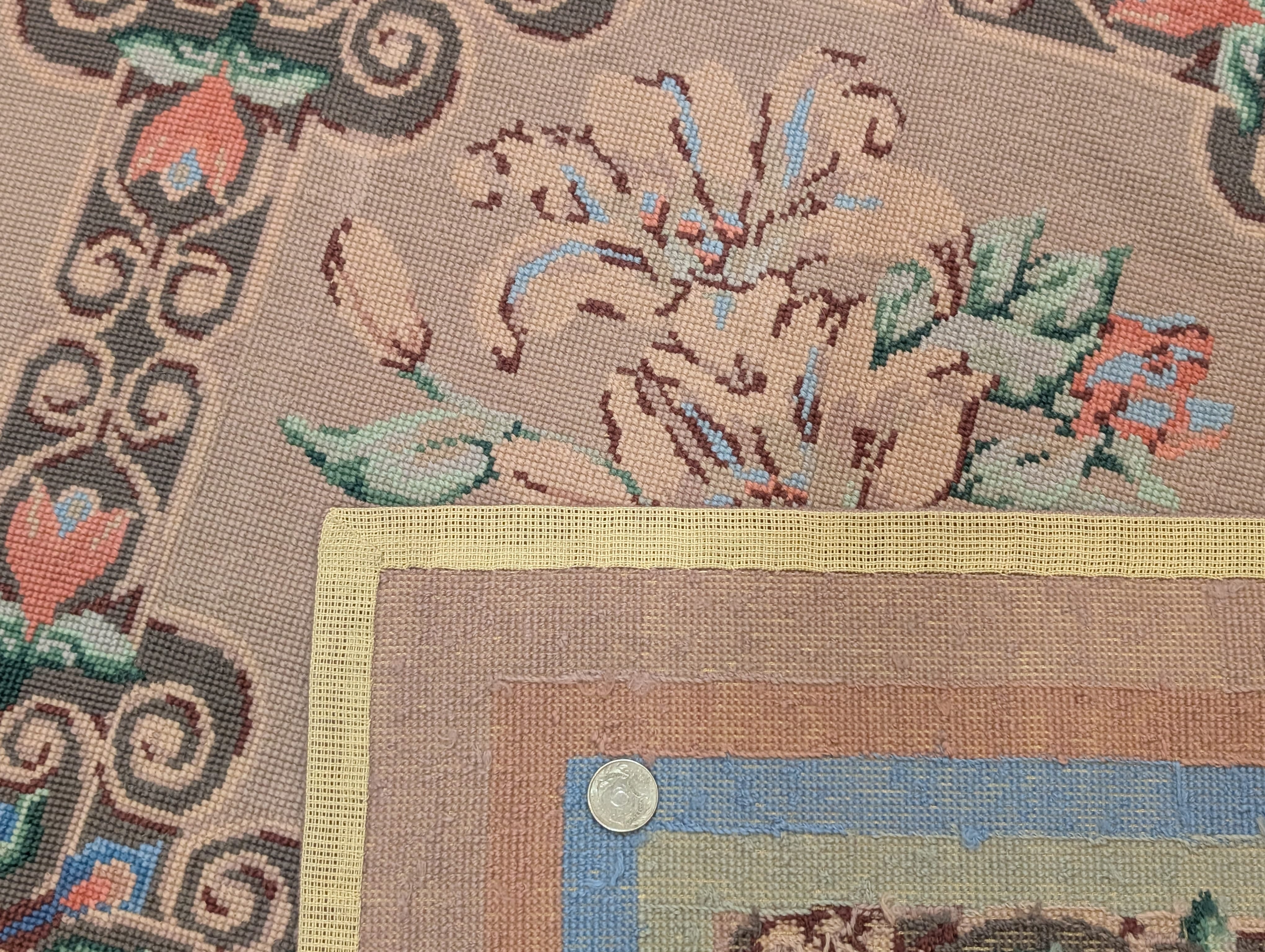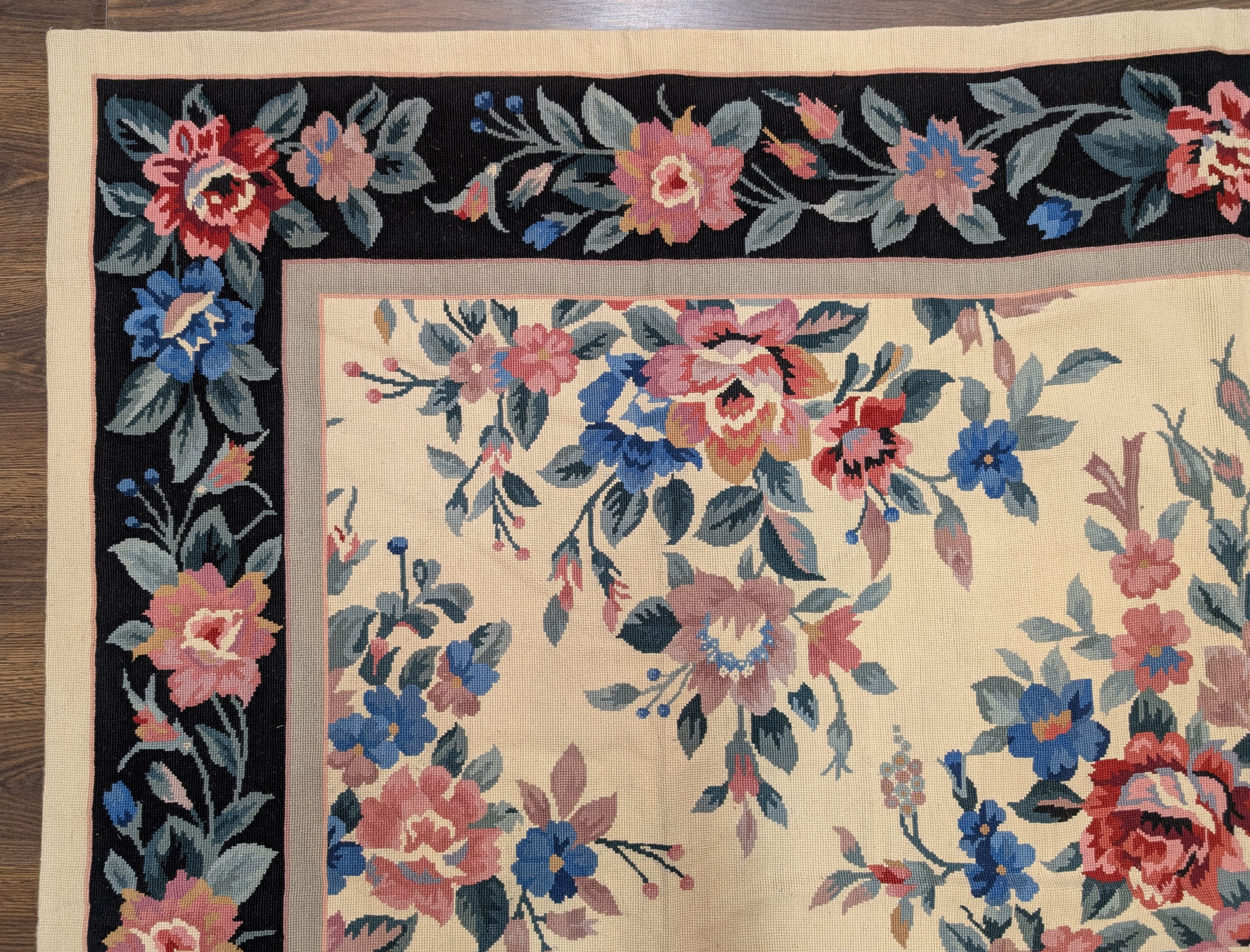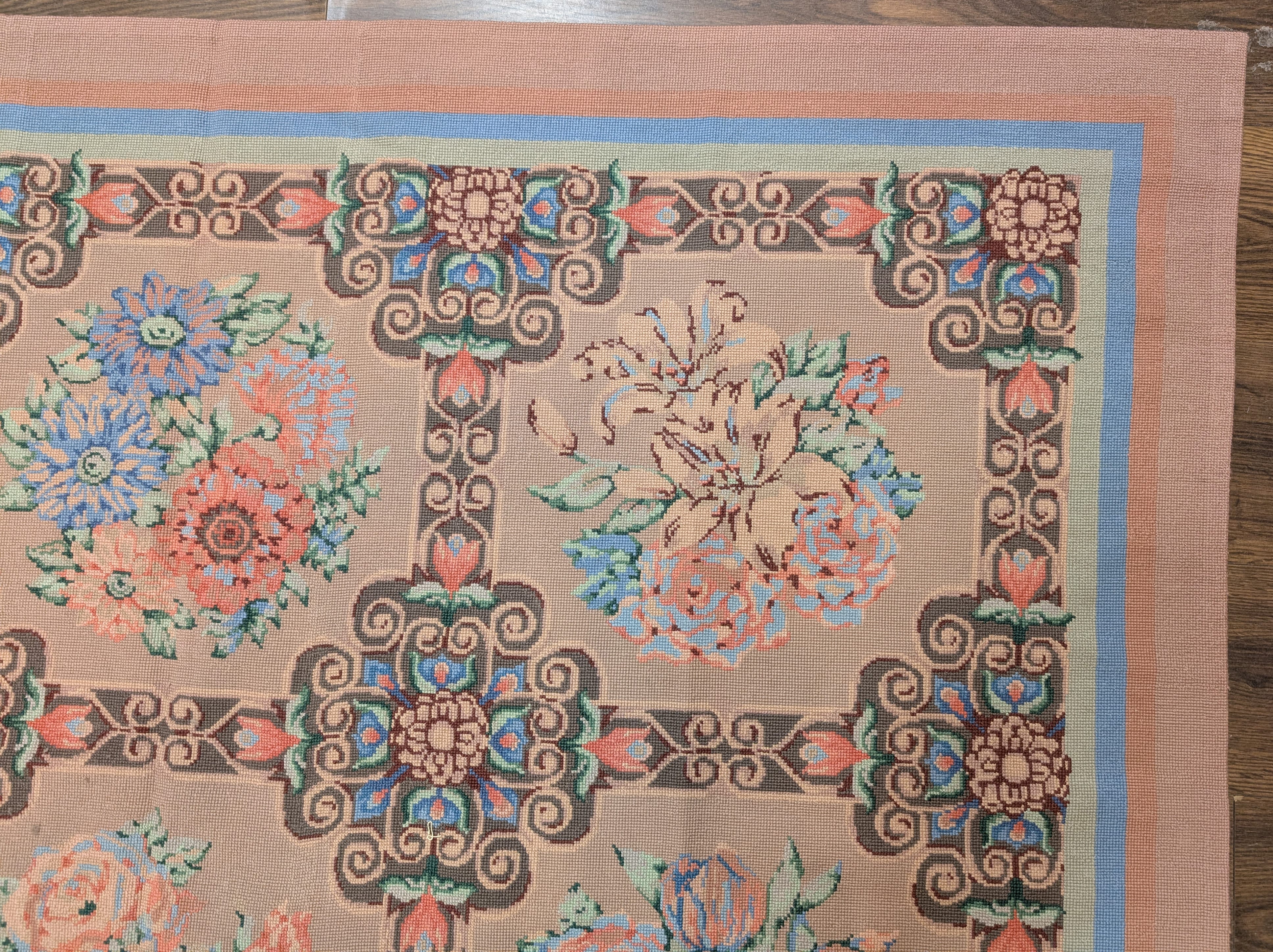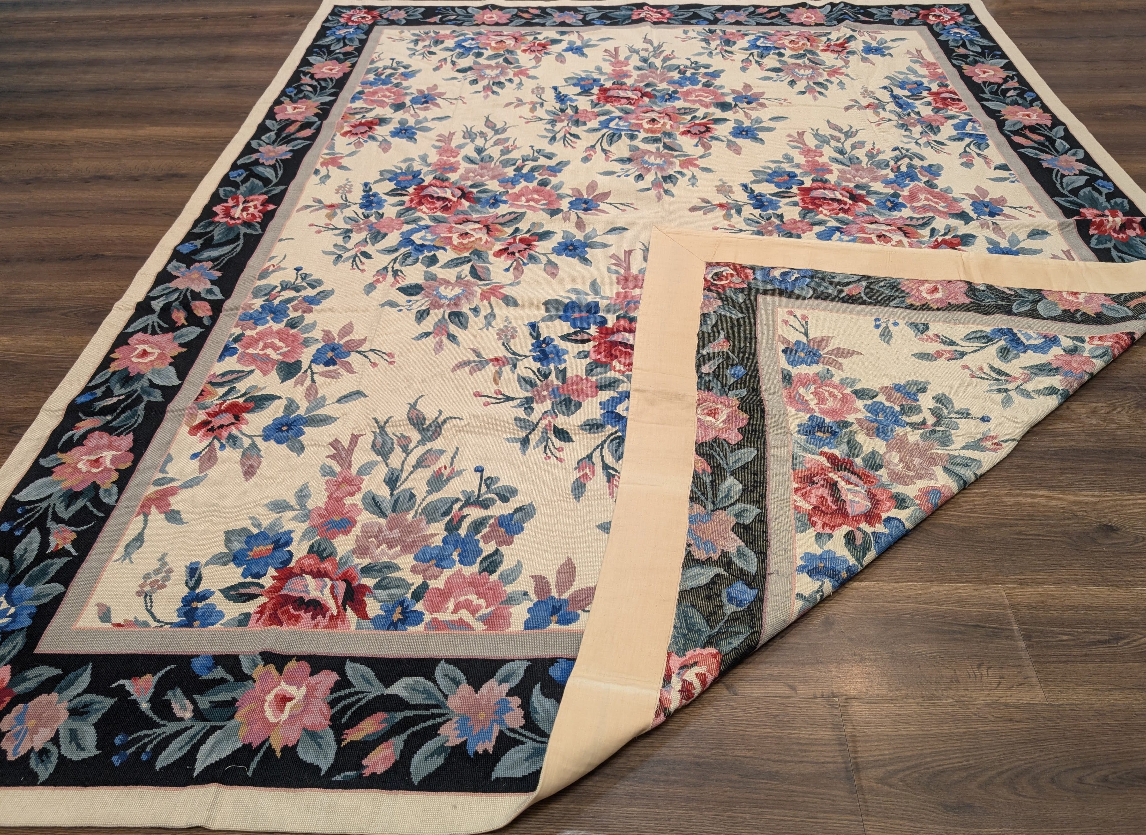 Needlepoint Rug 10x14, English European Floral Panel Design