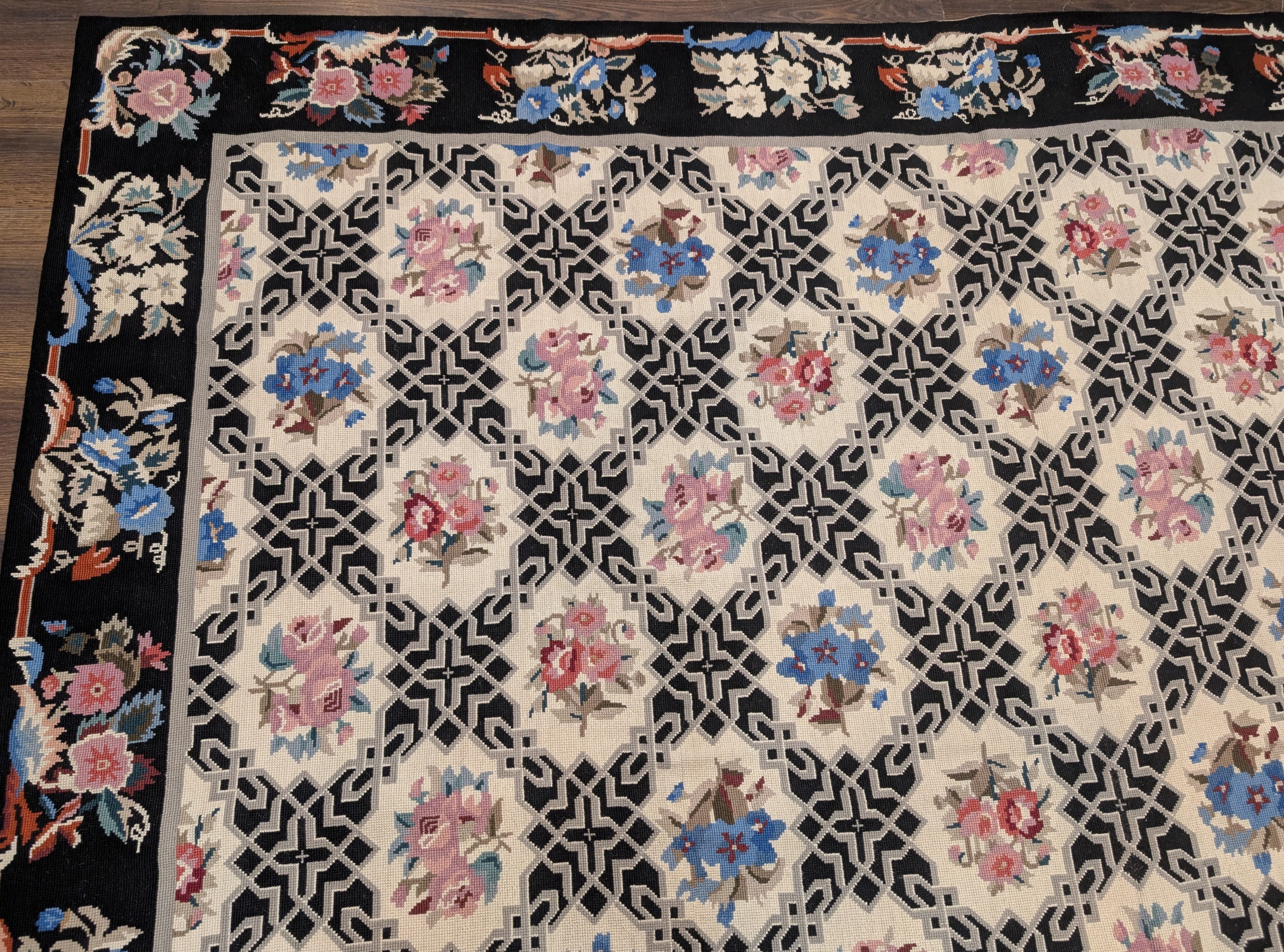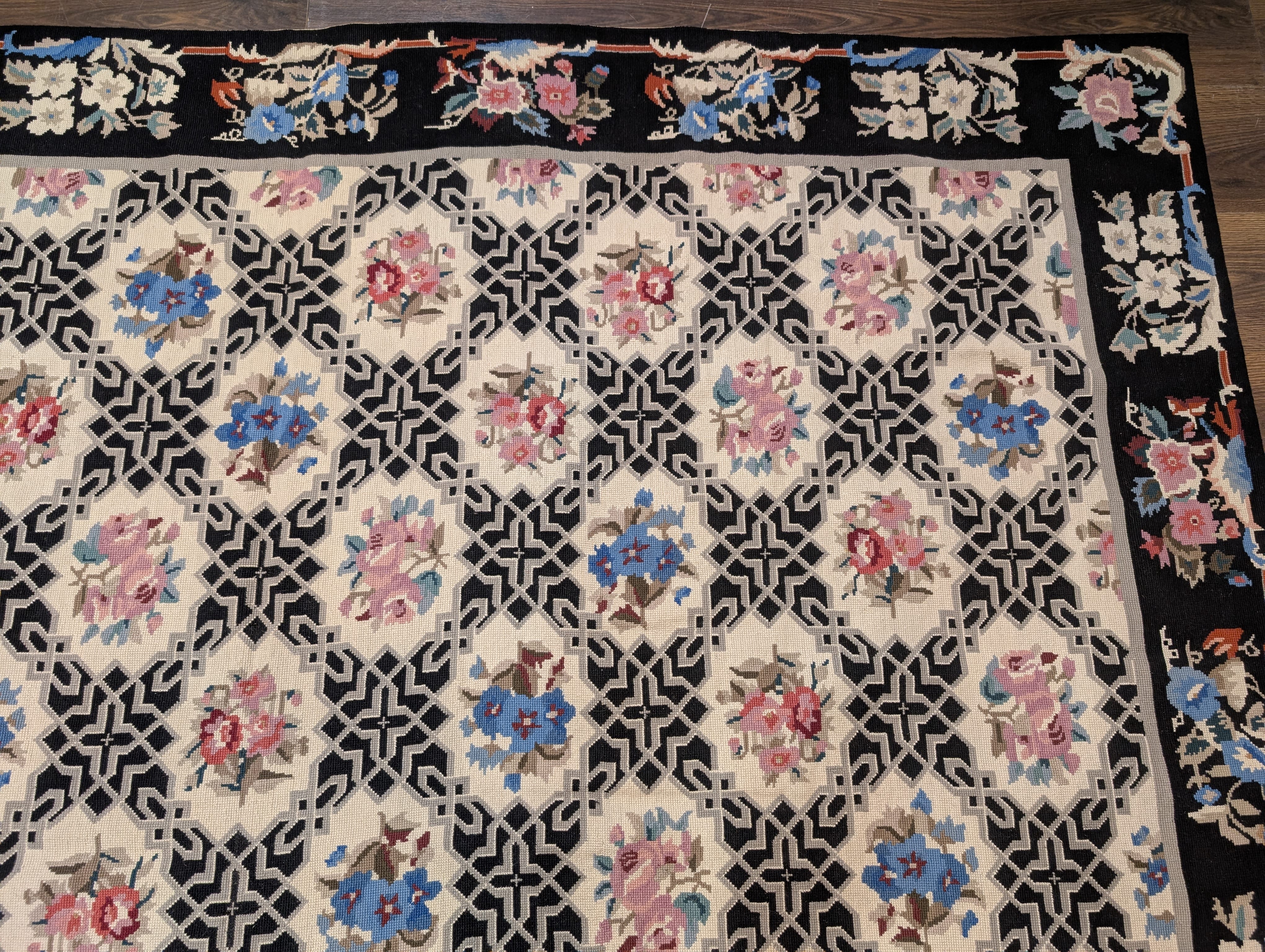 Needlepoint Rug 8x10, Allover Floral Lattice Design, New
