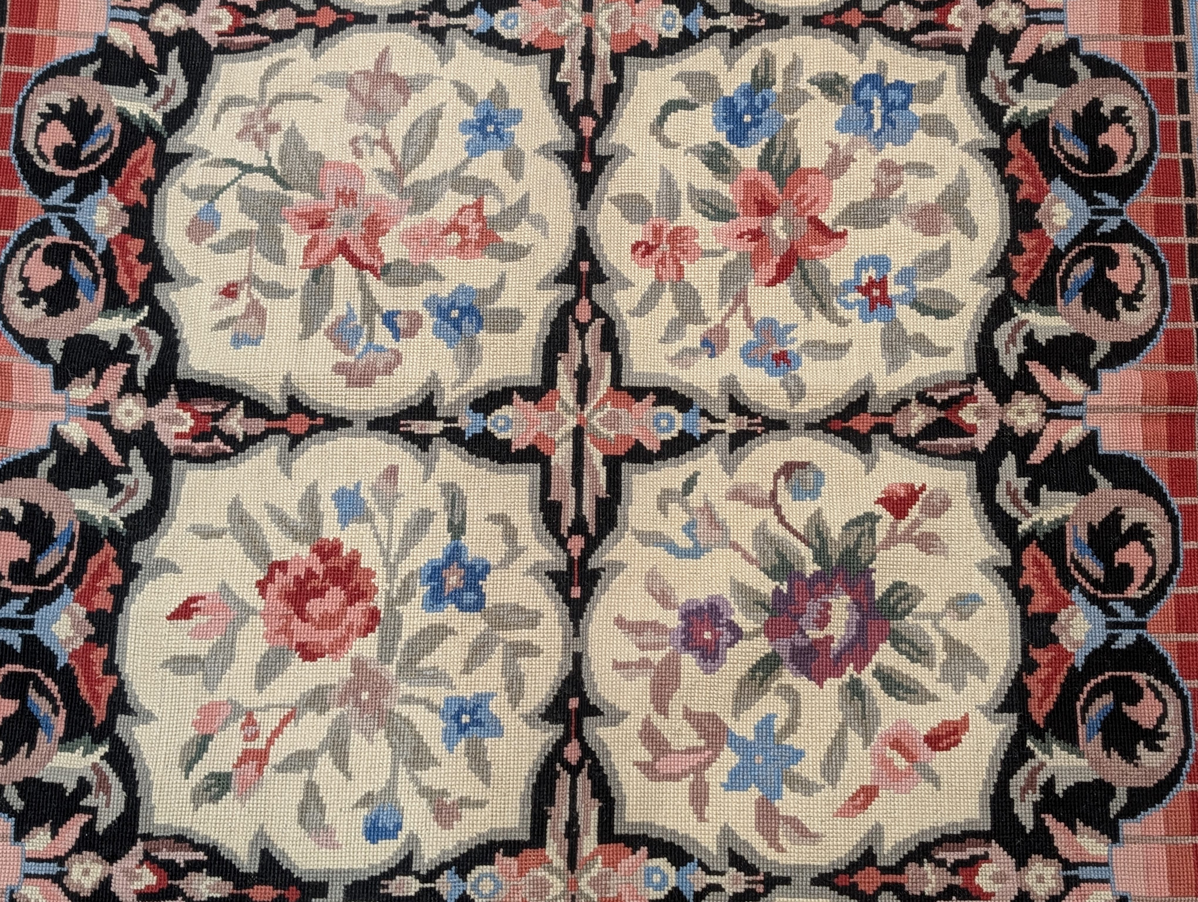 Needlepoint Rug 9x11, Floral Panel Design, Handmade