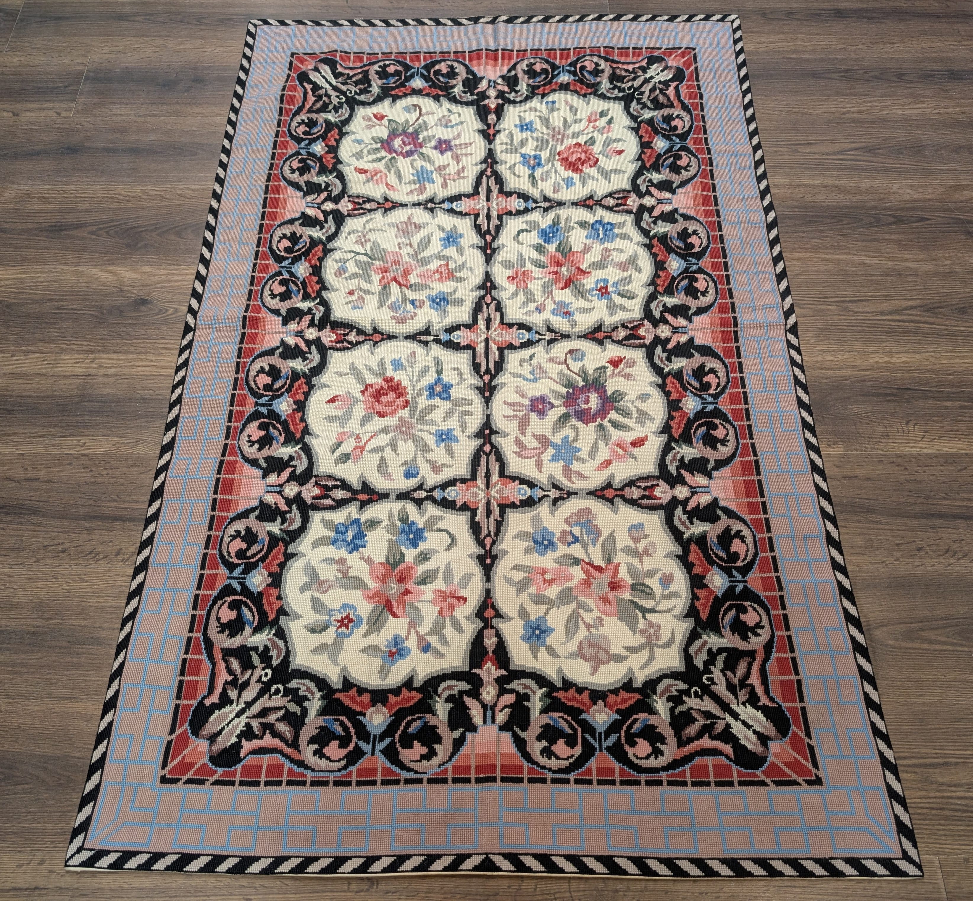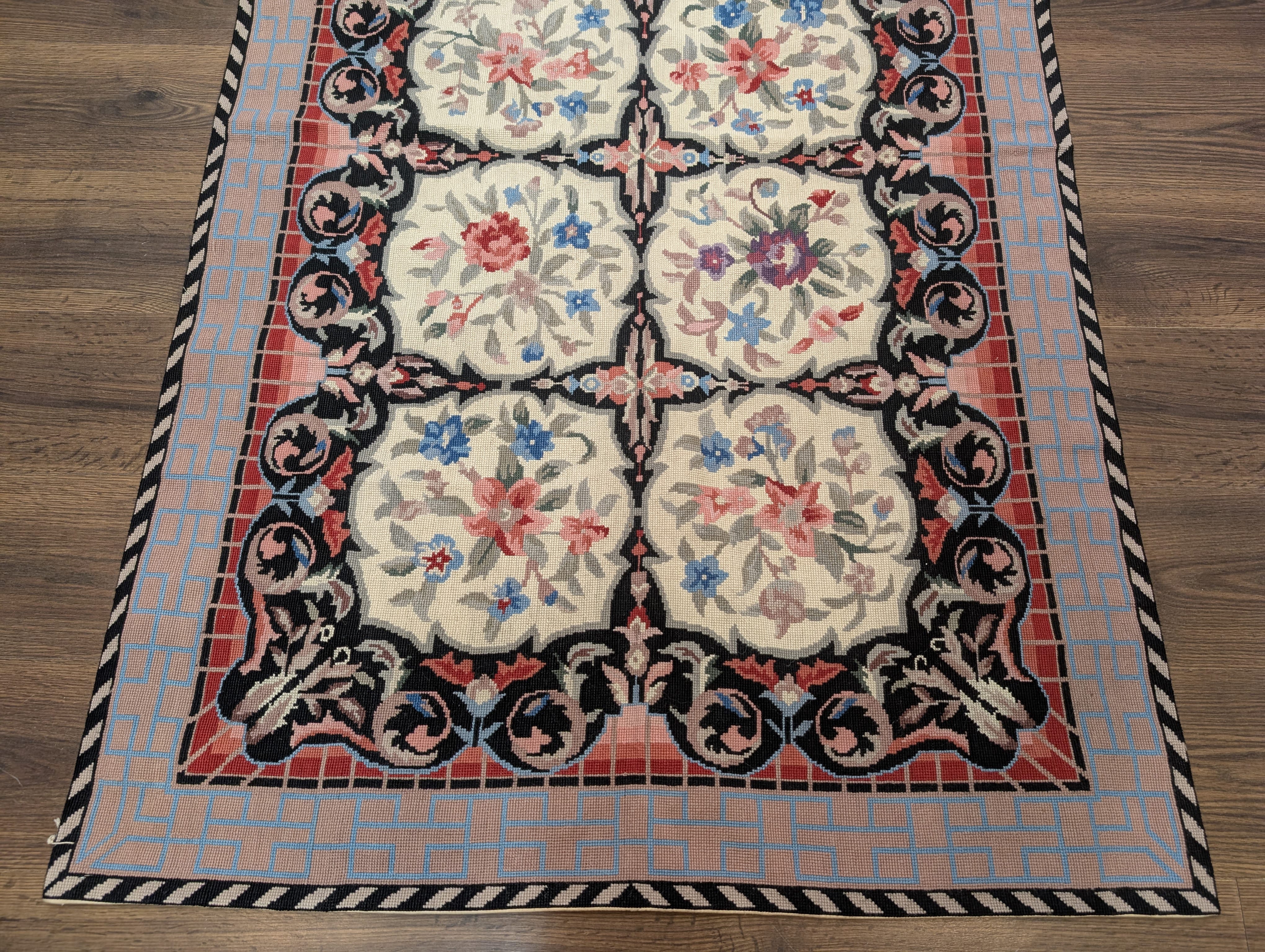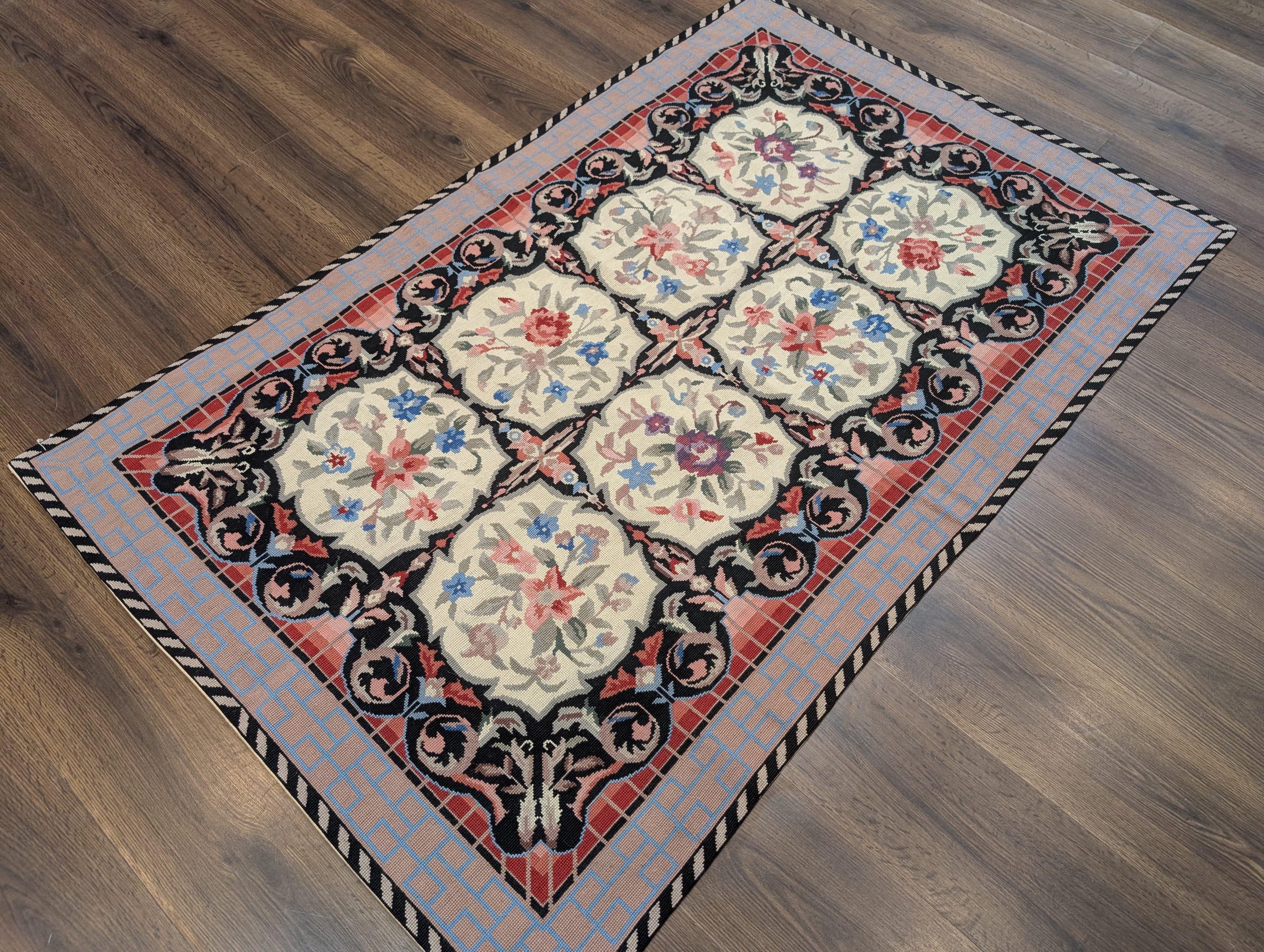 Needlepoint Rug 5.7 x 8.6, Floral Panel Design