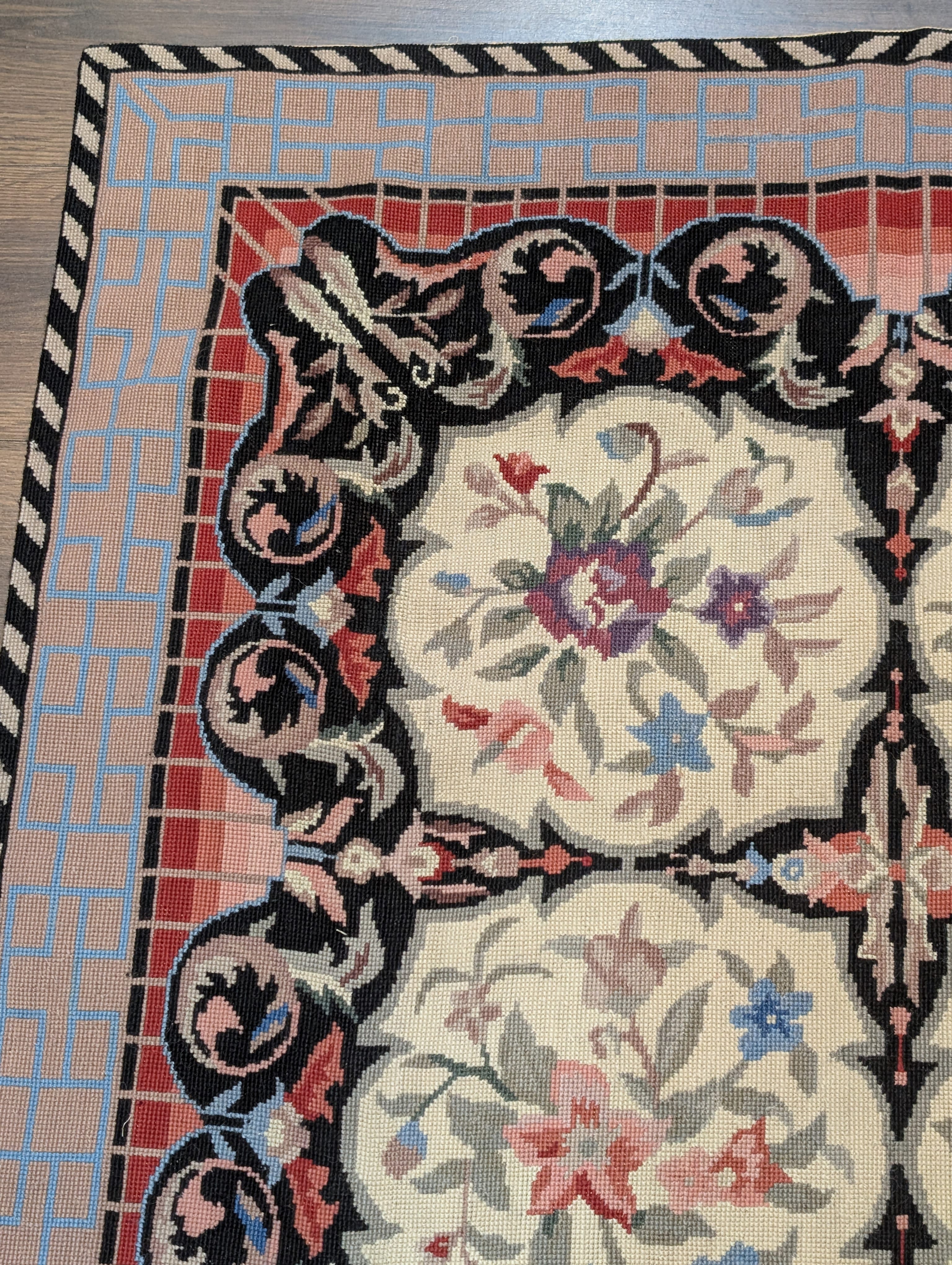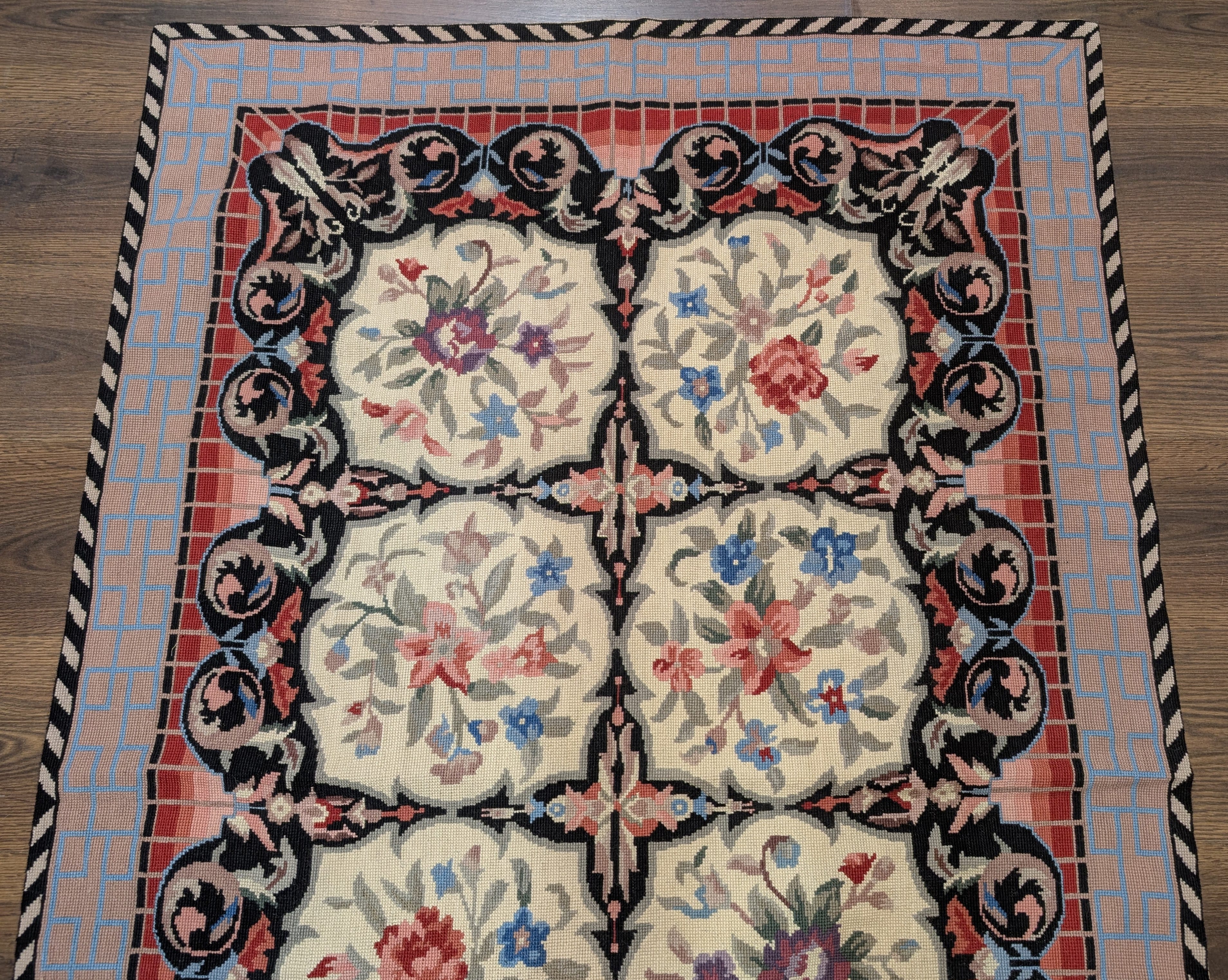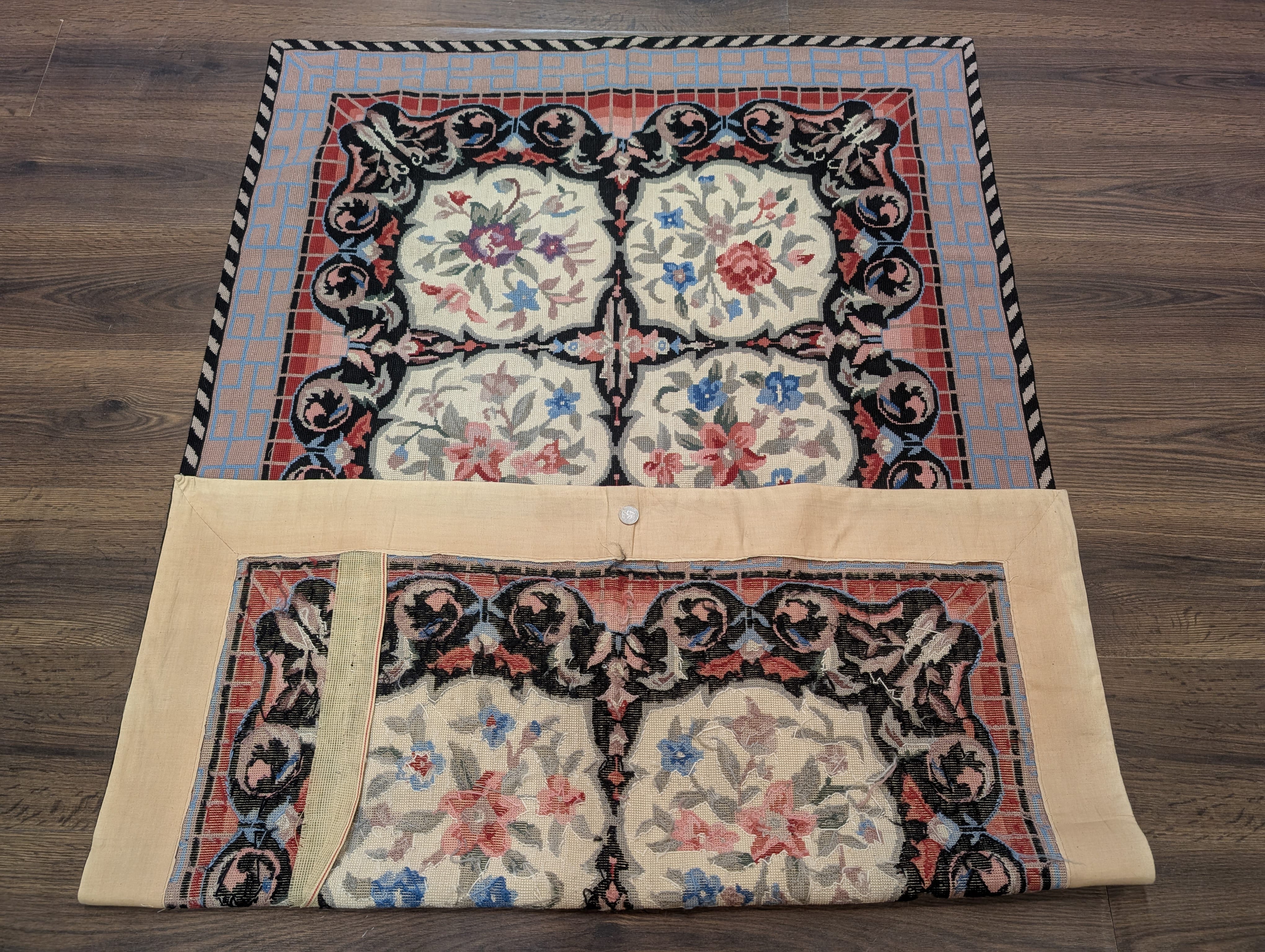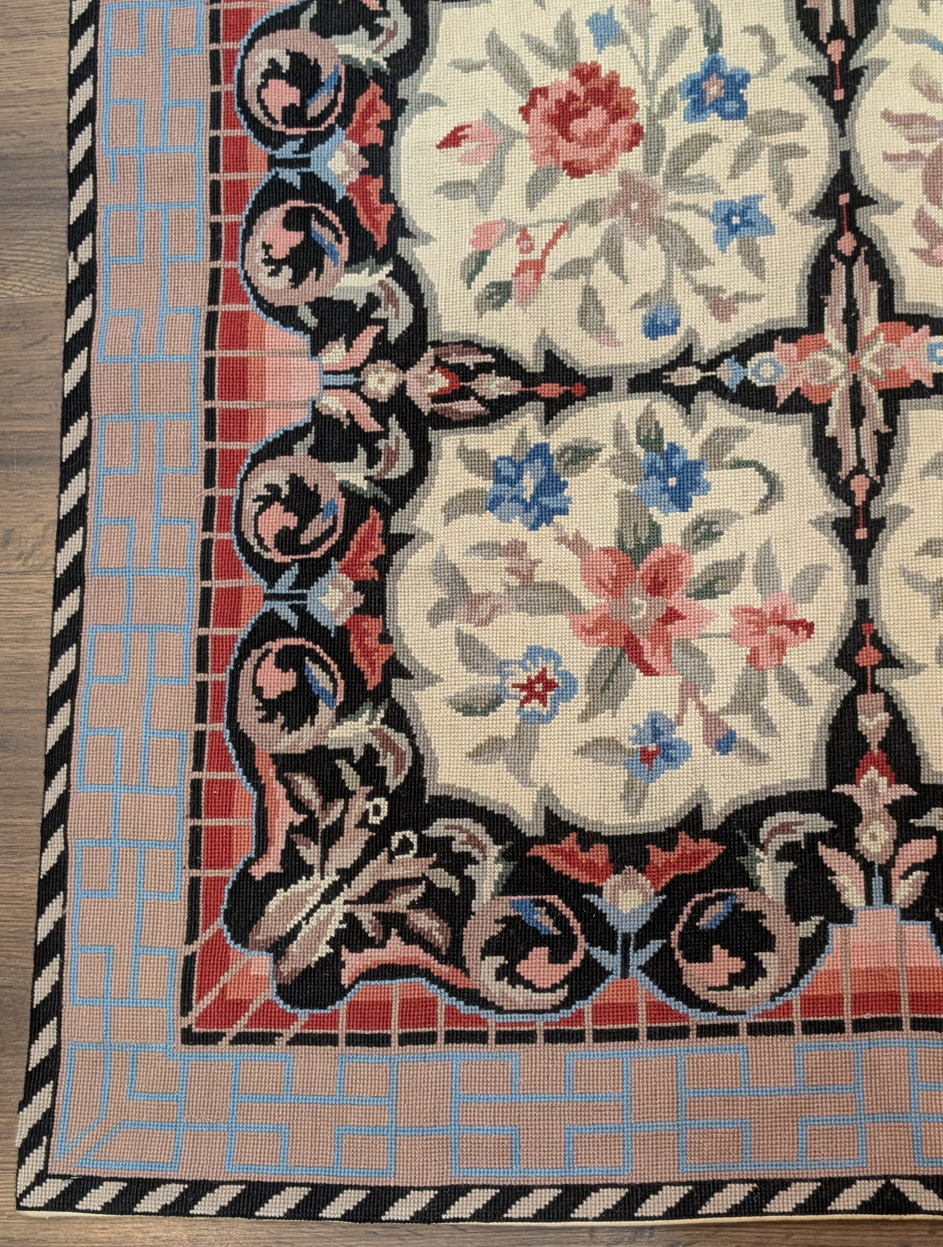 Needlepoint Rug 5.7 x 8.6, Floral Panel Design
