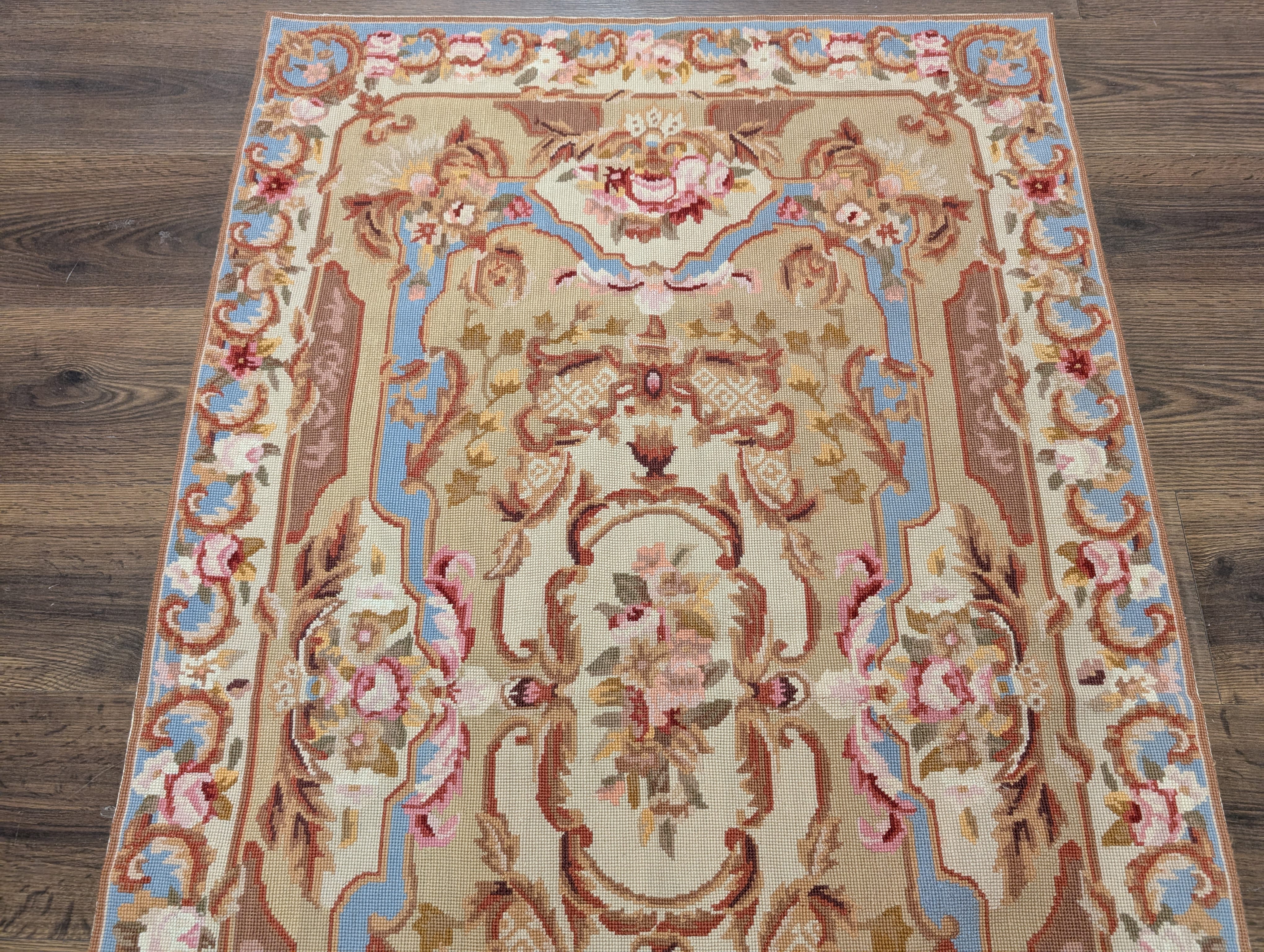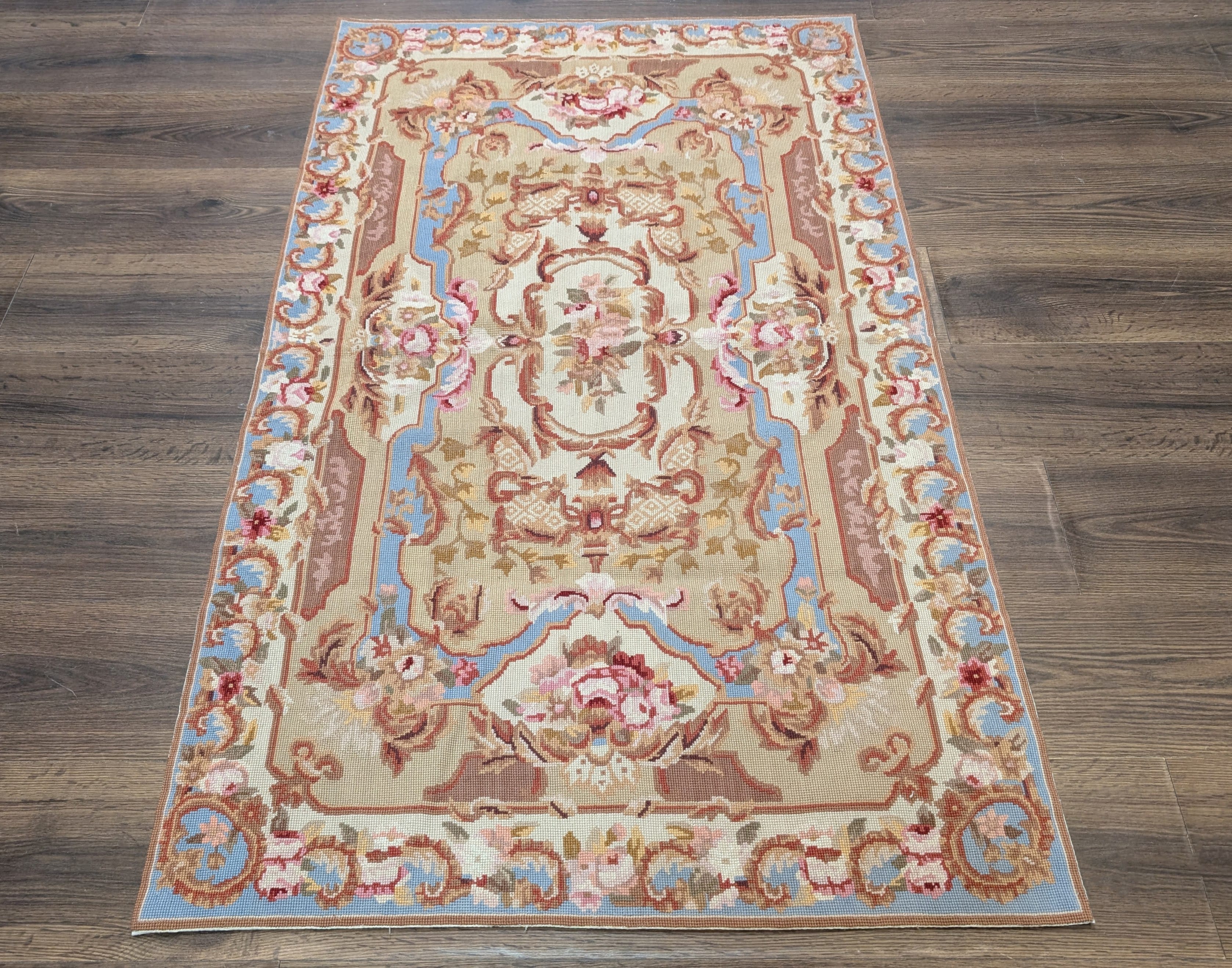 Aubusson Needlepoint Rug 6x9, Elegant European Design Carpet, New