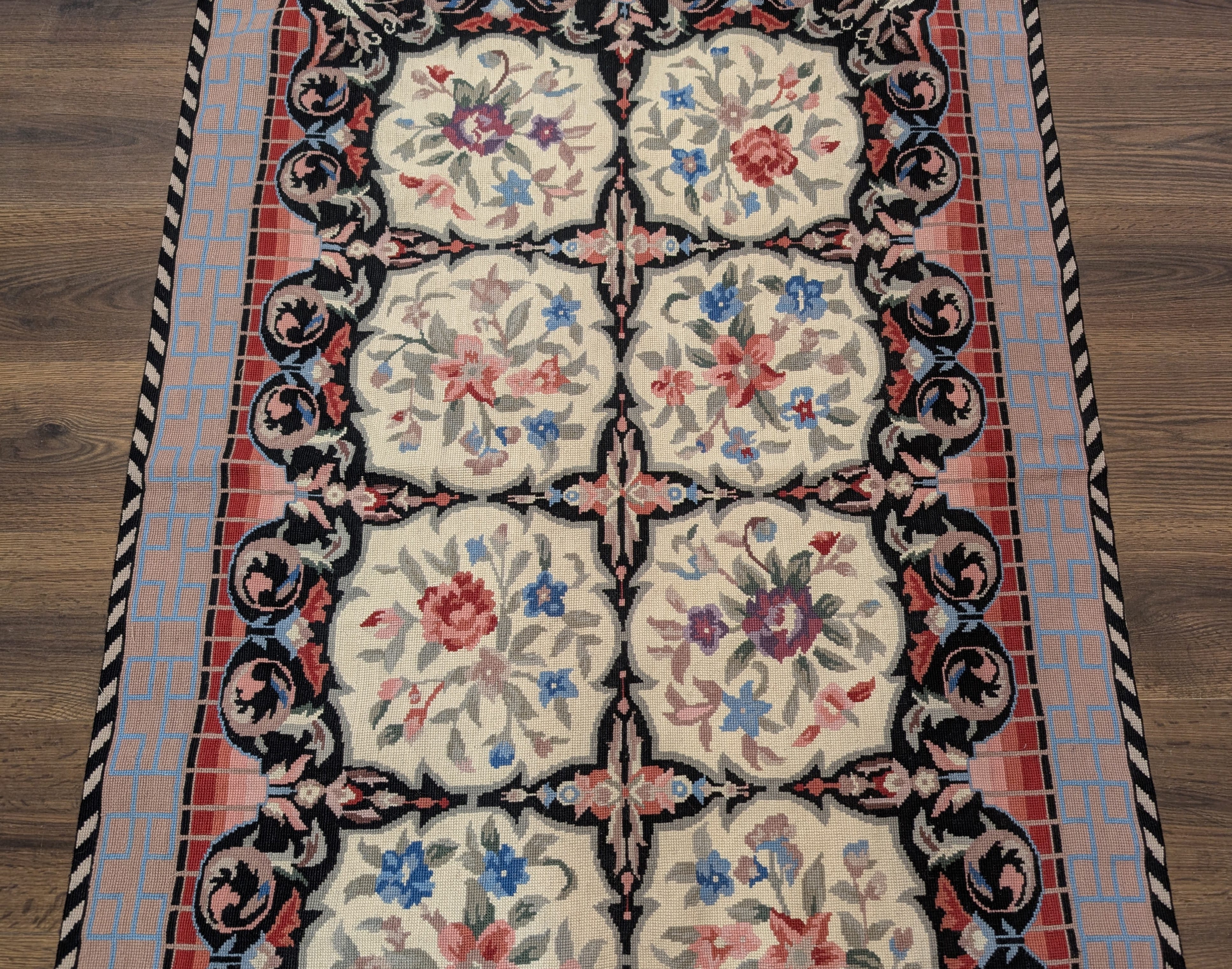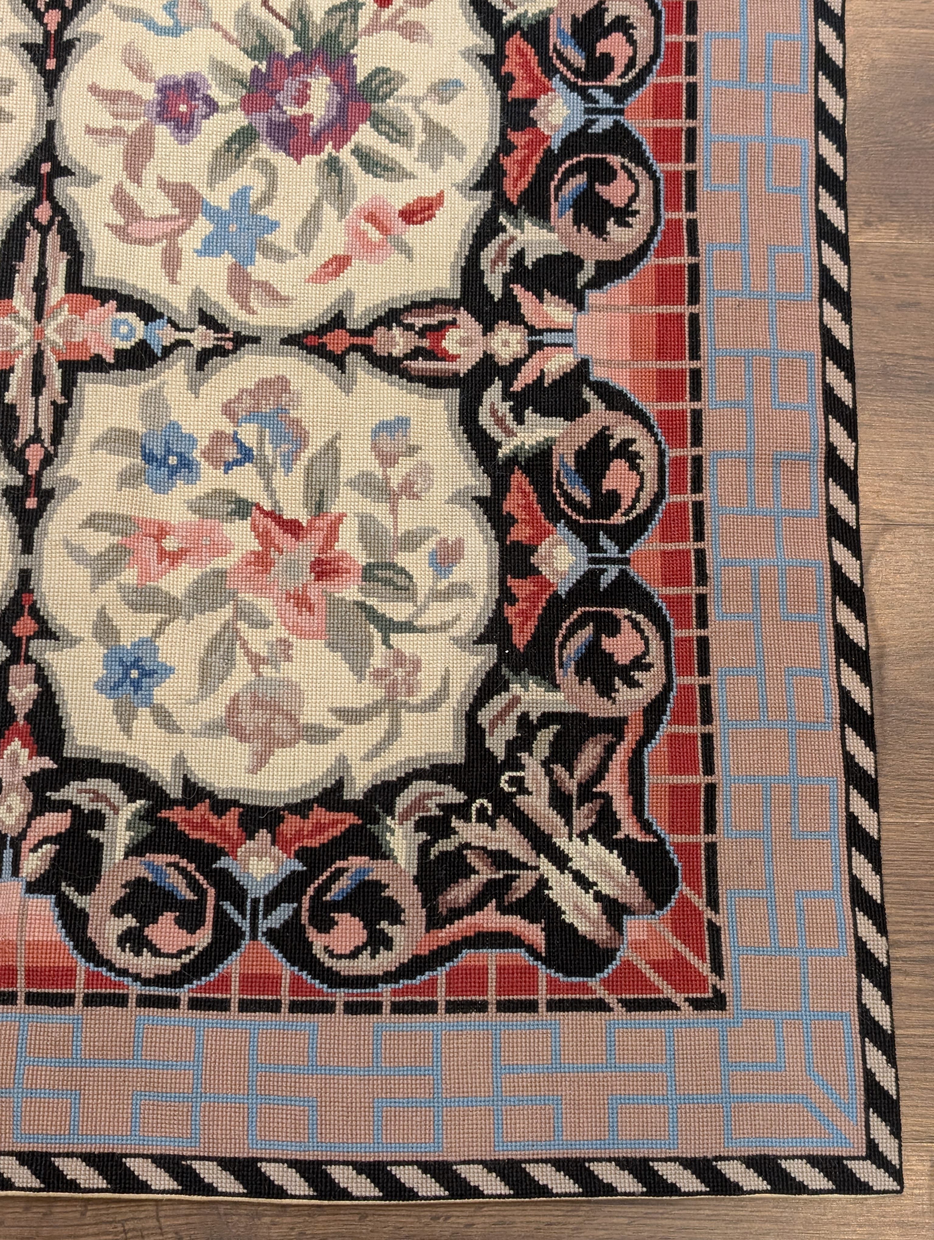 Needlepoint Rug 3x5, European Design, Wool, New