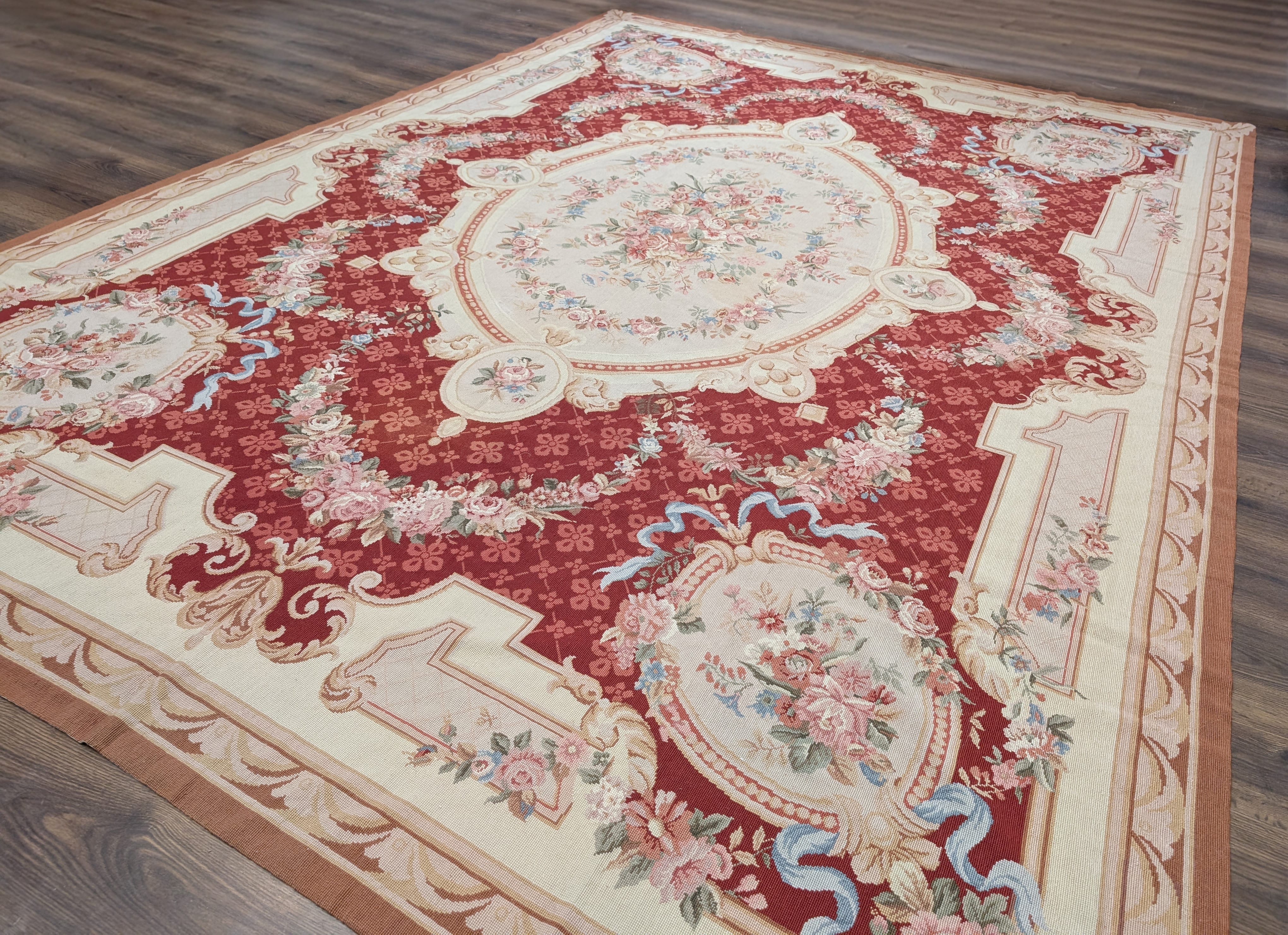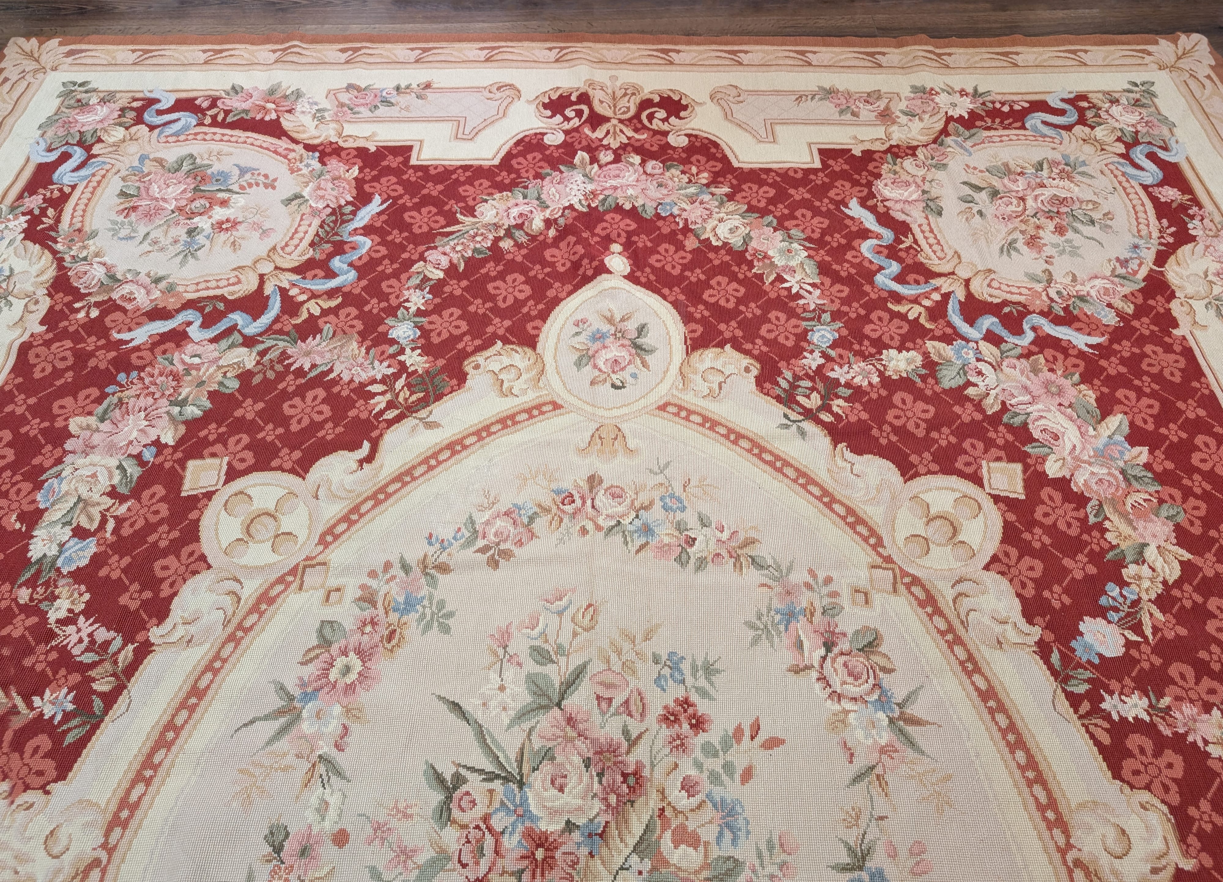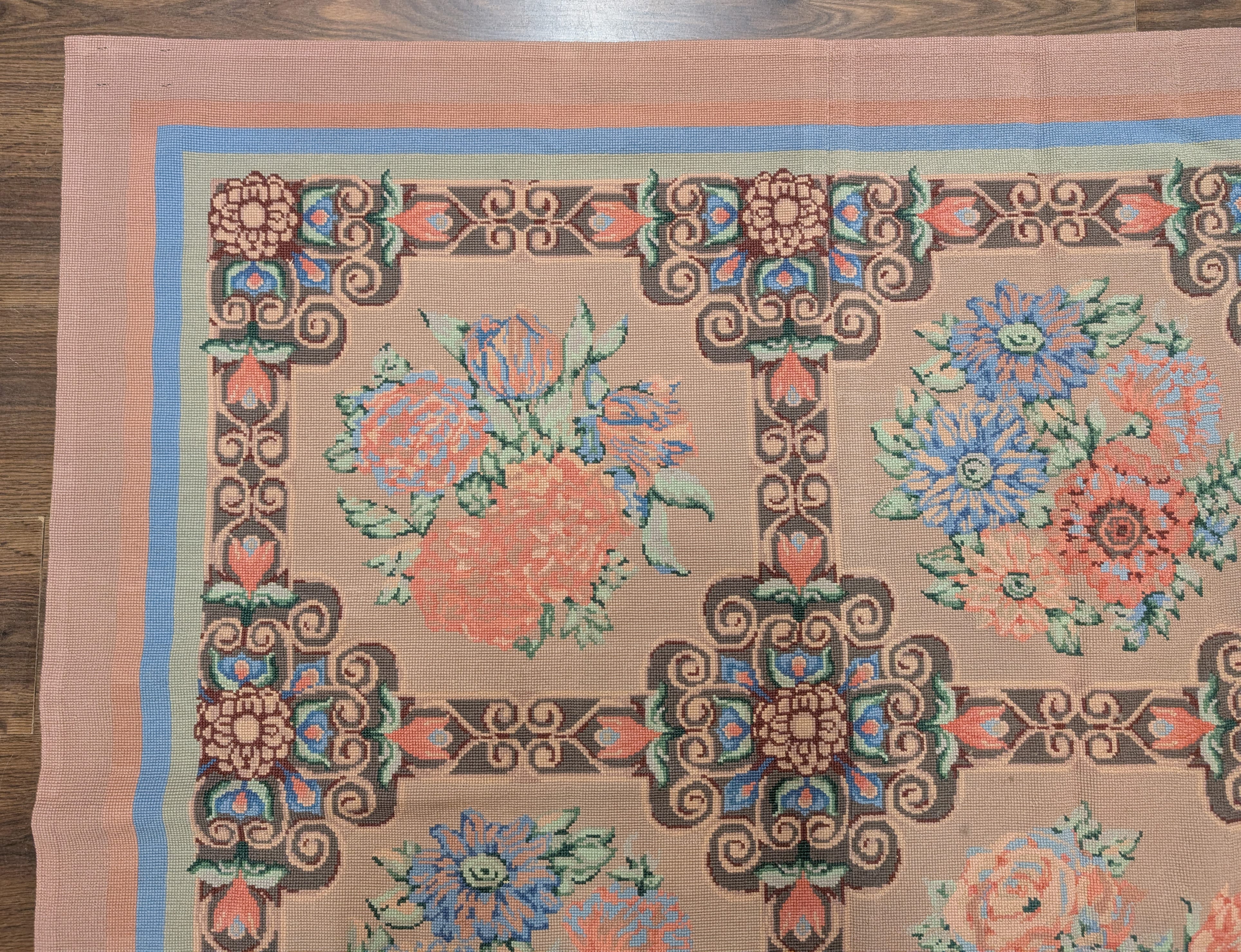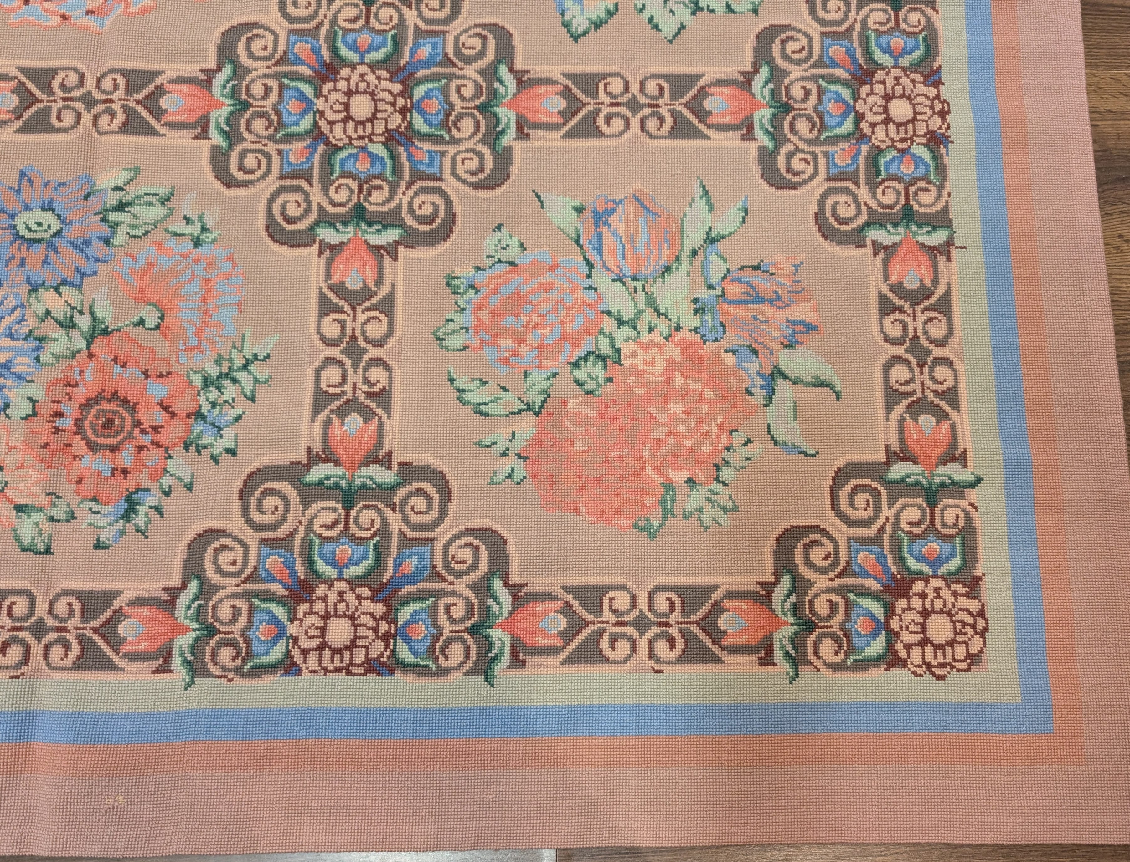 Needlepoint Rug 7x9, Handmade, Aubusson Design