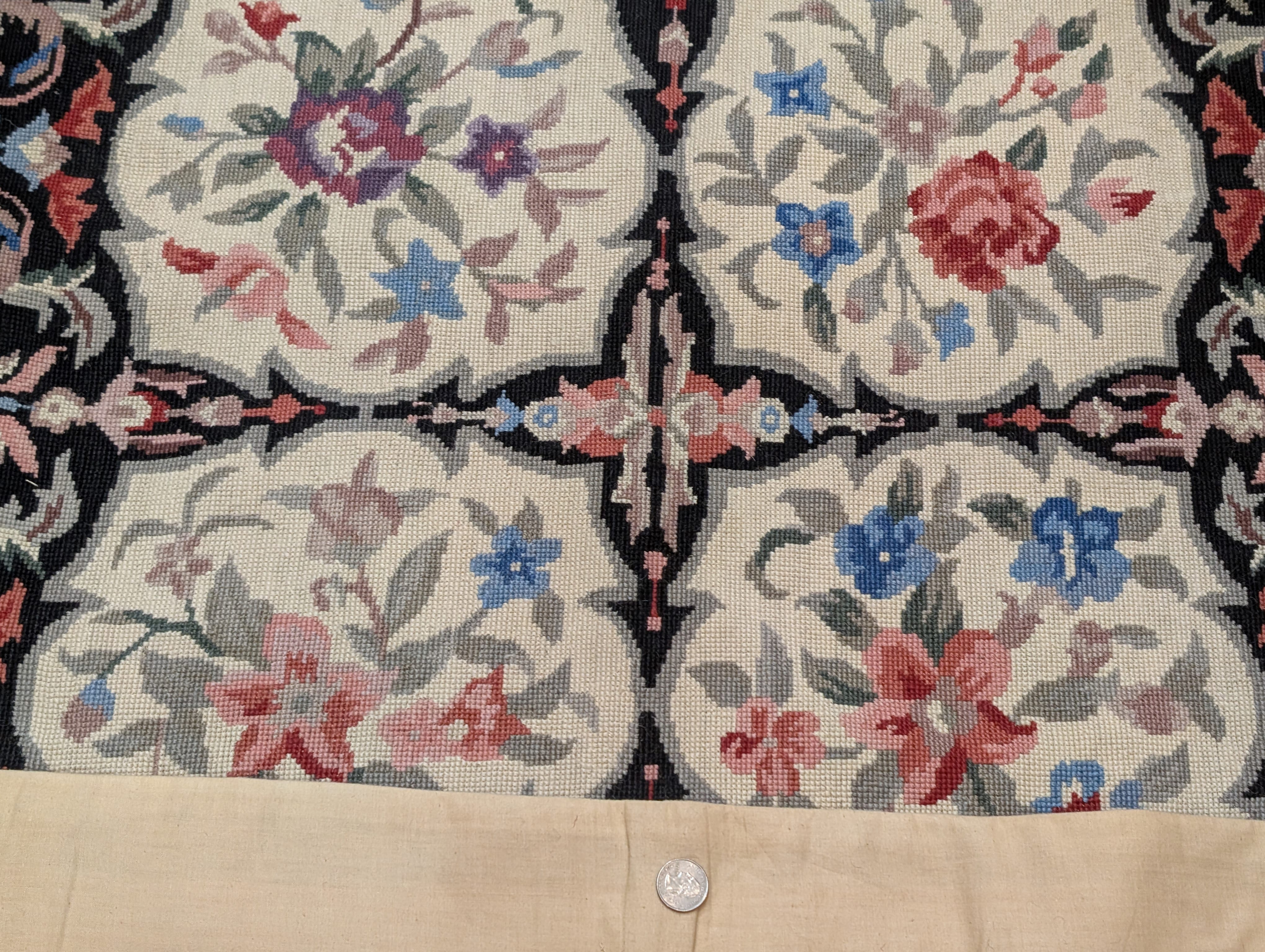 Needlepoint Rug 8x10, Floral Panel Ivory & Black