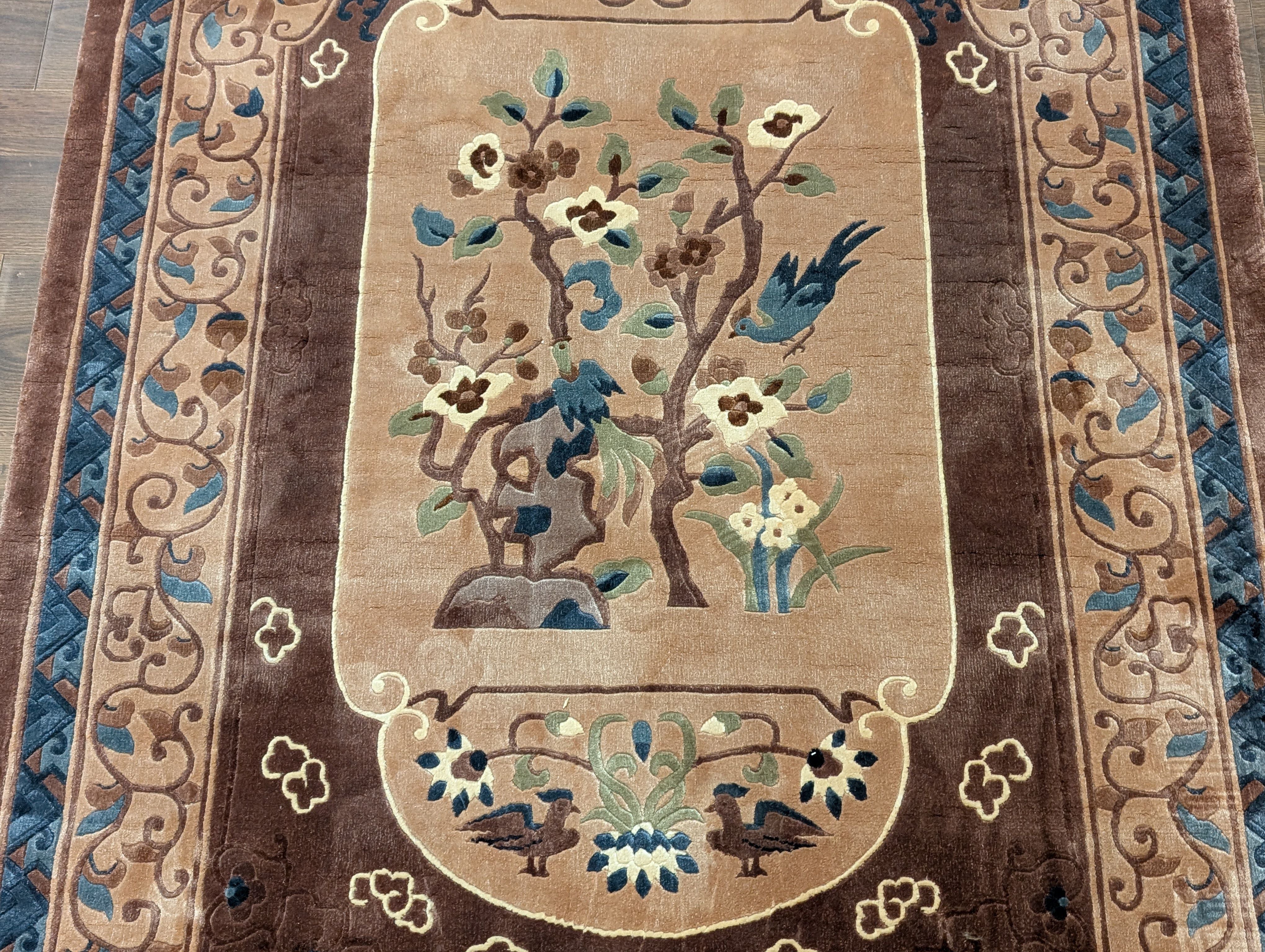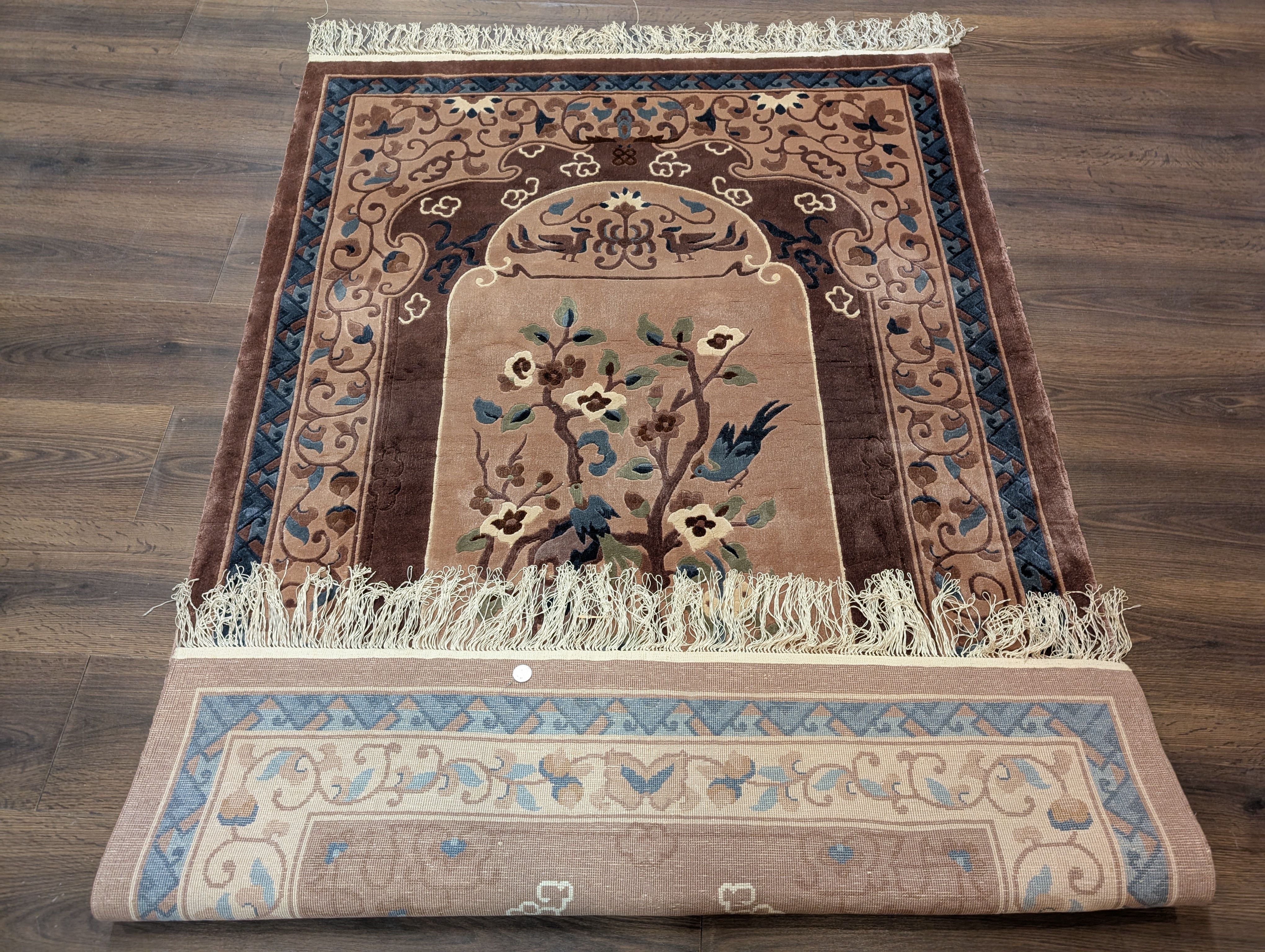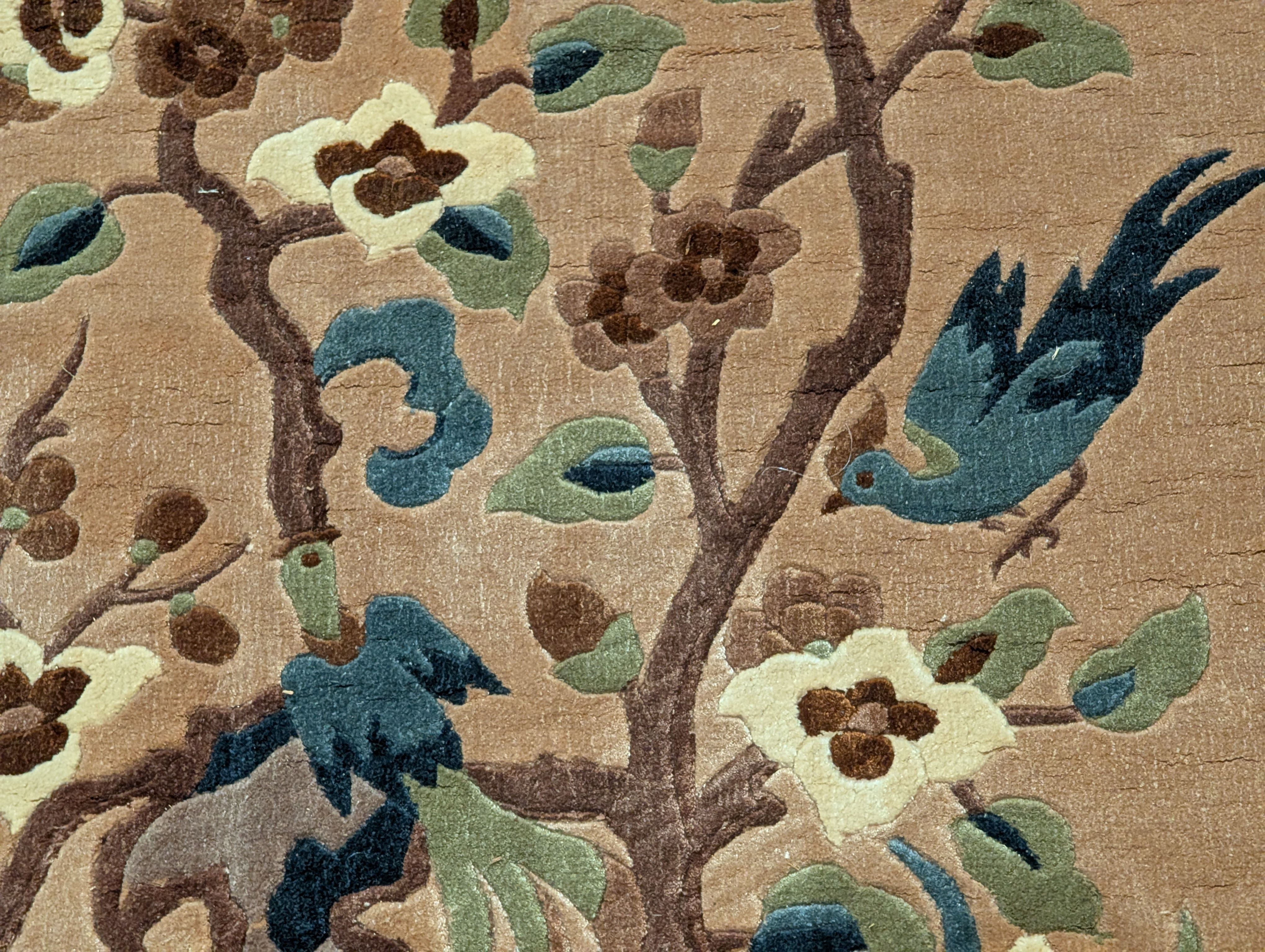 Chinese Silk Rug 4x6, Hand Knotted, Tree of Life, Birds