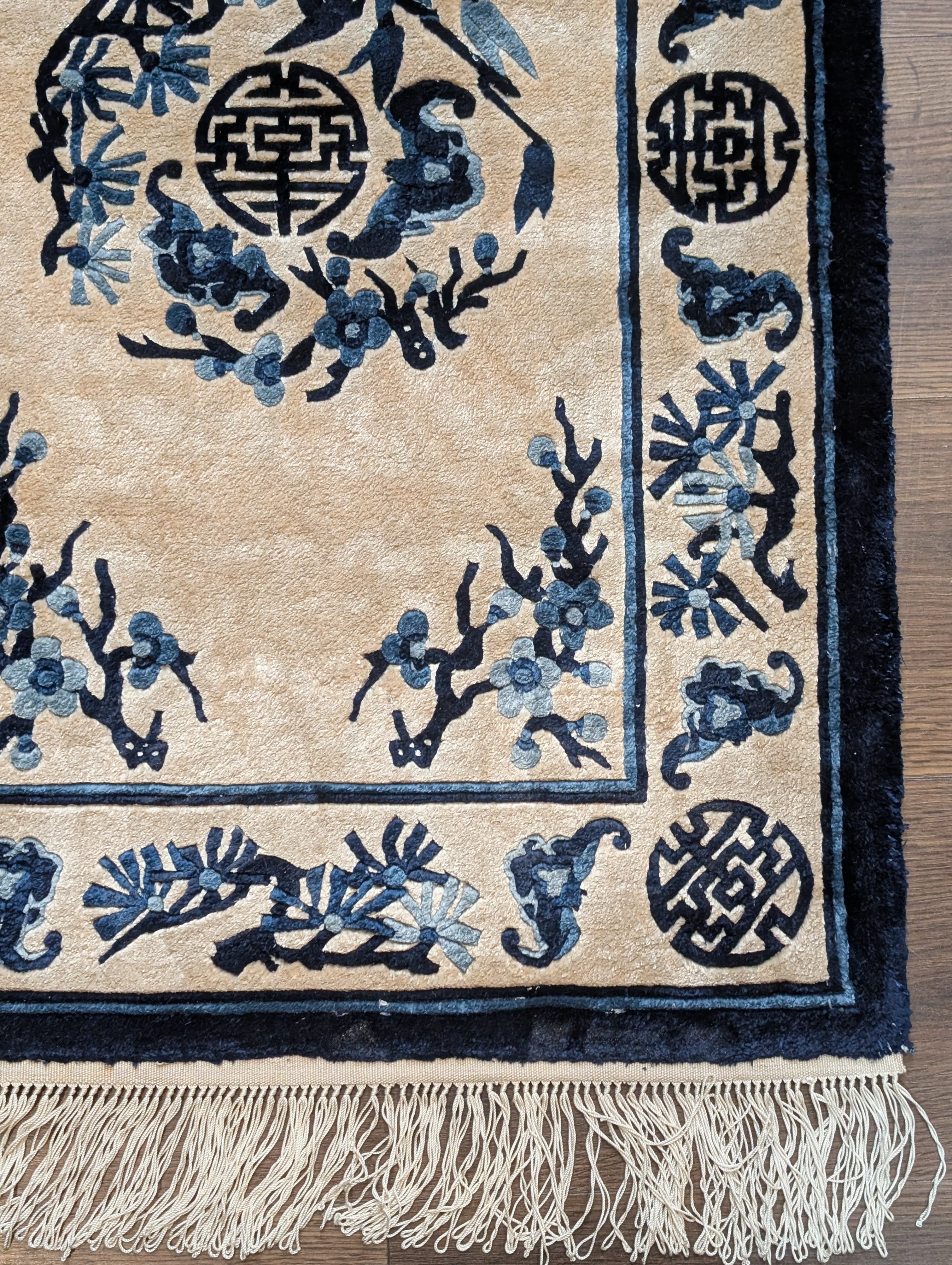 Small Chinese Silk Rug 2x3, Beige and Blue, Asian Rug, Peking Rug