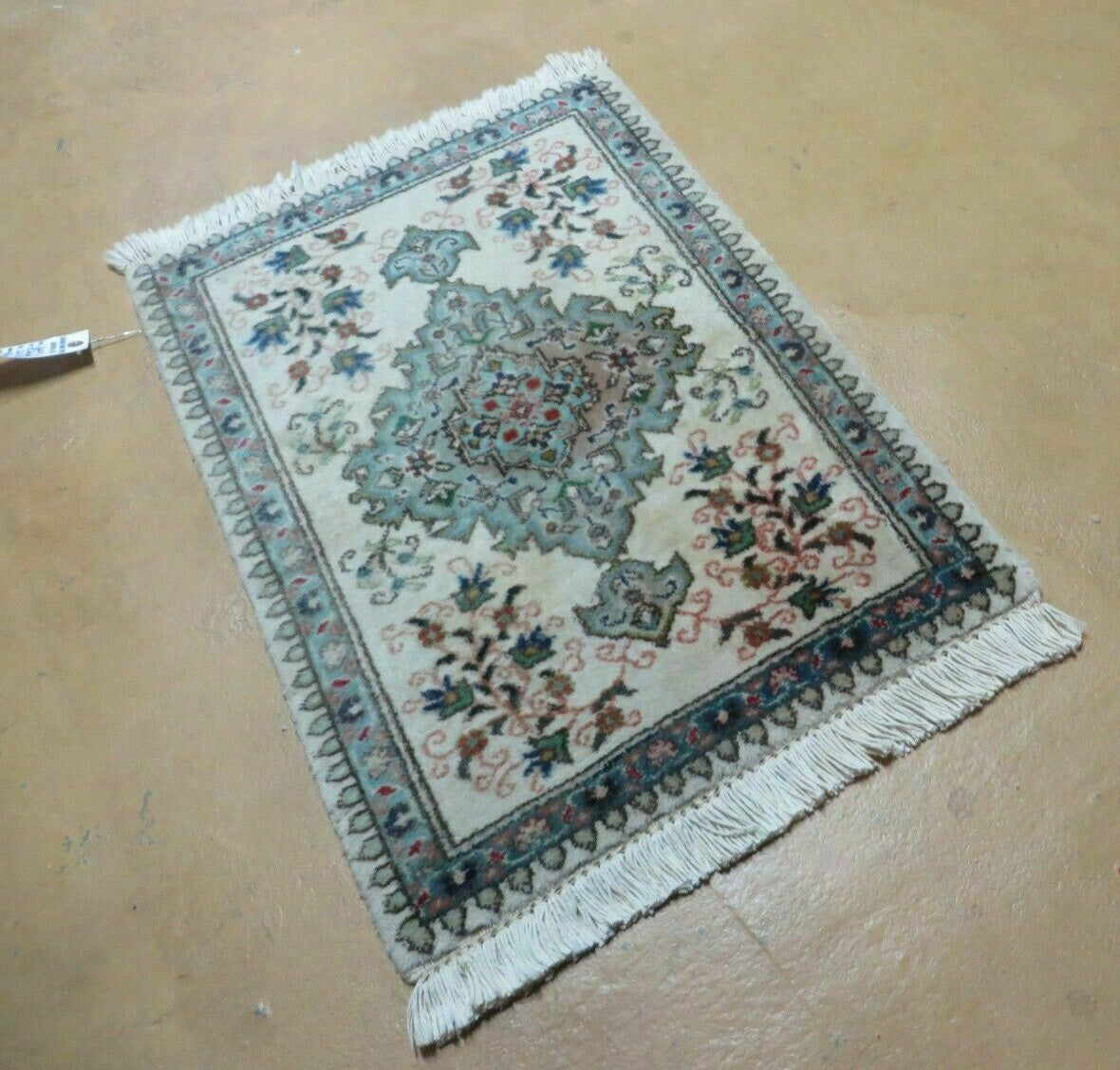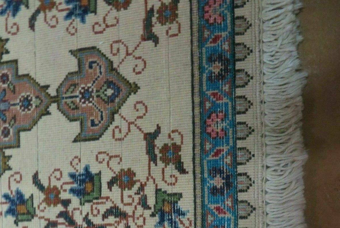 Small Ivory Persian Tabriz Tabatabaie Rug, Handmade, Wool