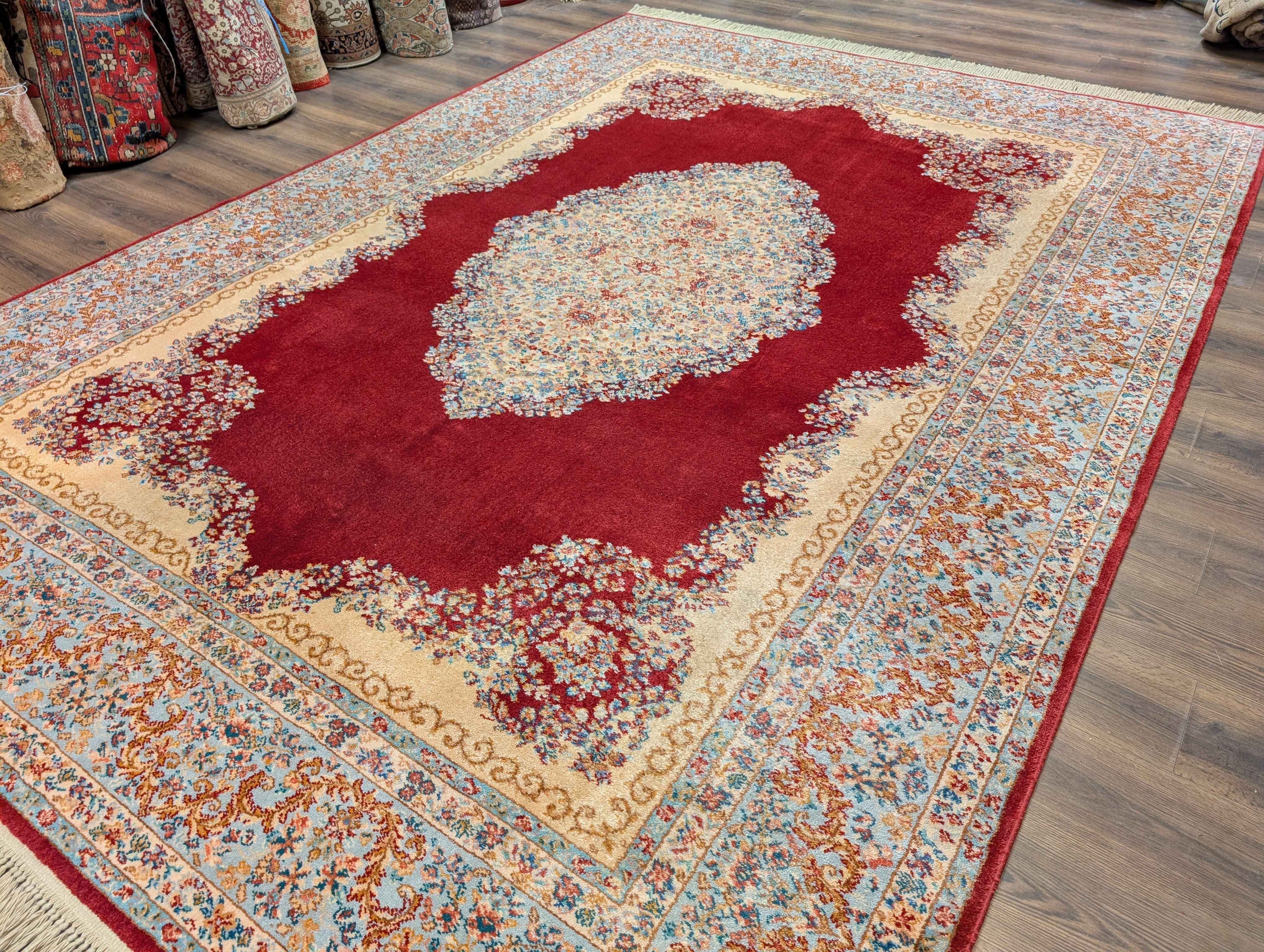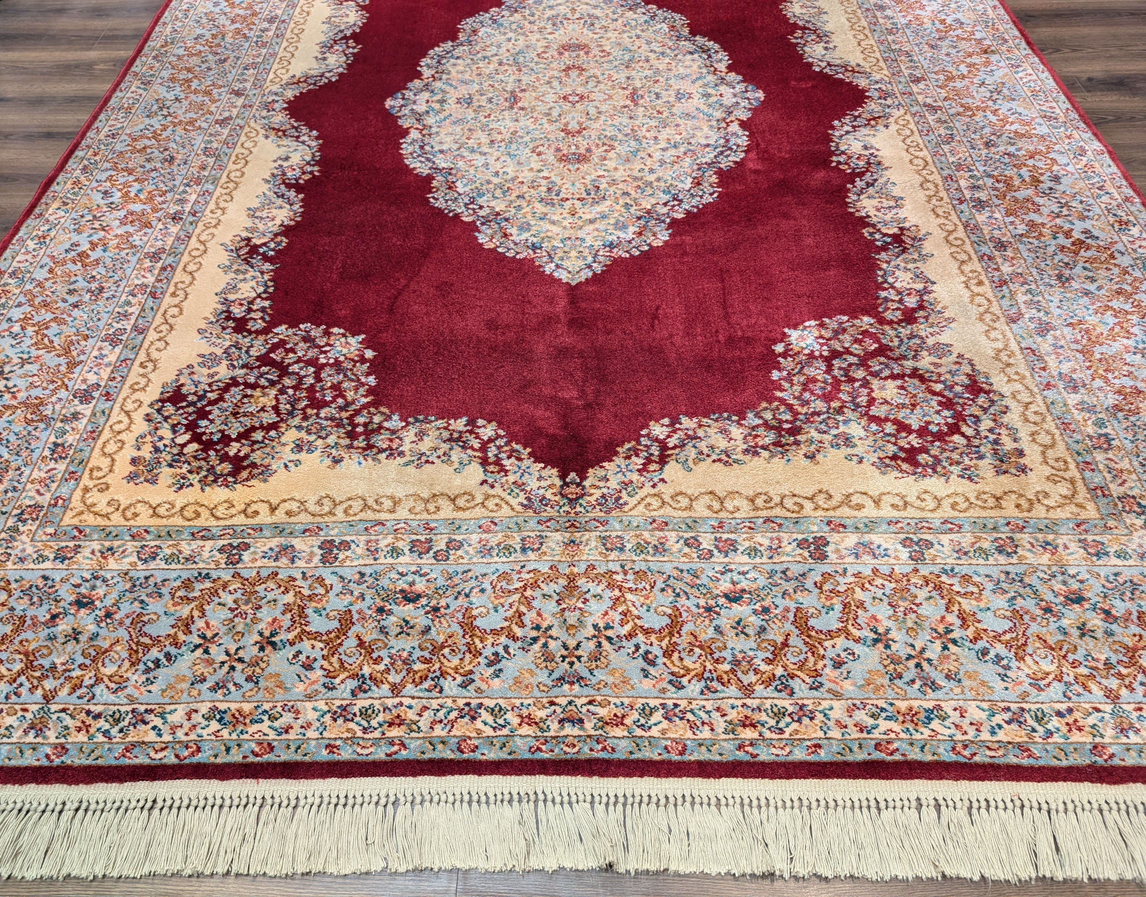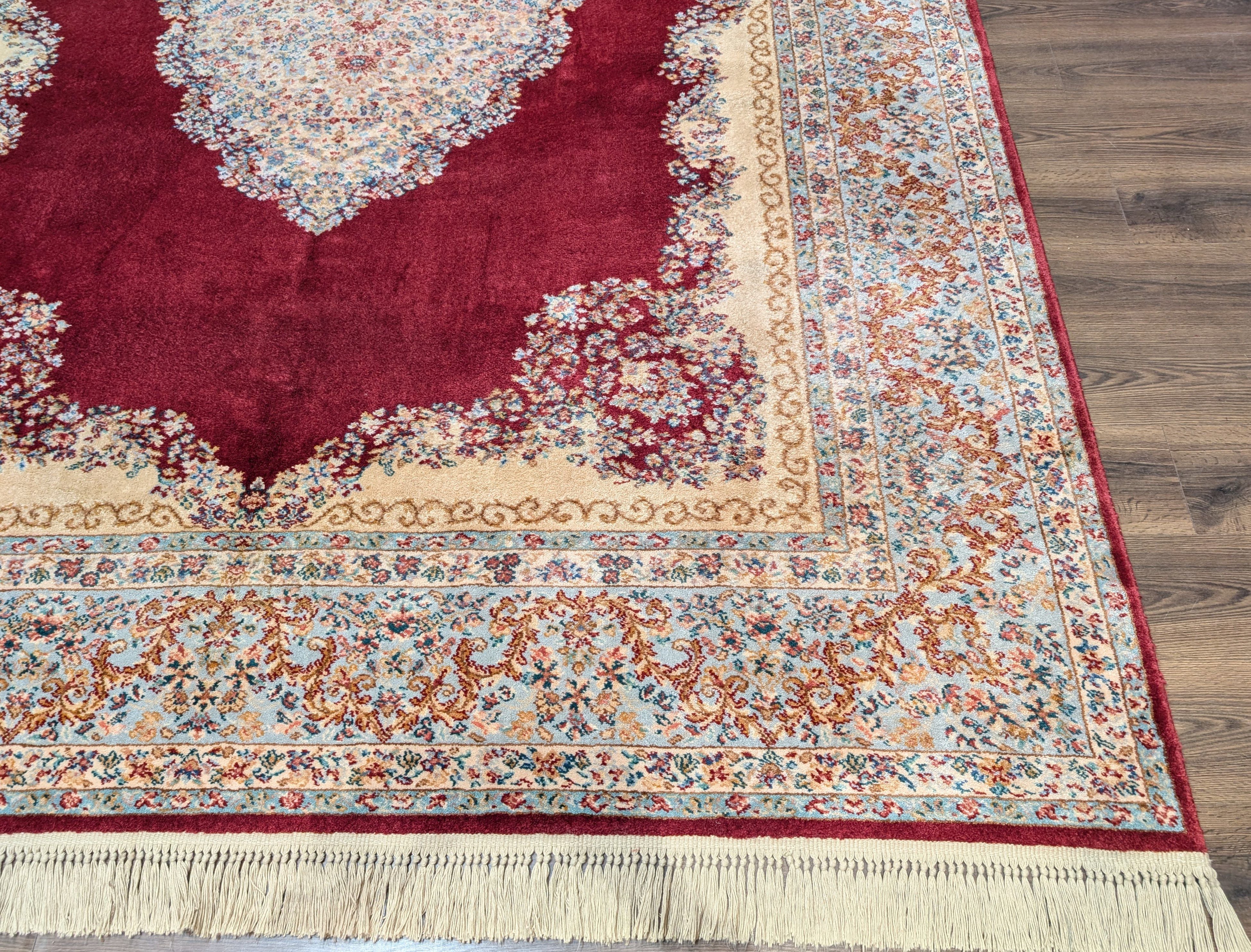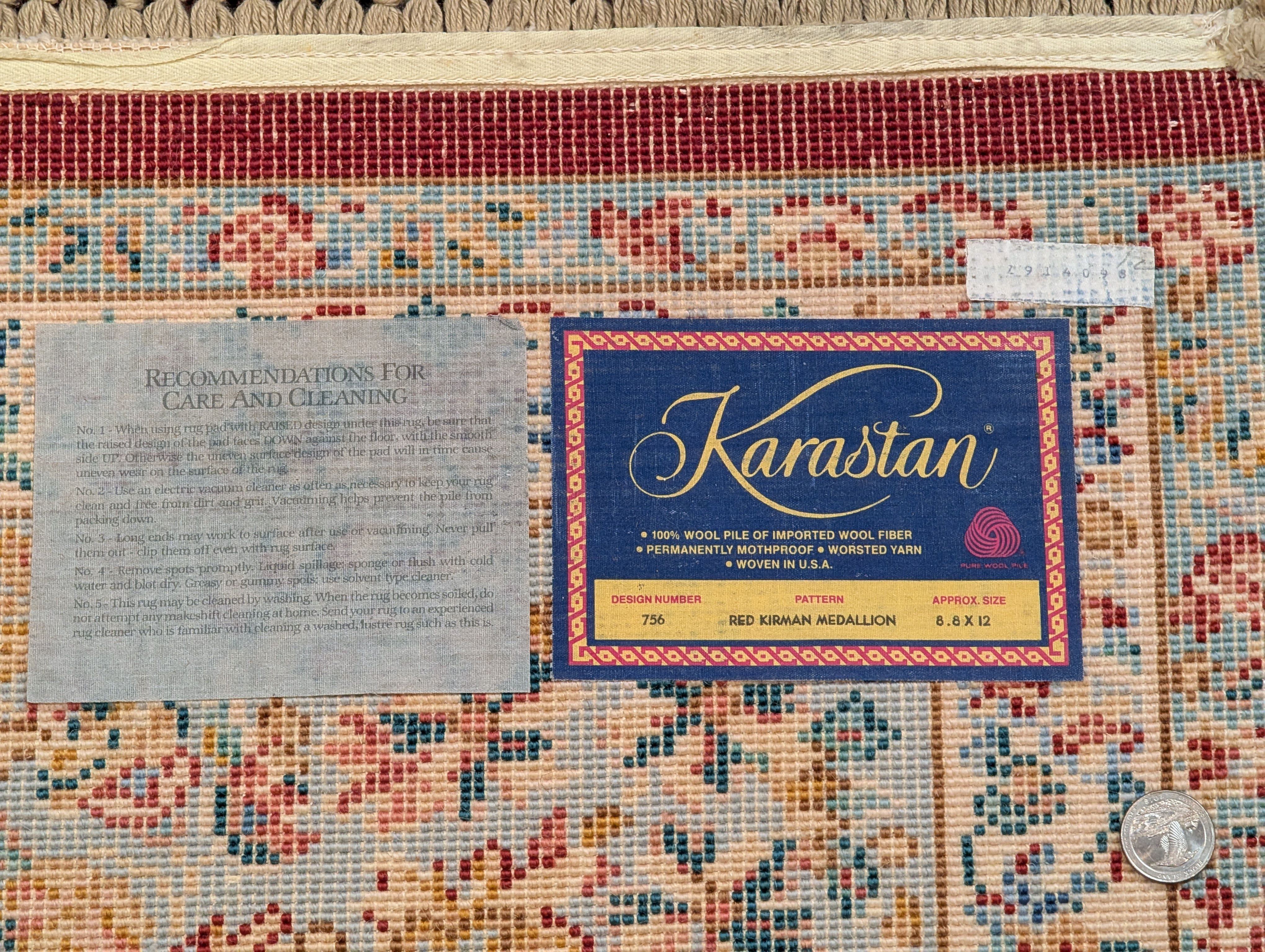 8.8 x 12 Karastan Red Kirman Medallion Rug #756, Discontinued Wool Rare Pattern
