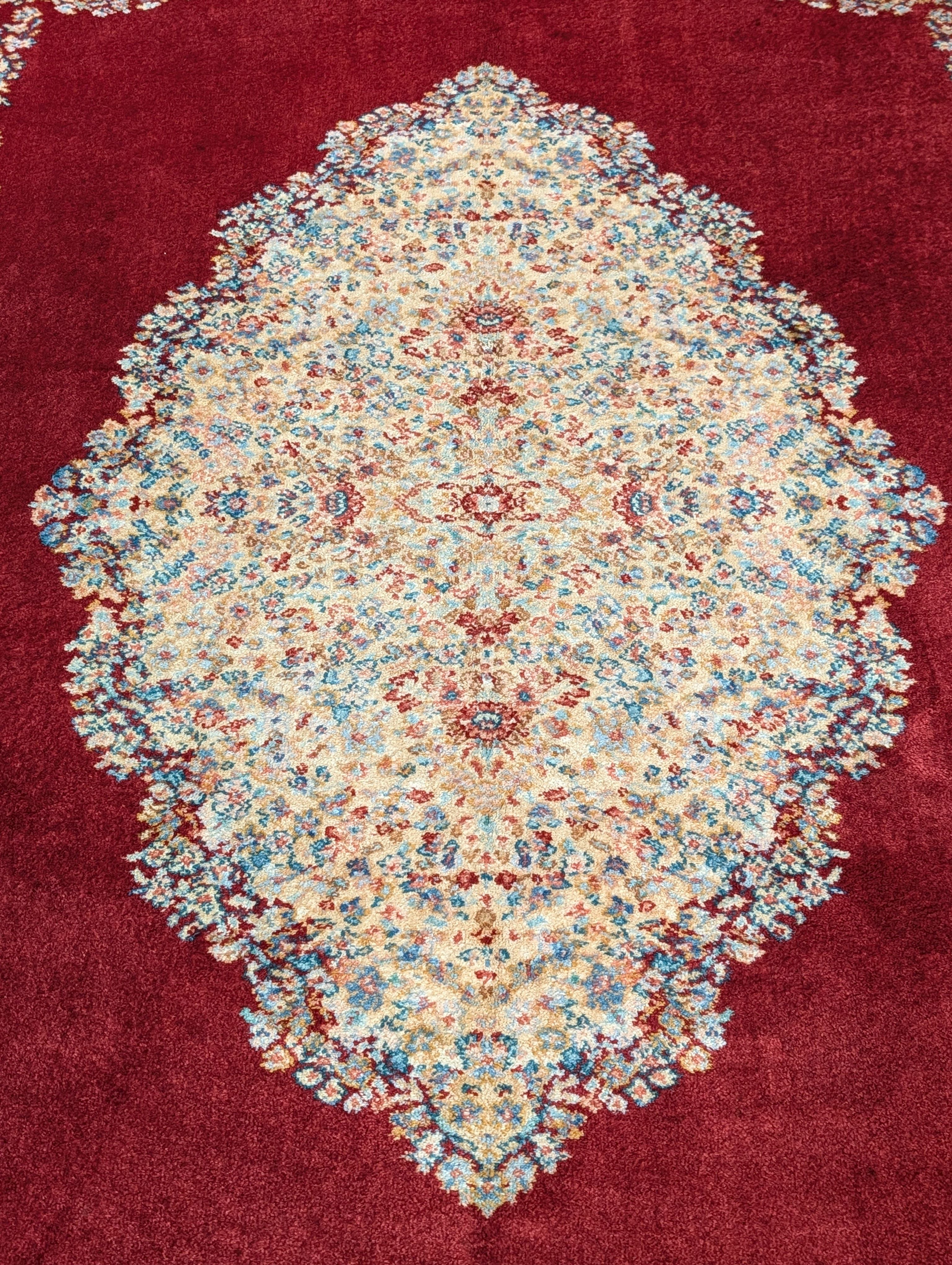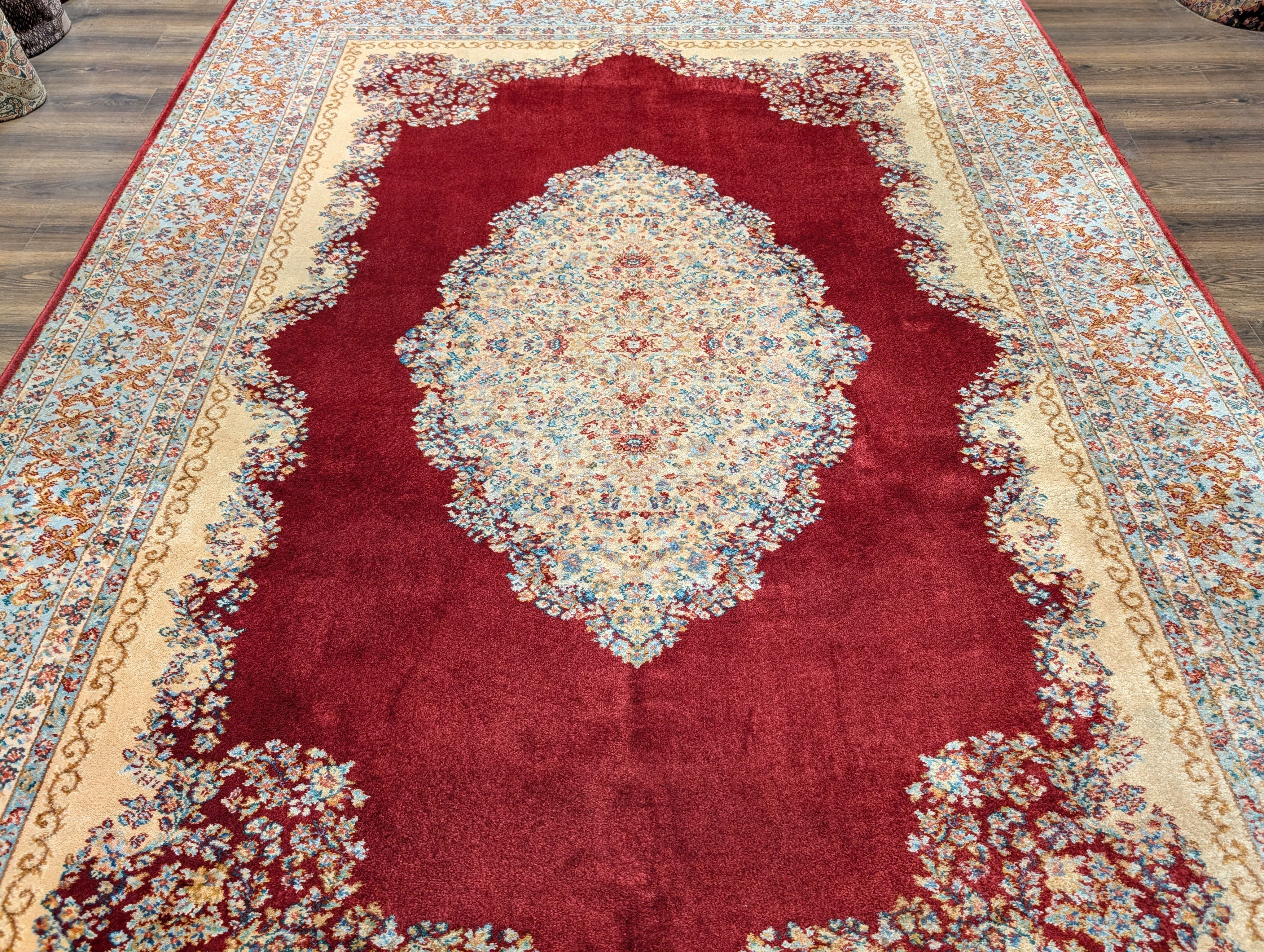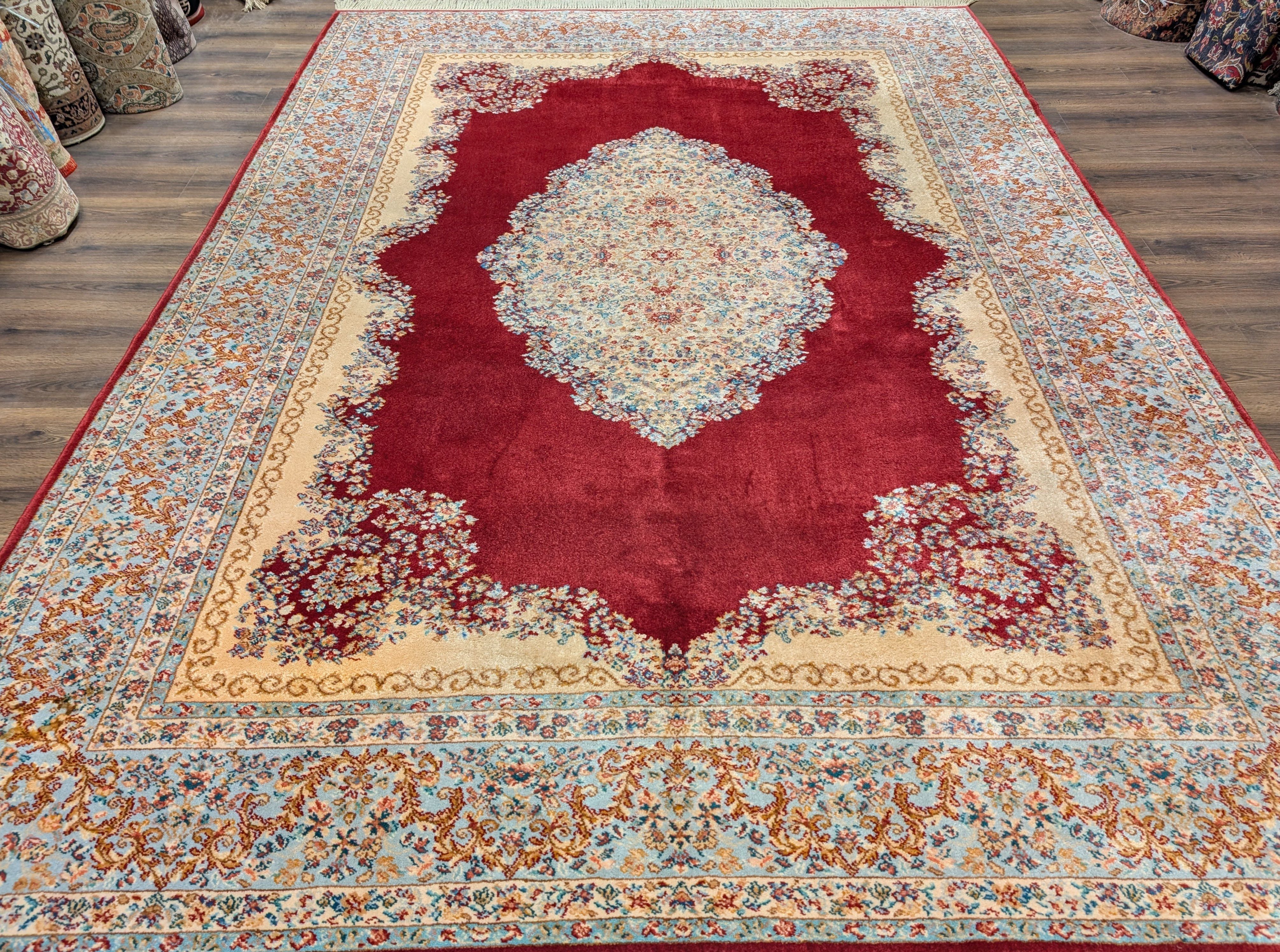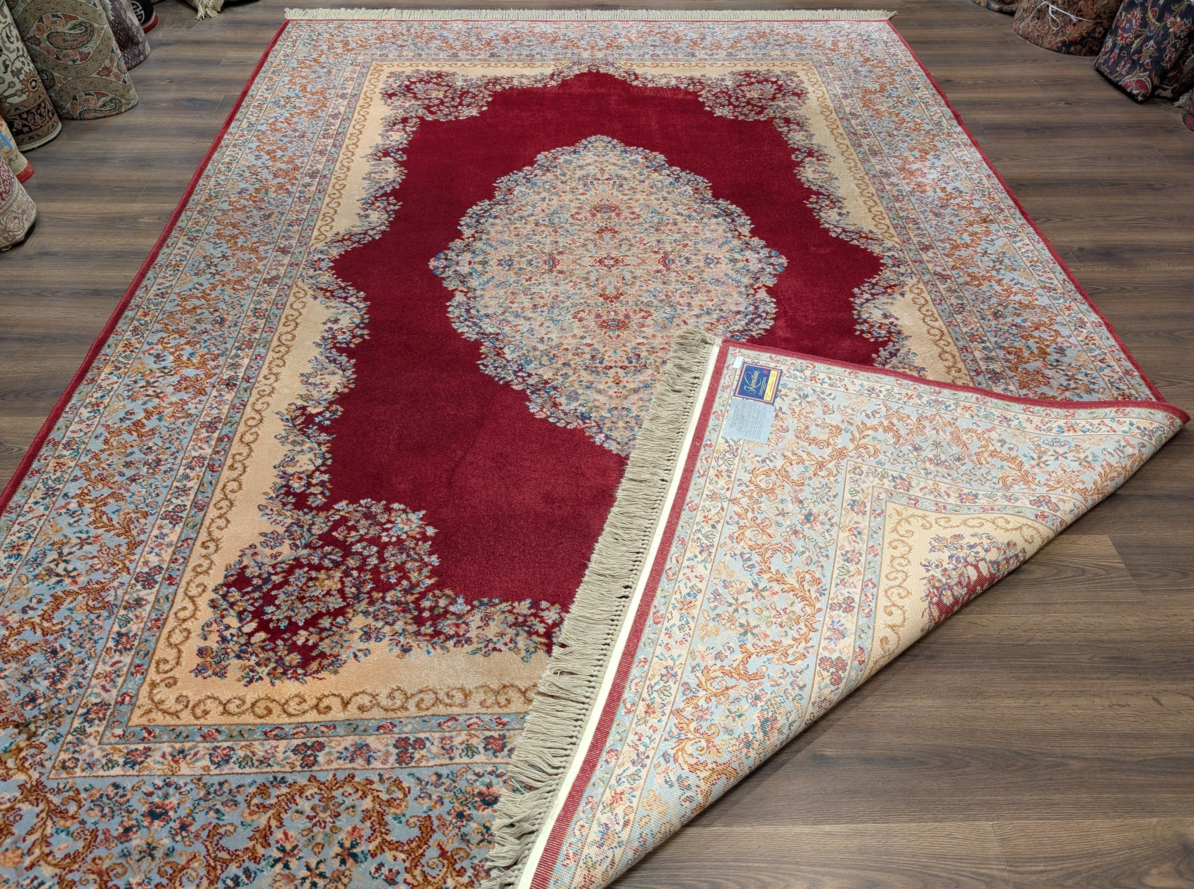 8.8 x 12 Karastan Red Kirman Medallion Rug #756, Discontinued Wool Rare Pattern