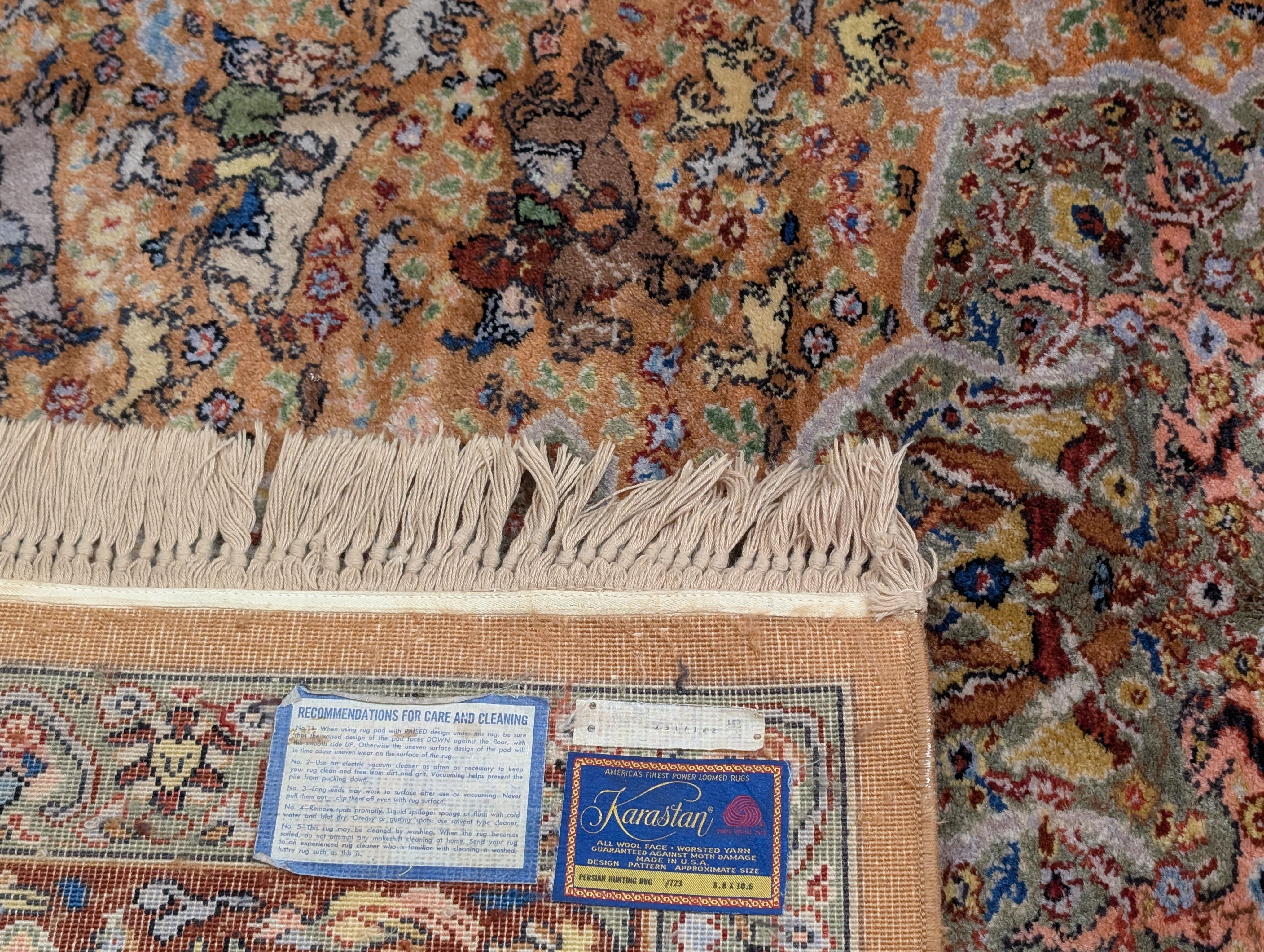 | Condition/Notes | A beautiful vintage Karastan rug in very good condition. Free of stains, odors, discolorations, tears, etc. Good pile & fringes. Original Karastan label is attached. Recently cleaned and ready to be enjoyed in your space. |
