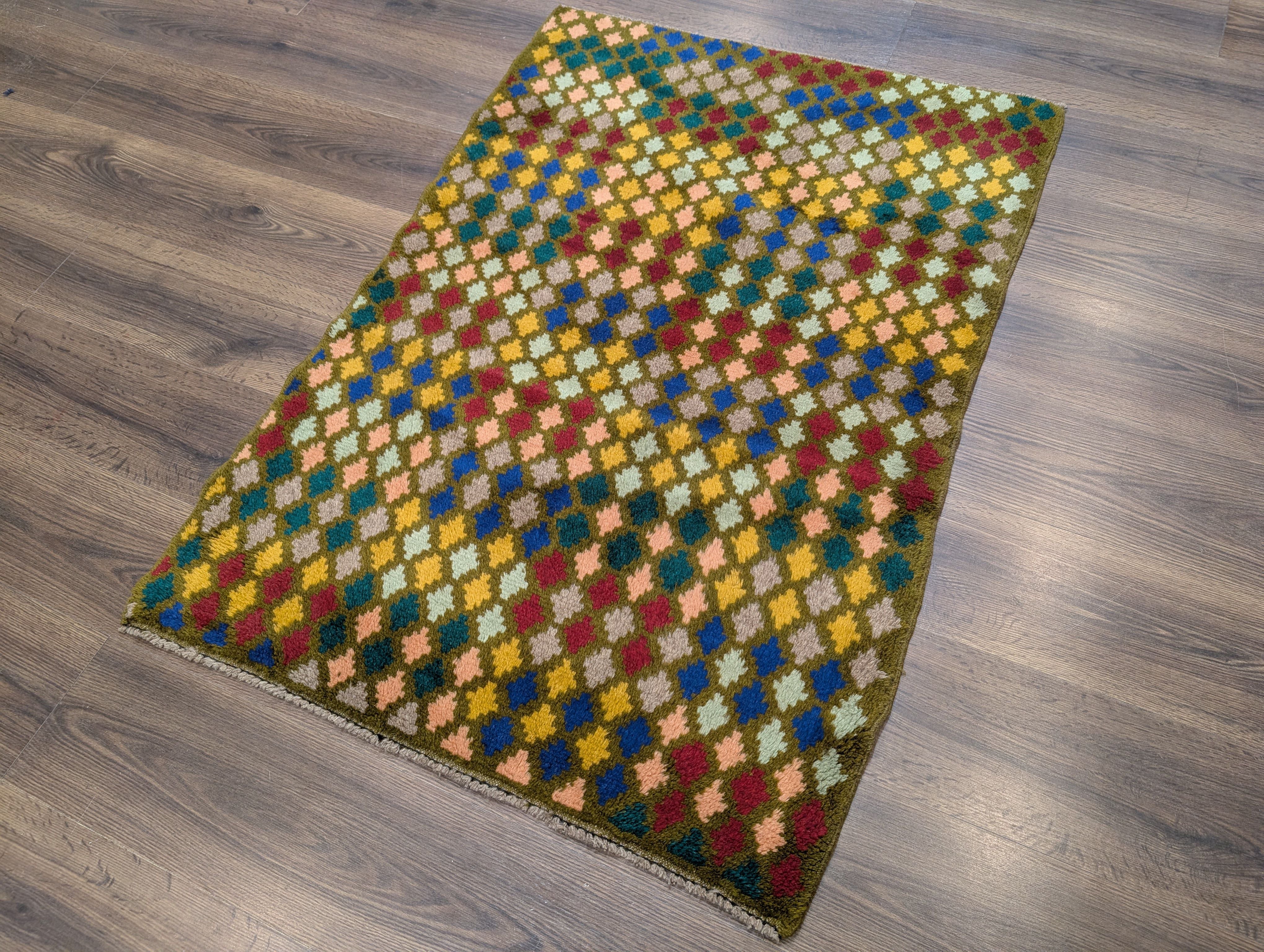 Afghan Balouch Rug 3x4, Multicolor, Hand Knotted, Wool