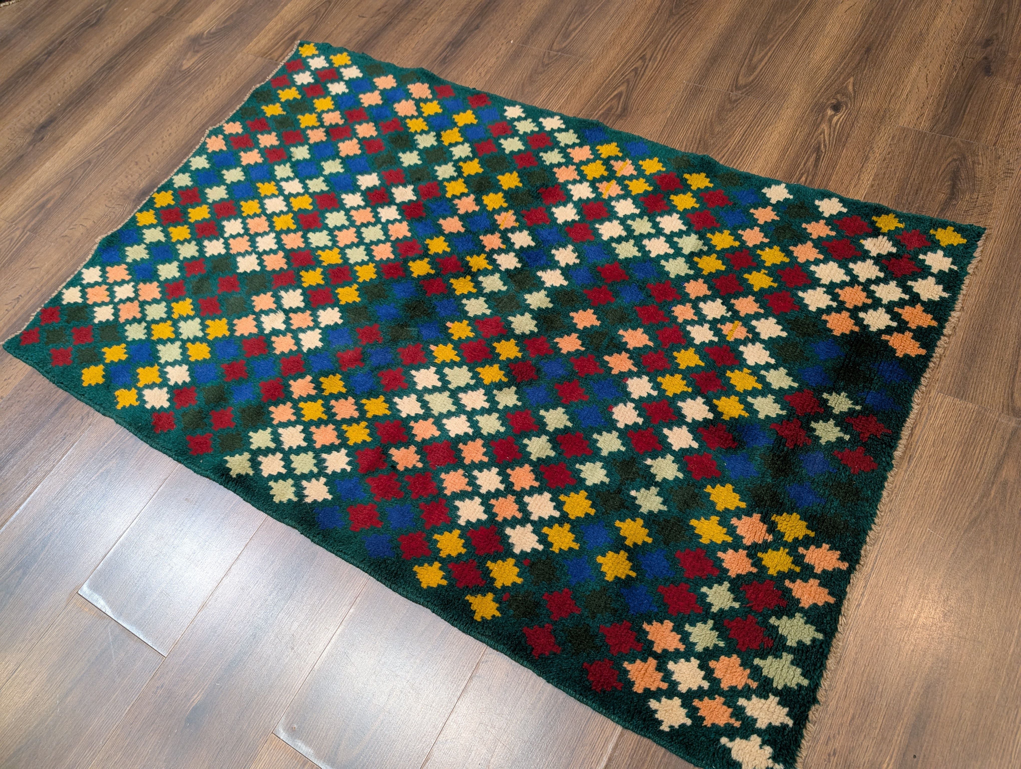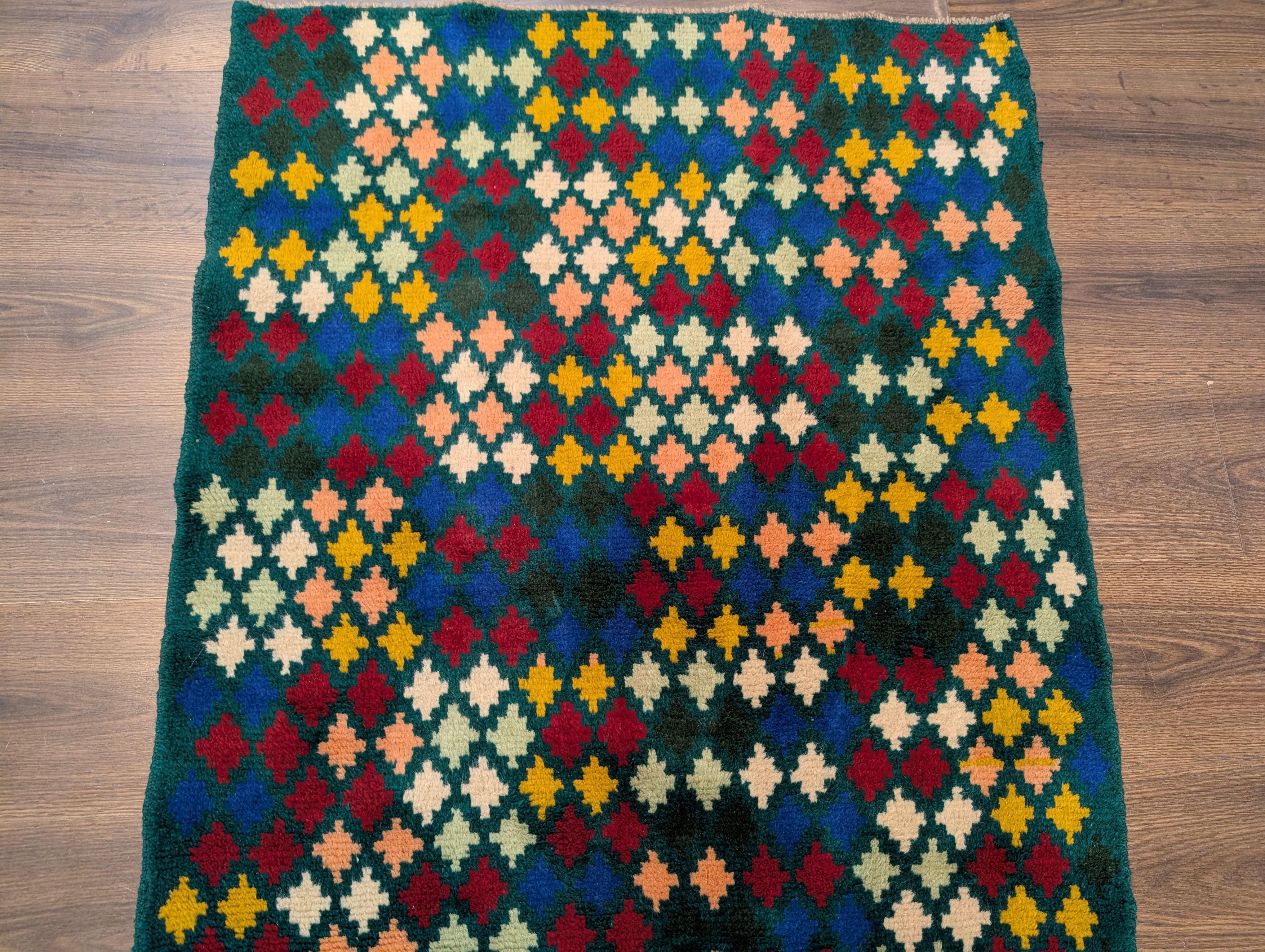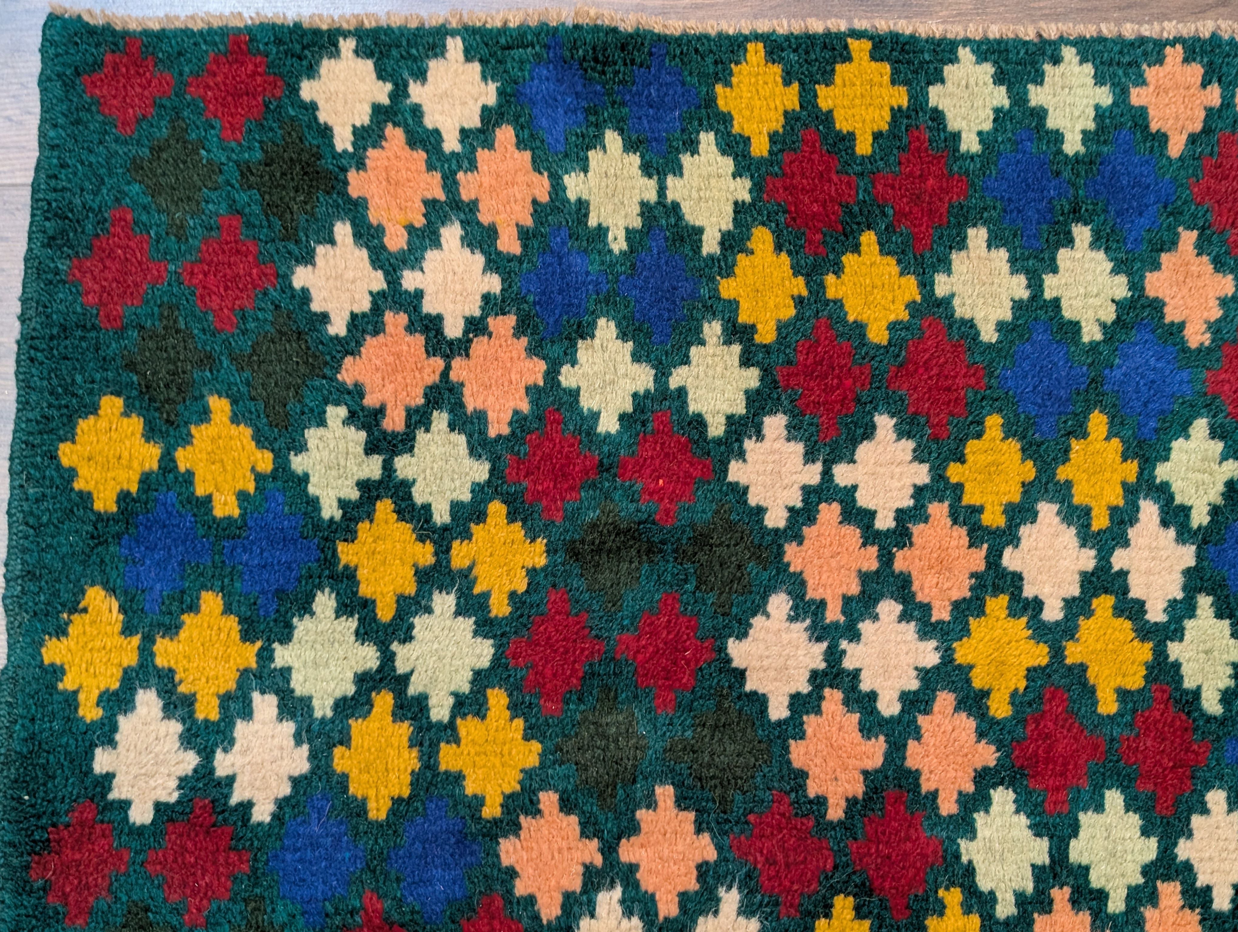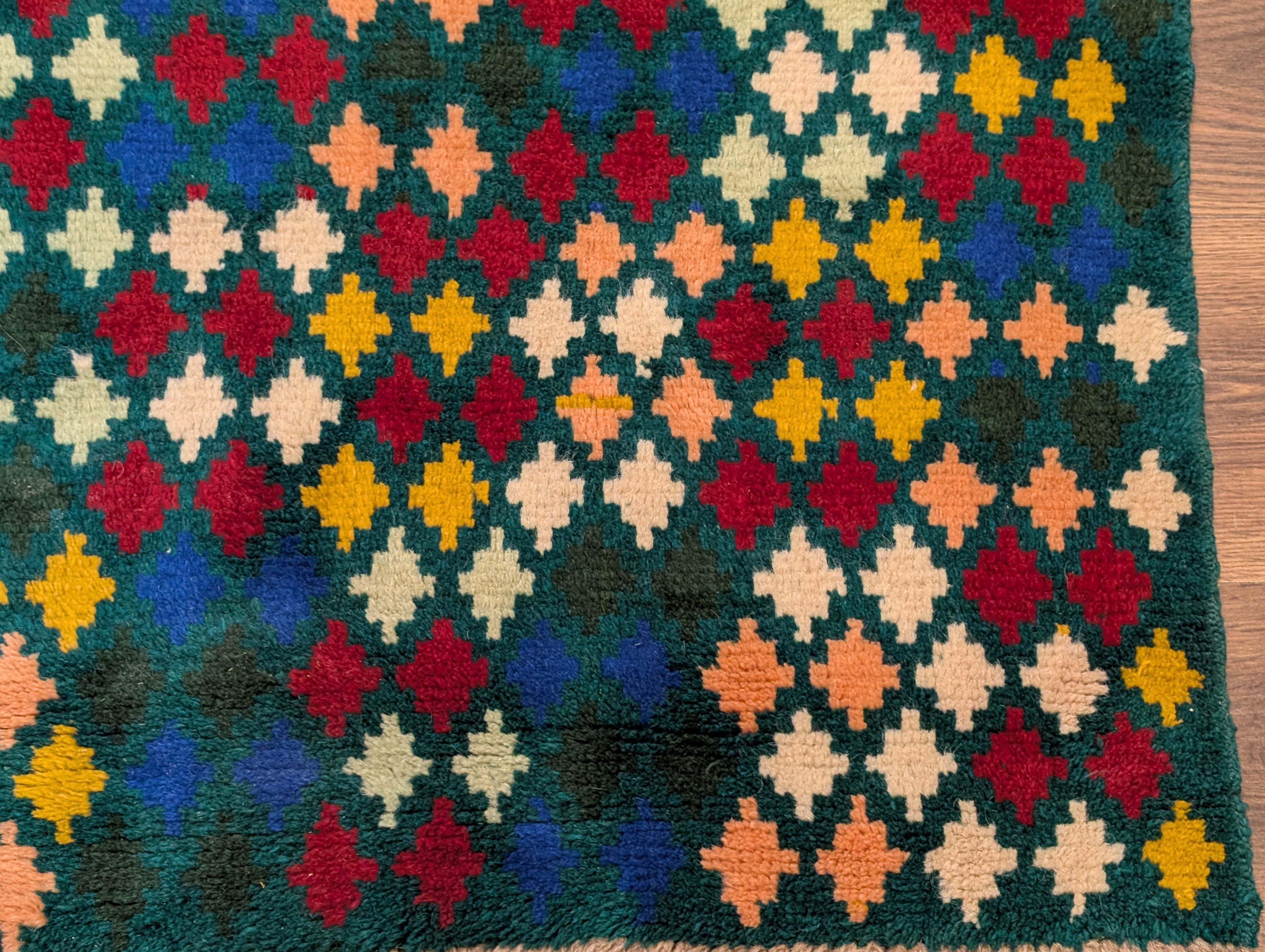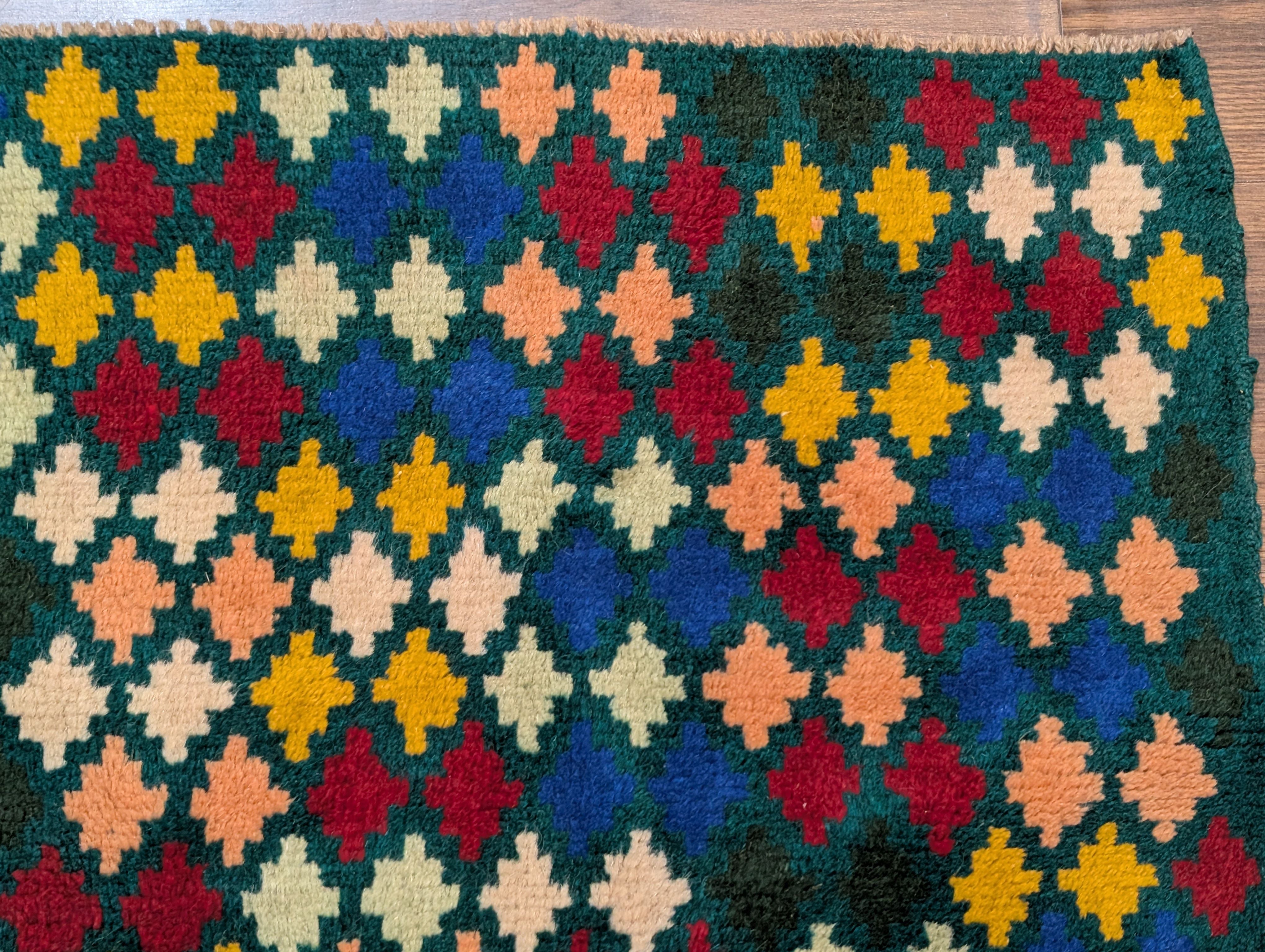 Afghan Balouch Rug 3x5, Star Pattern, Multicolor, Handmade, Wool