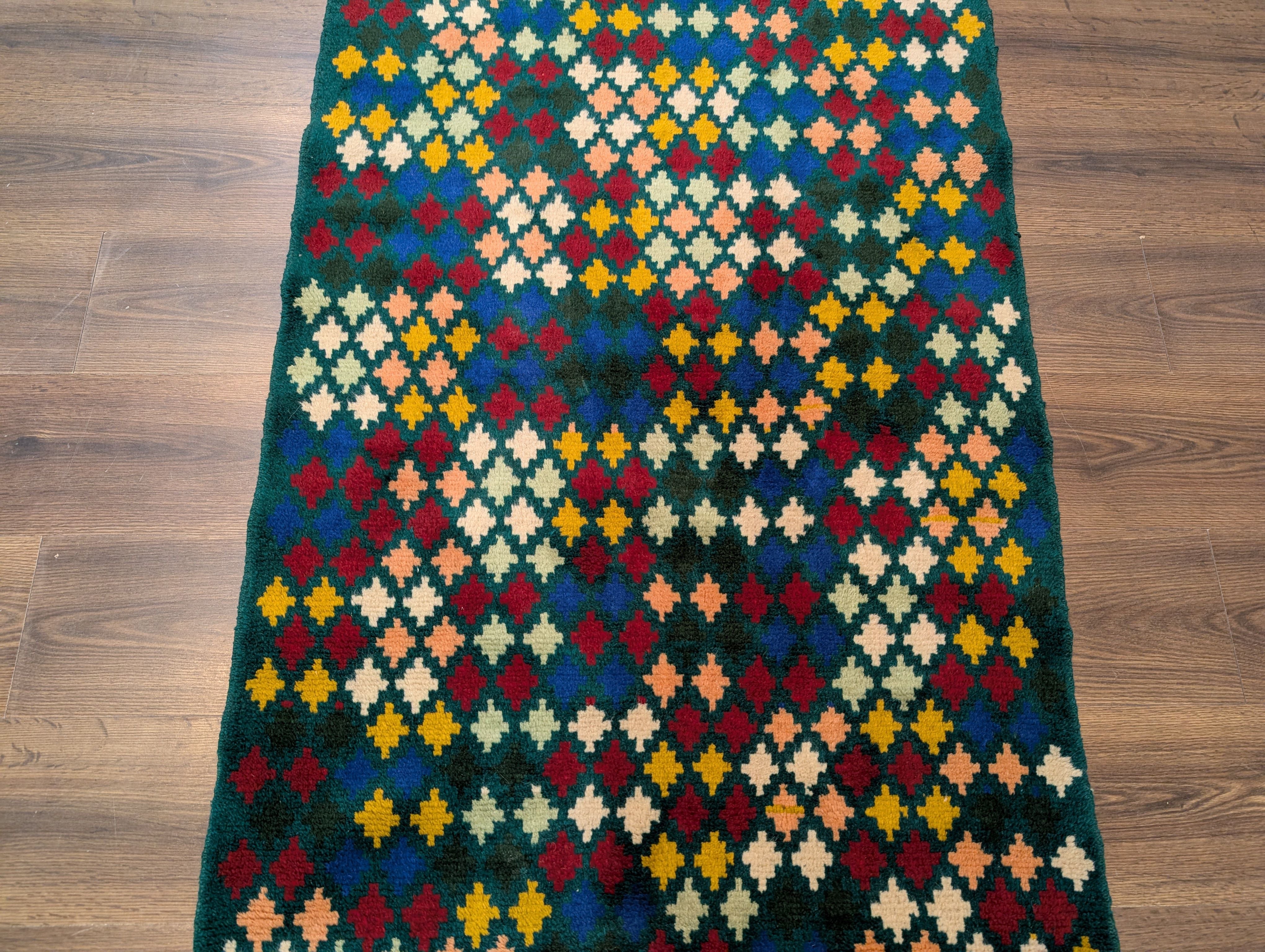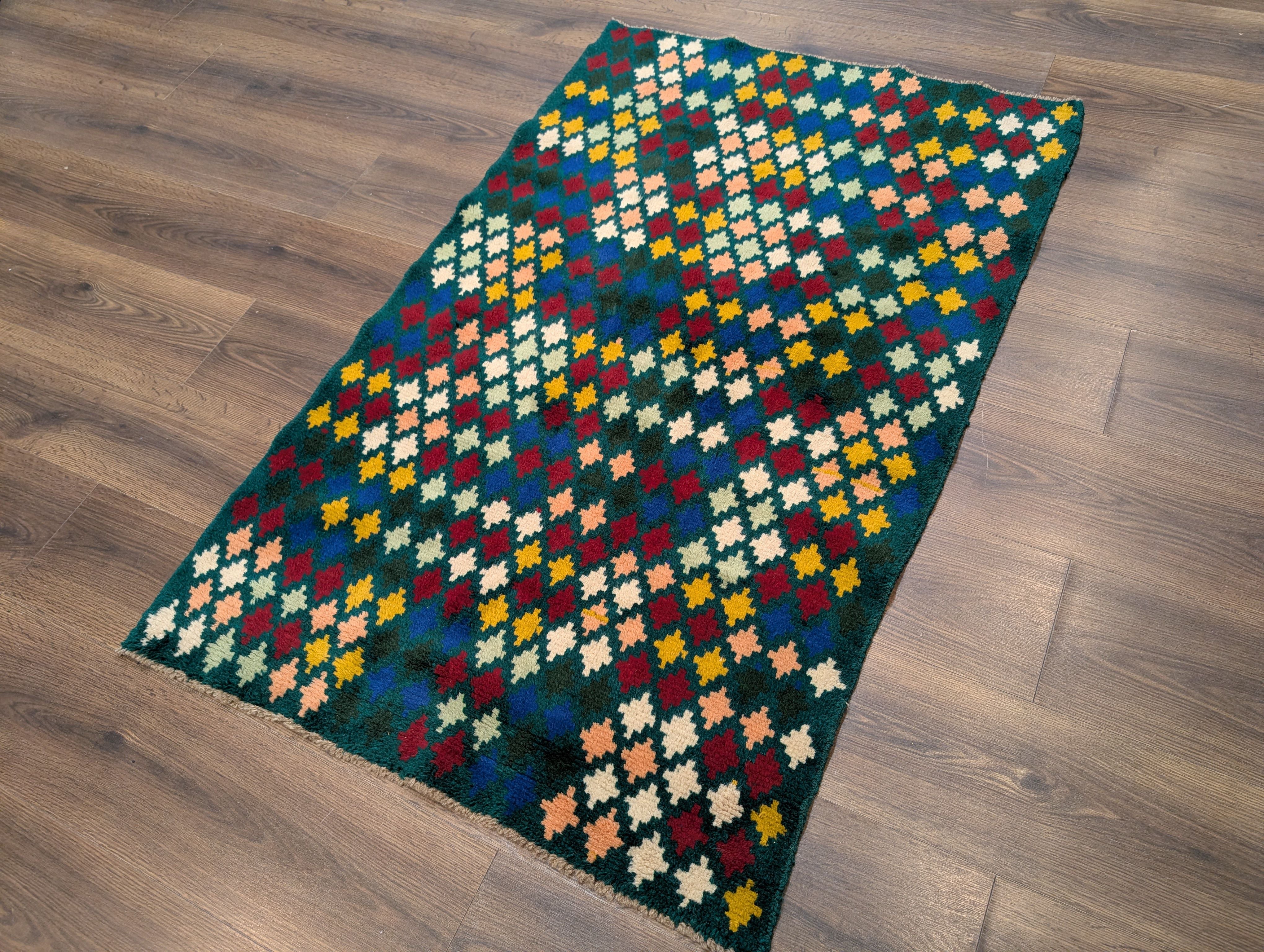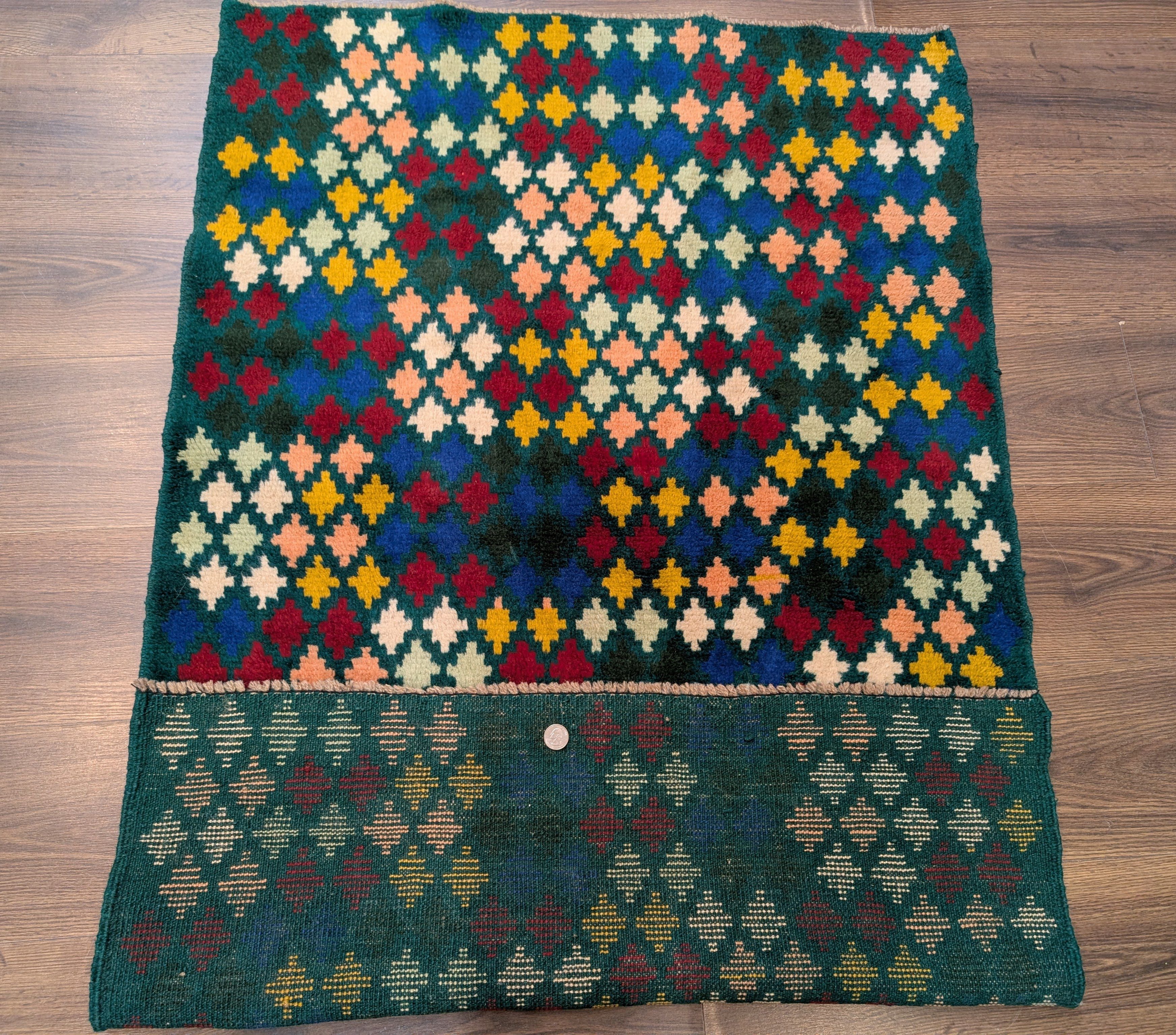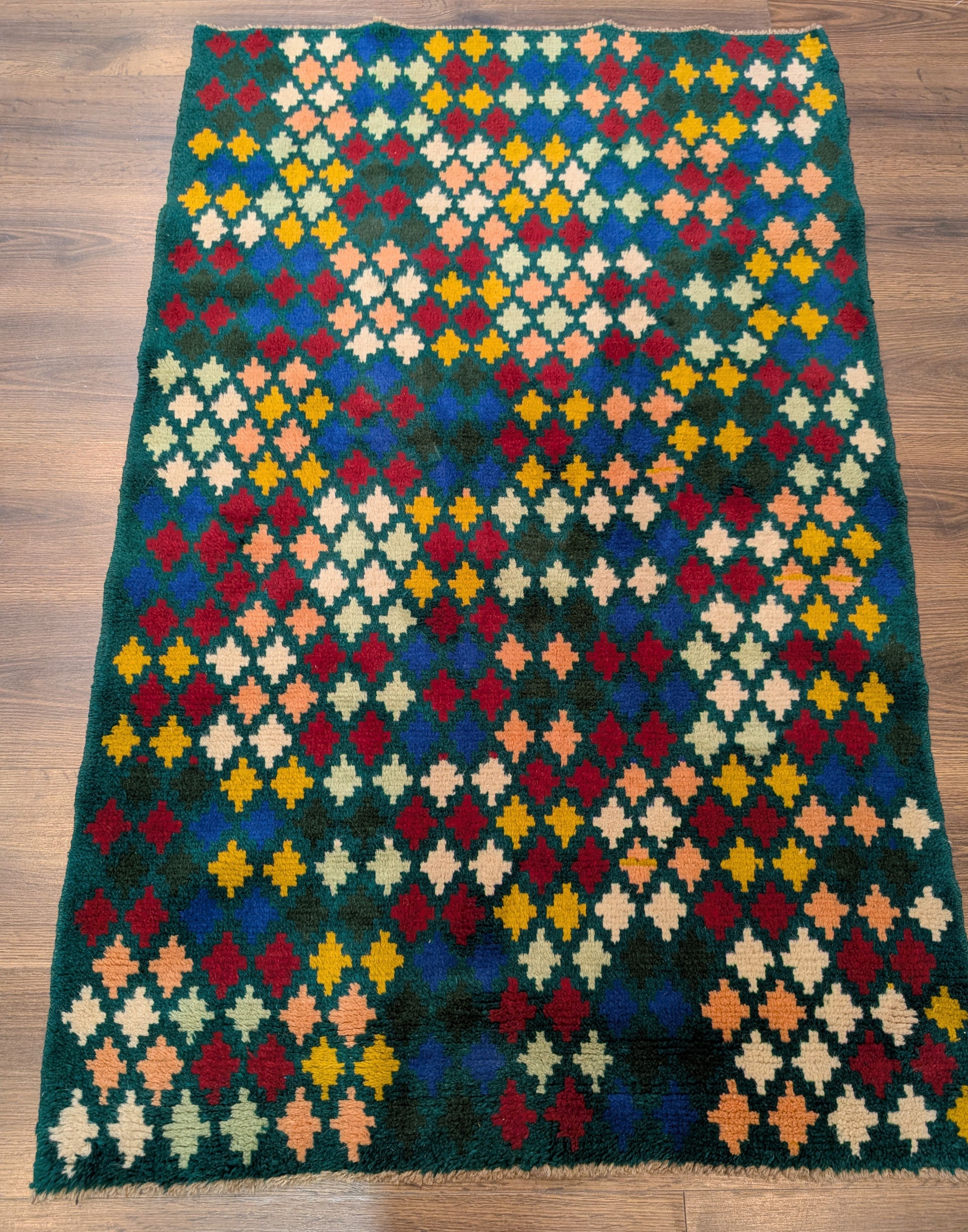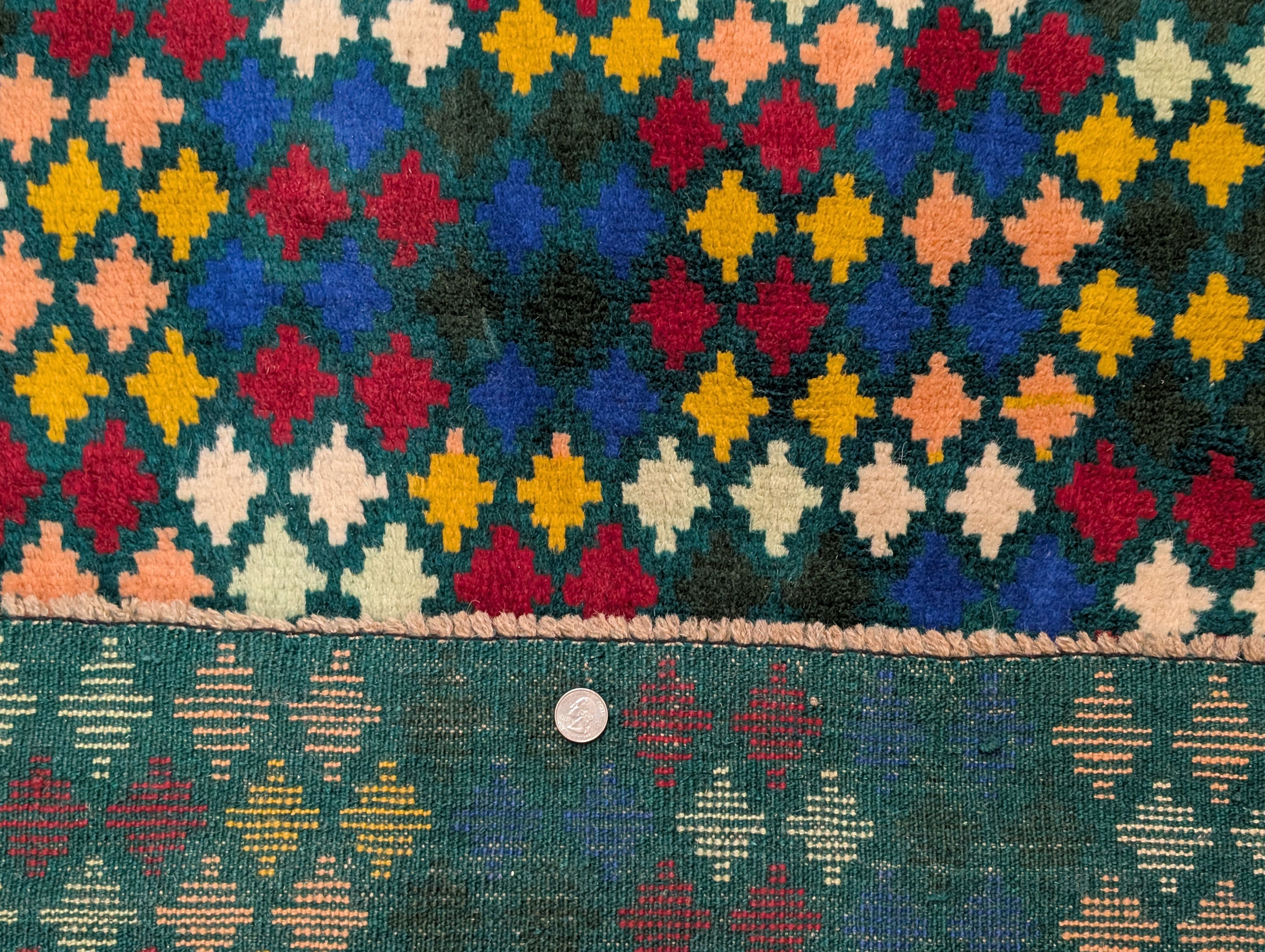 Afghan Balouch Rug 3x5, Star Pattern, Multicolor, Handmade, Wool