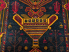 Afghan Baluch Rug 4x7, Persian Vase Design, Handmade, Wool, New